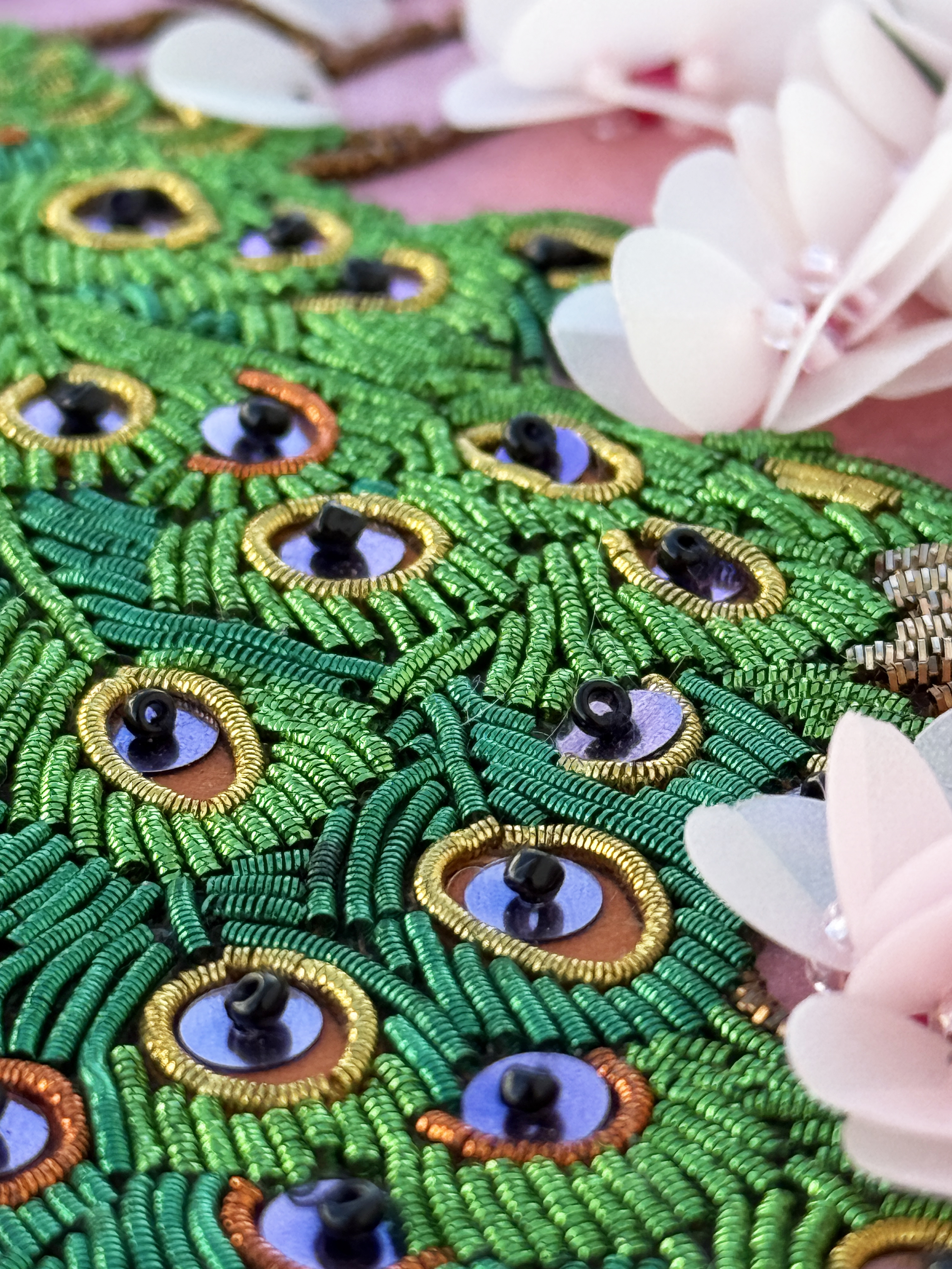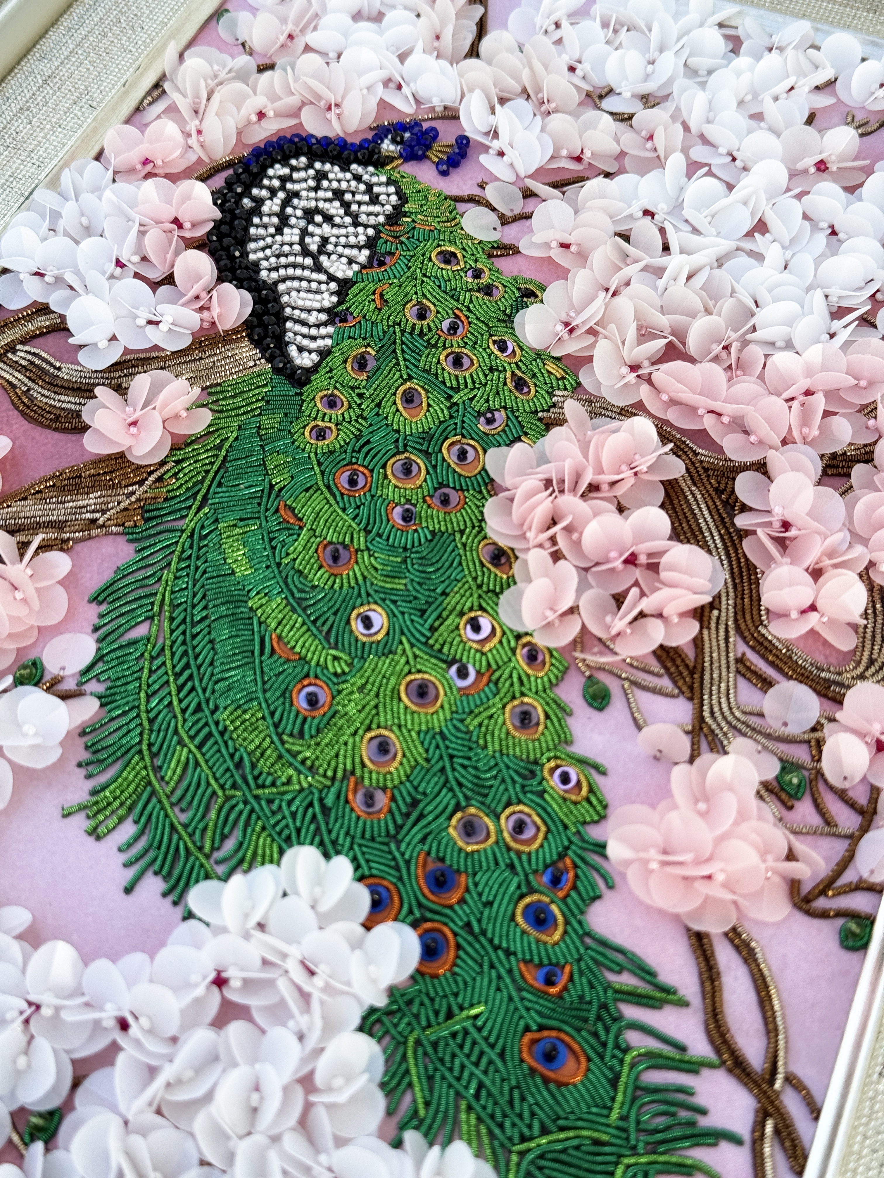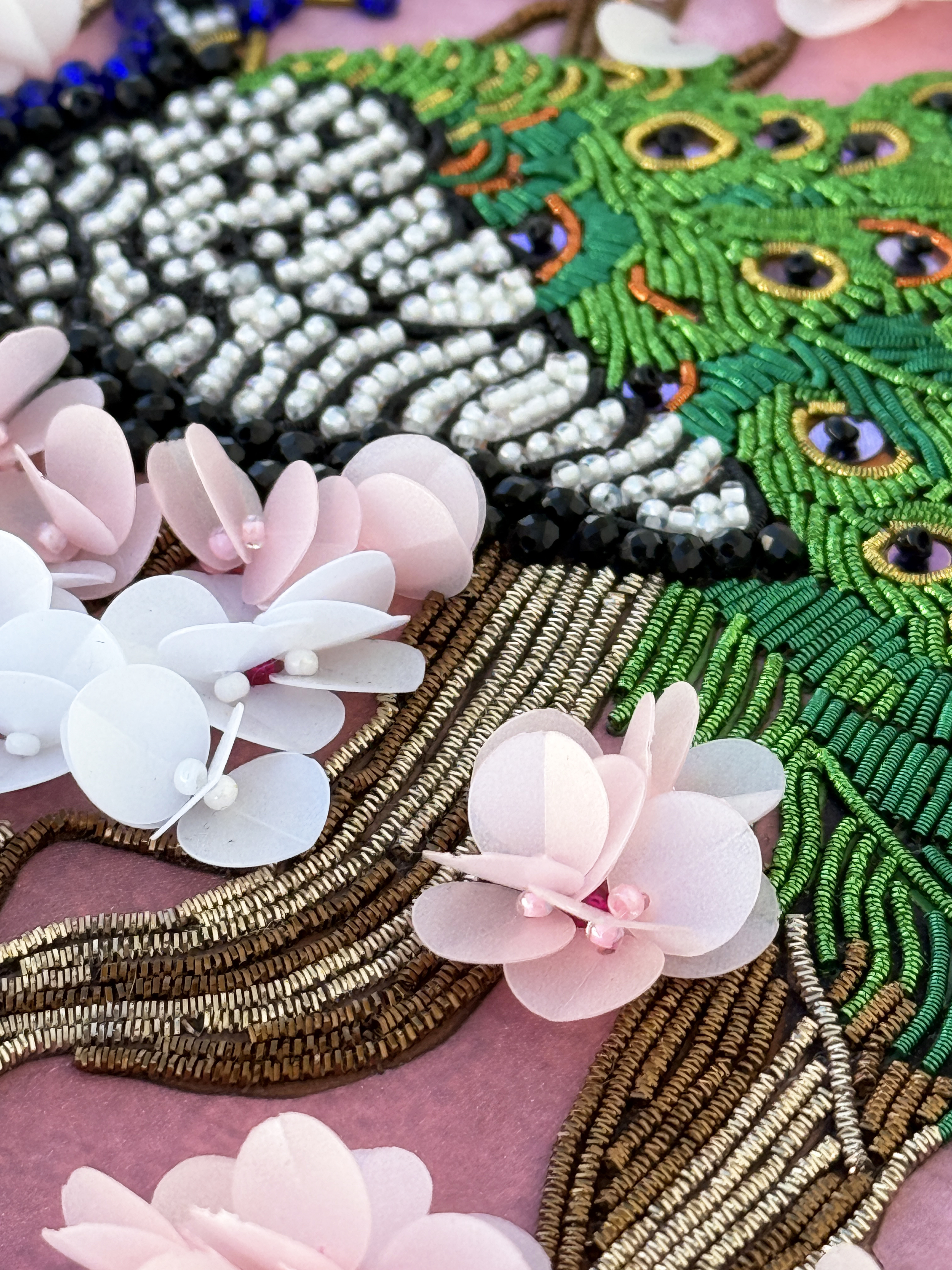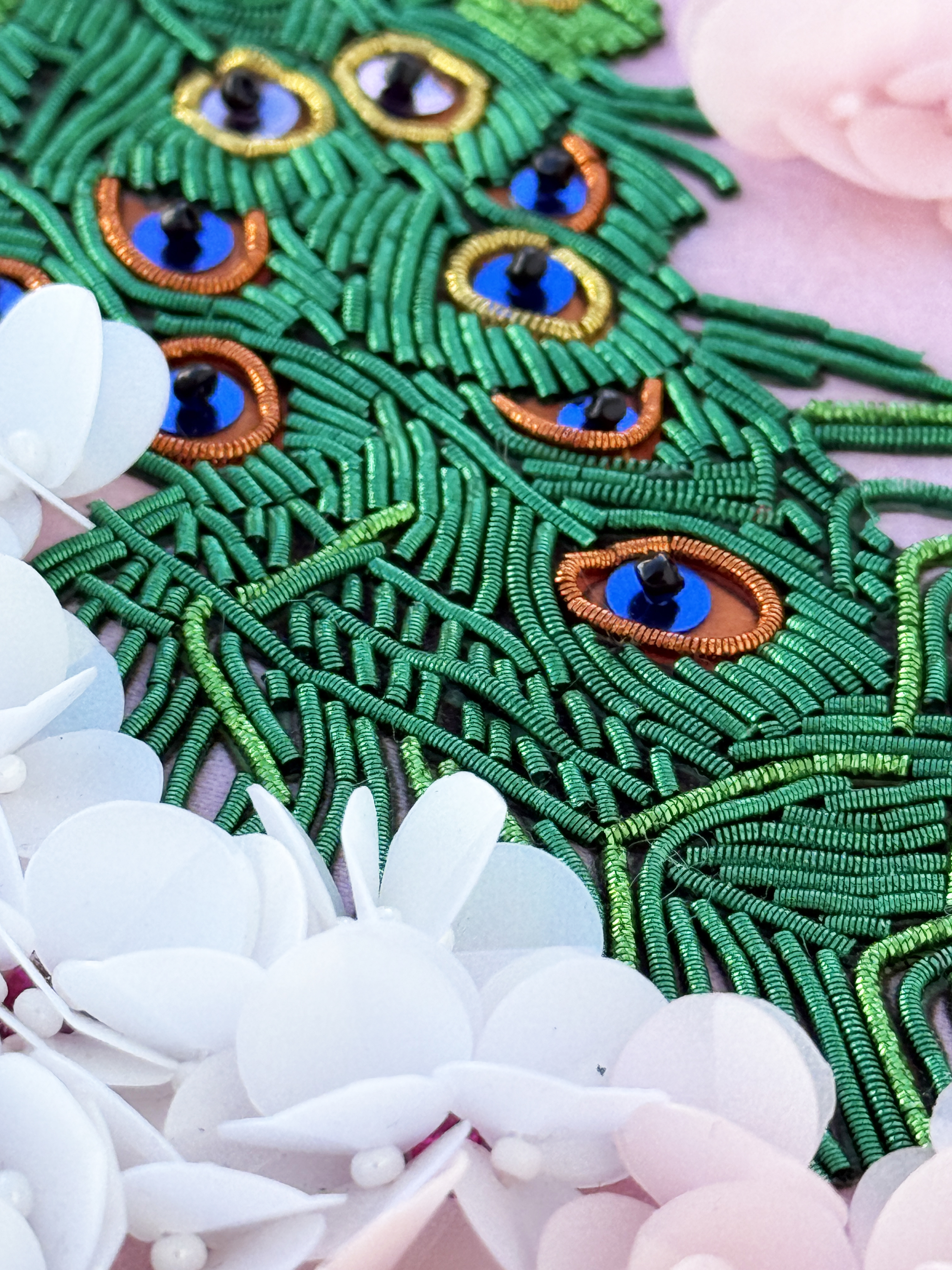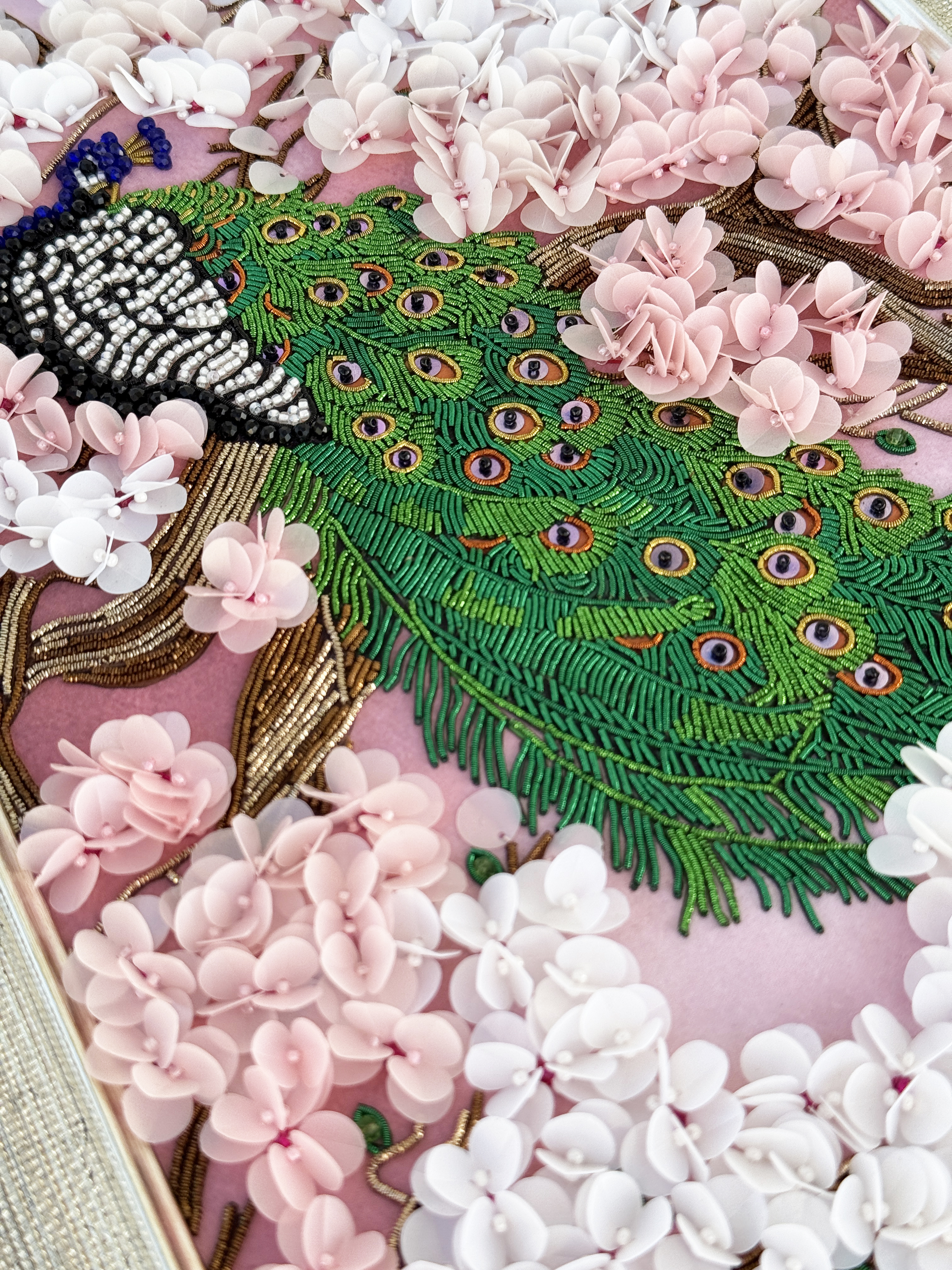 Особенная сюжетная разработка от нашей студии вышивки, впервые мы попробовали увеличить объем своих сюжетов и не прогадали, пайетки-лепестки отлично имитируют цветение сакуры, создавая ощущение наступившей весны.