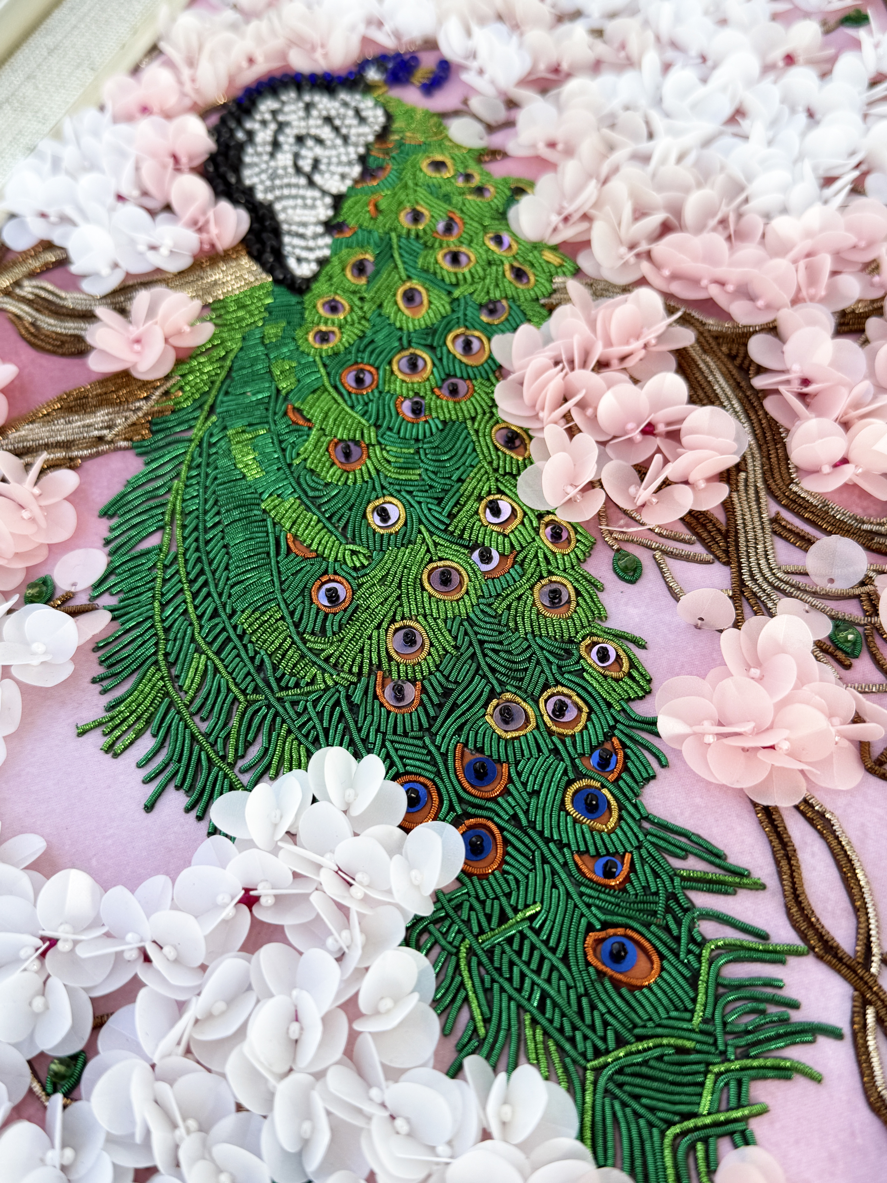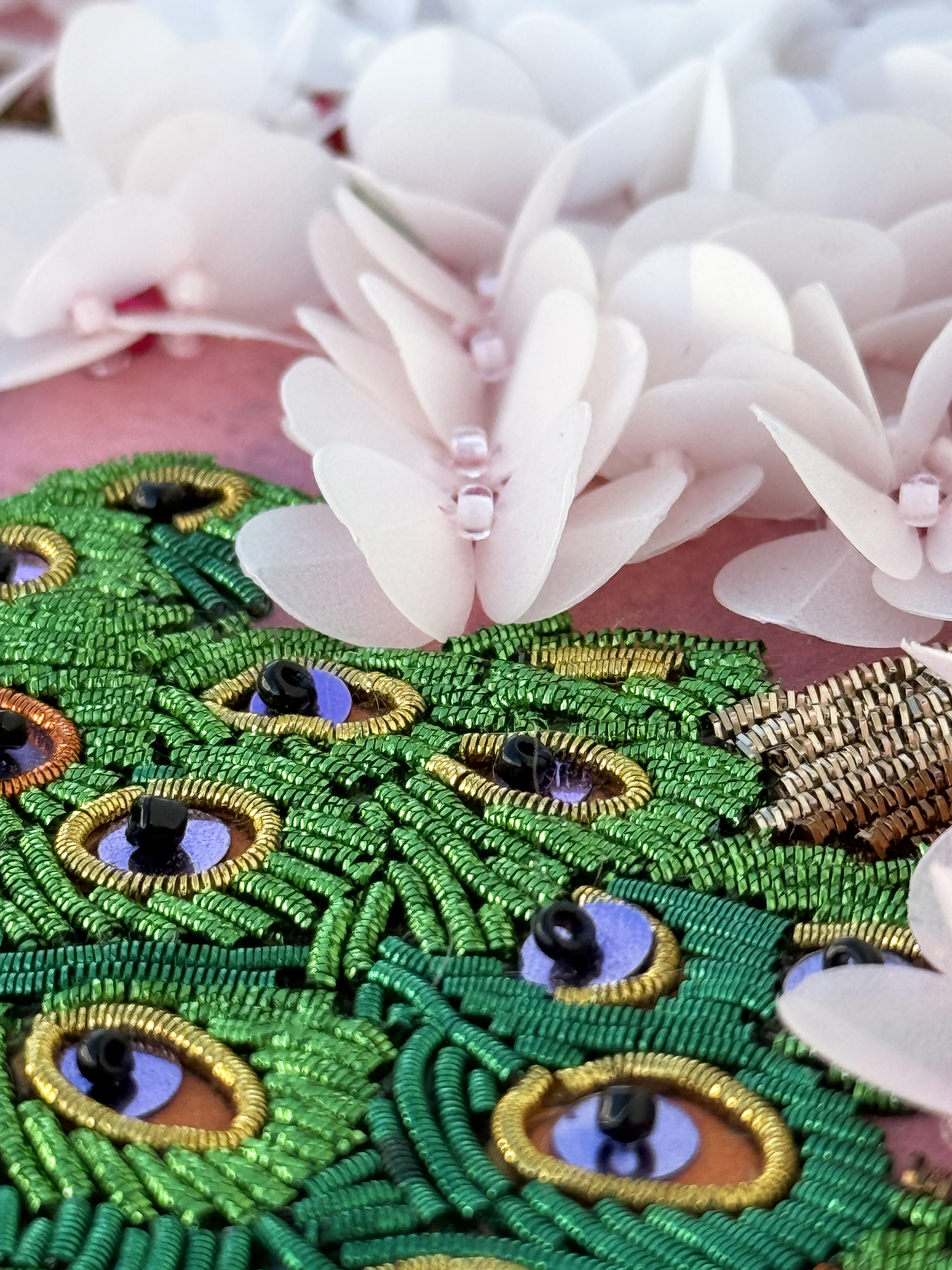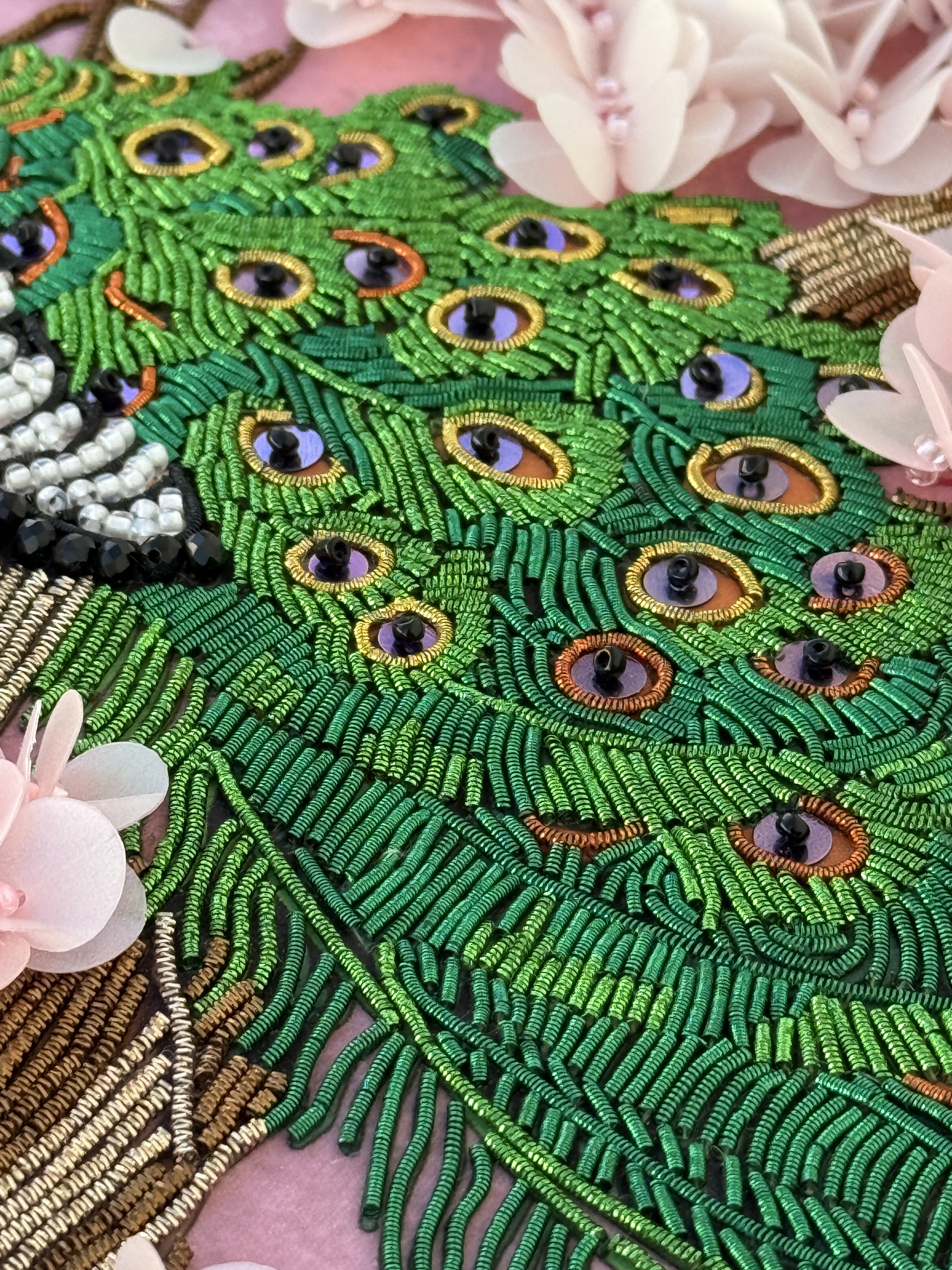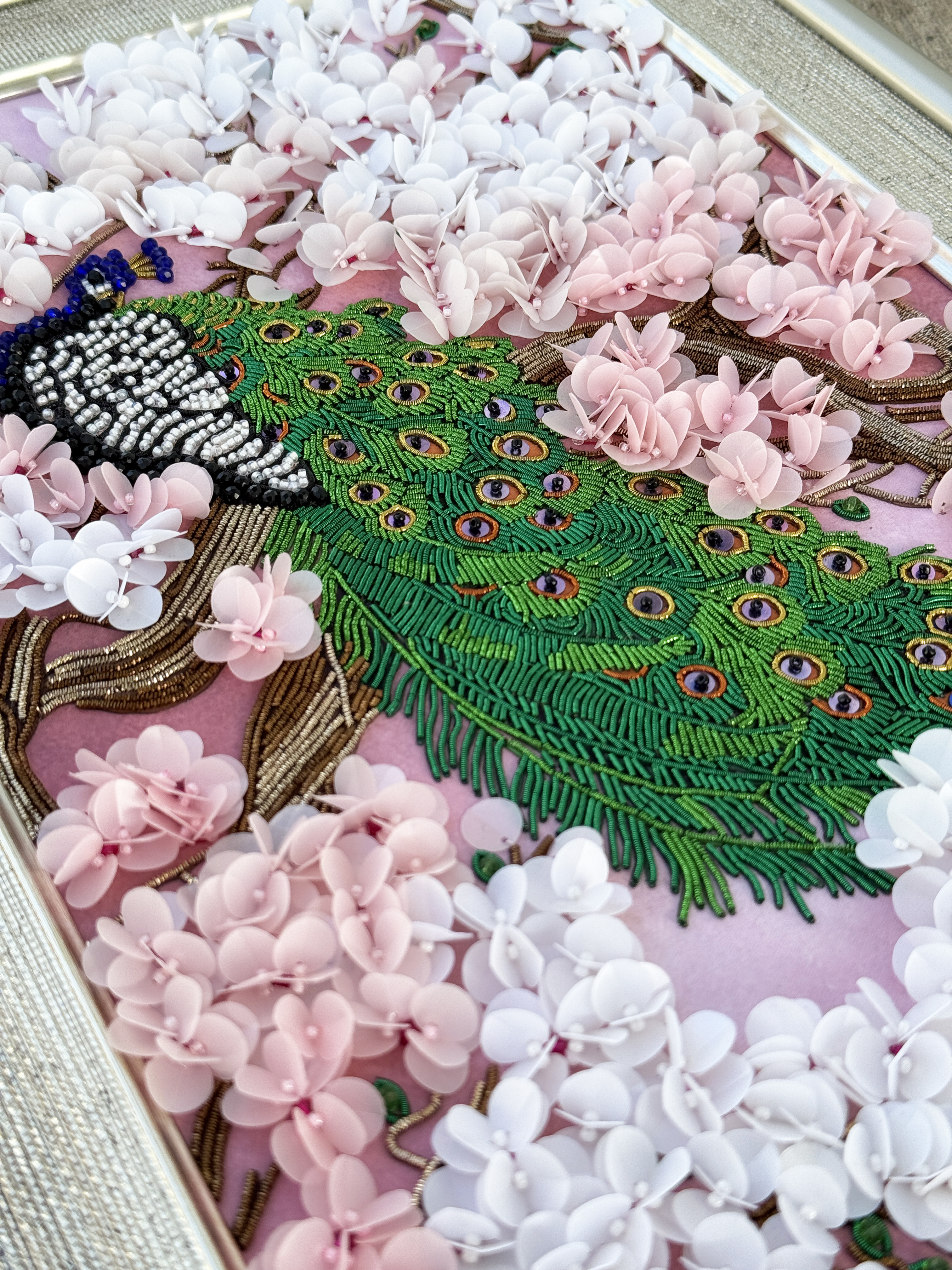 Особенная сюжетная разработка от нашей студии вышивки, впервые мы попробовали увеличить объем своих сюжетов и не прогадали, пайетки-лепестки отлично имитируют цветение сакуры, создавая ощущение наступившей весны.