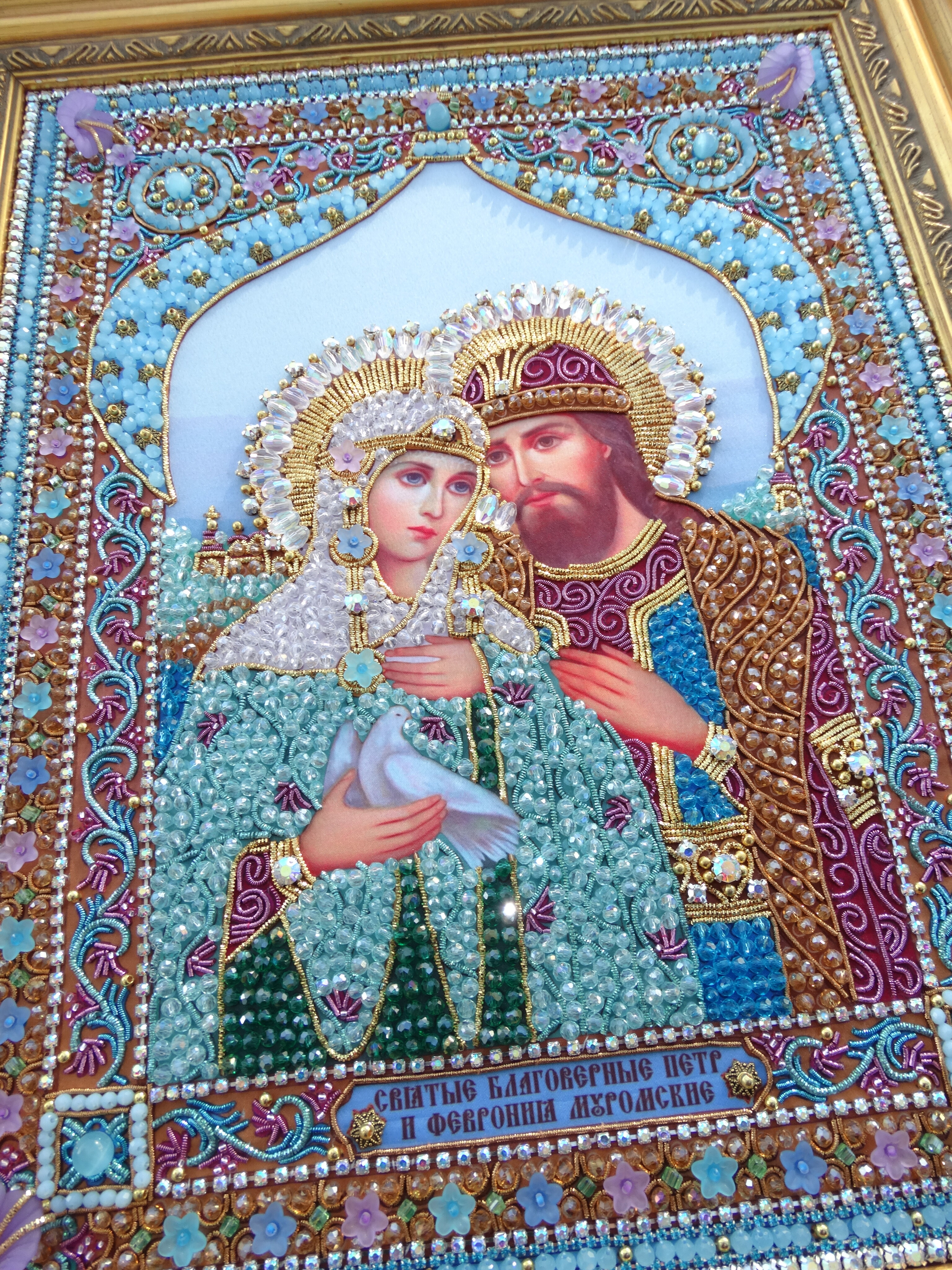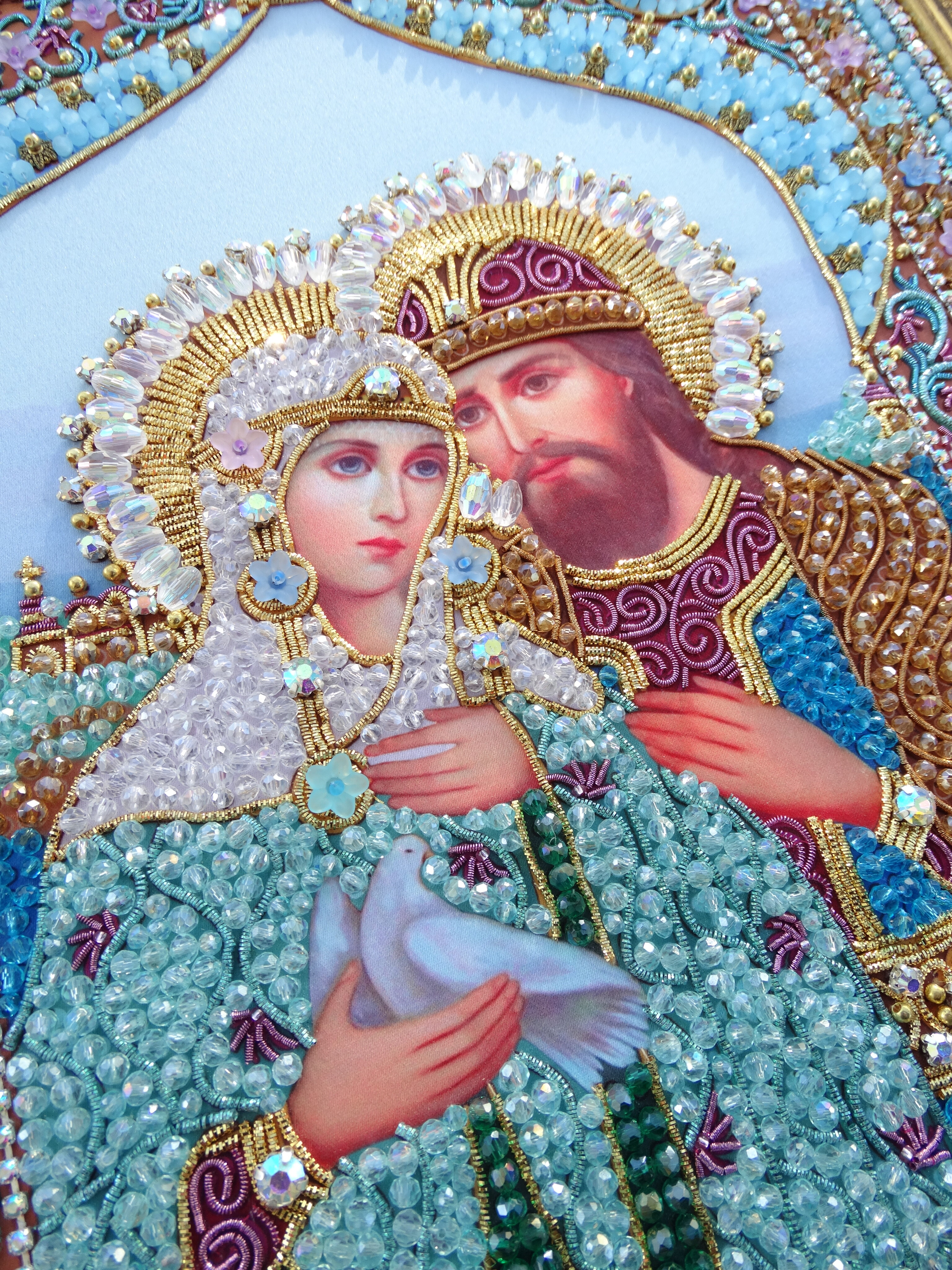 Проект нашей студии вышивки, направленный на объединение в единую концепцию икон, содержащих в себе высокий смысл семейного счастья и любви. Серия включает в себя 3 образа: Ангел Хранитель домашнего очага, Богородица Помощница в родах, Святые Петр и Феврония.