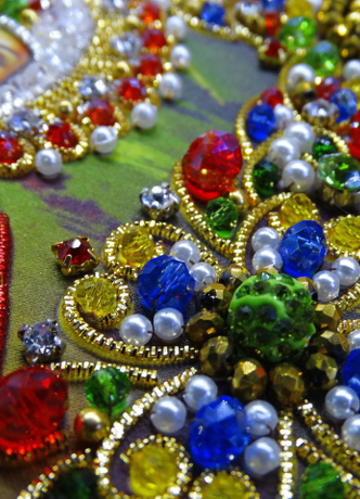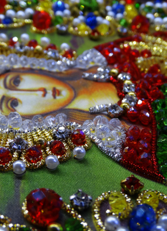 Наши наборы отличаются большим количеством техник, знание которых понадобится Вам для вышивки. В именных иконах впервые представлены новые для наших наборов элементы плетения. Крупная бусина по центру оплетается другими: хрустальными, металлическими и акриловыми бусинами. Форма и дизайн плетения, которое Вы видите на фото слева, разработали мы сами, это наша уникальная разработка. Пусть это занятие и кажется сложным, на самом деле, такая работа интересна и увлекательна!