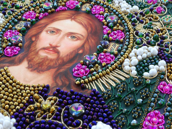 Каноничность можно назвать основным признаком или особенностью иконы. Поскольку Святой Образ должен использоваться в церковной практике и осуществлять связь человека с Богом, то всё в нем должно было быть подчинено единым «правилам». Спас Лоза истинная, разработанный нашей студии вышивки, создан в соответствии со всеми церковными правилами. Вышитую по нашему набору для вышивания икону не только можно, но даже рекомендуется освятить в церкви.