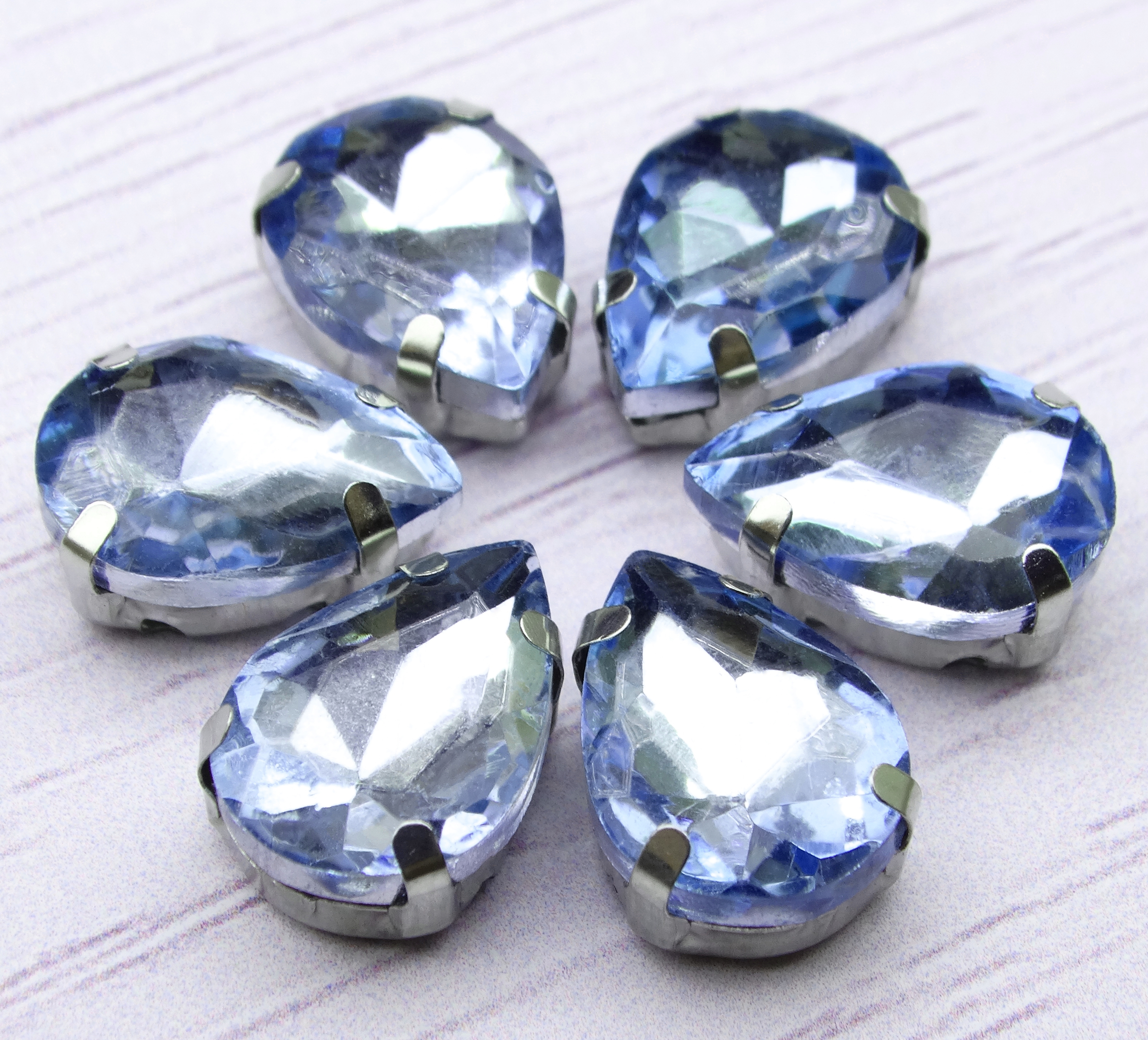 АЦ024НН1014 Хрустальные стразы формы "капля" в цапах, цвет: светло-голубой, 10х14 мм, 5 шт.