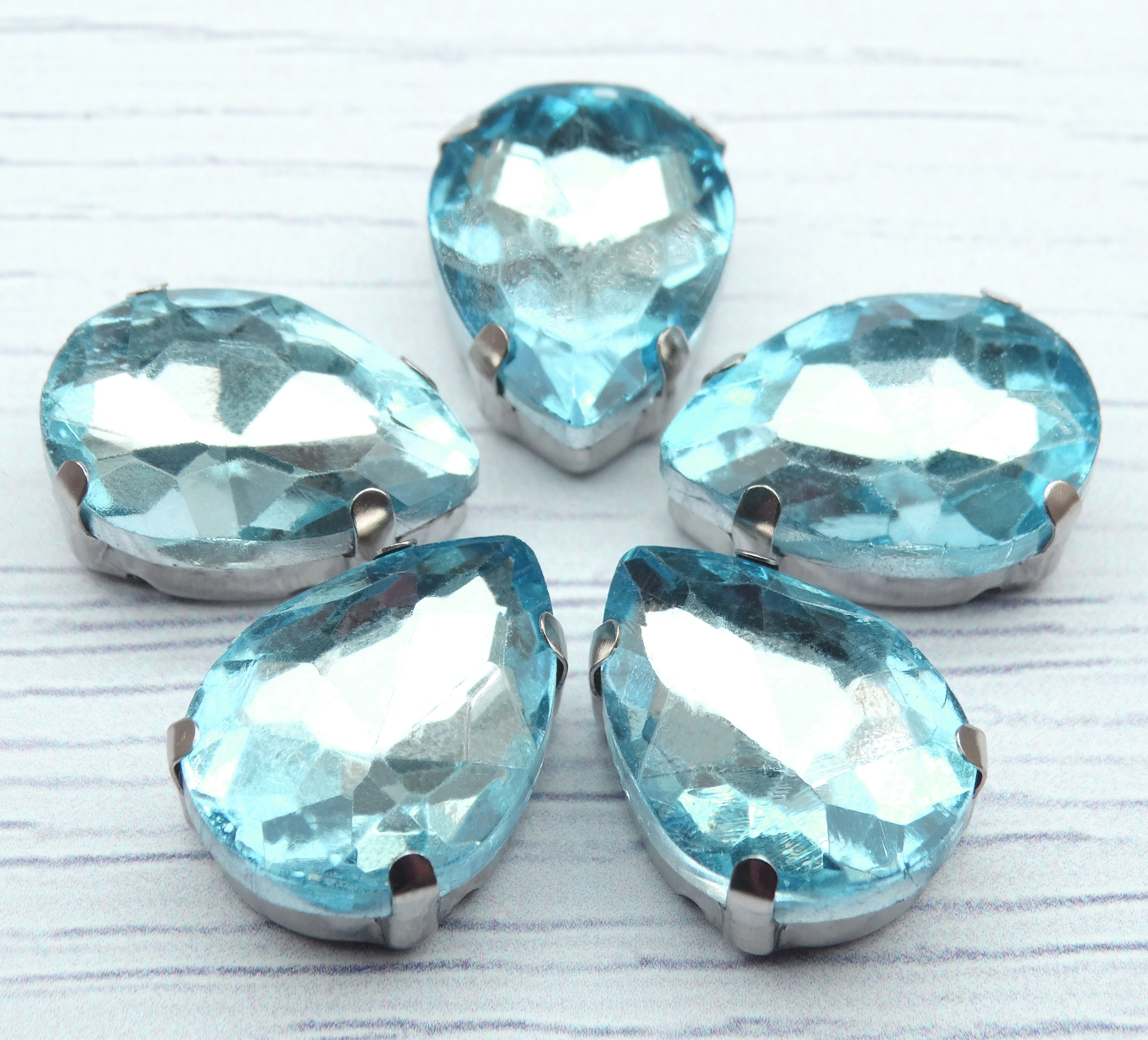 АЦ040НН1318 Хрустальные стразы формы "капля" в цапах, цвет: светло-голубой, 13х18 мм, 3 шт.
