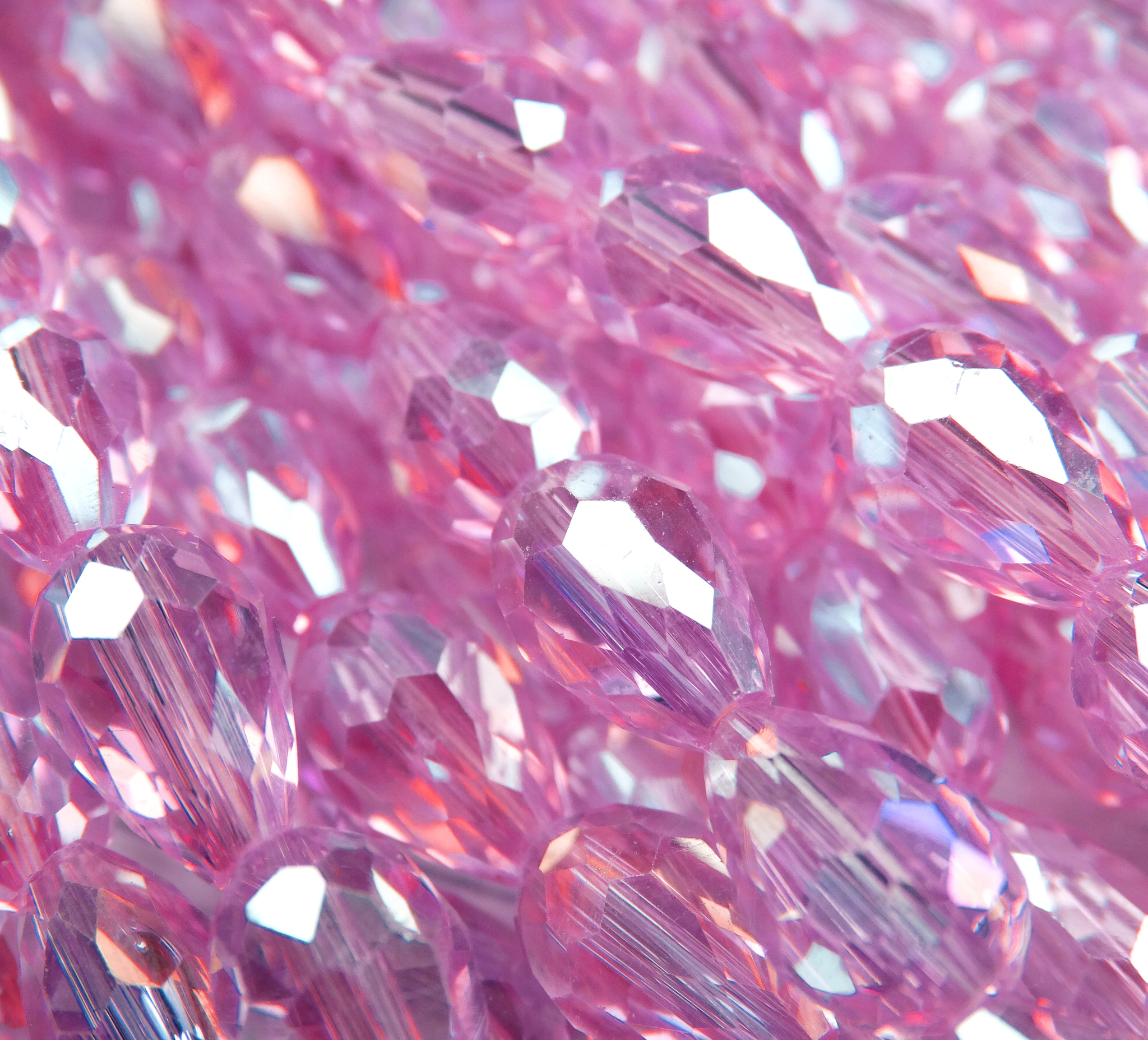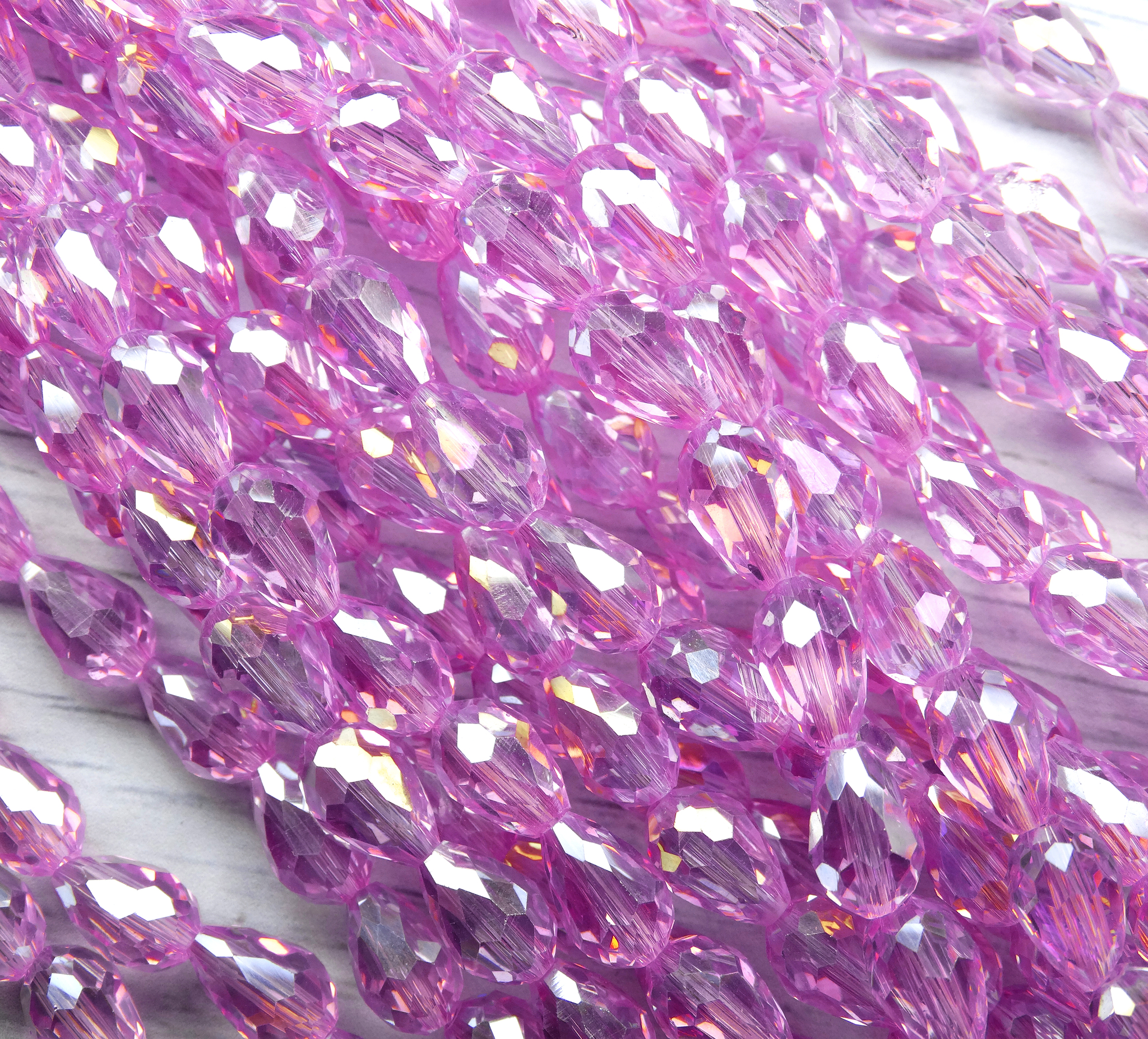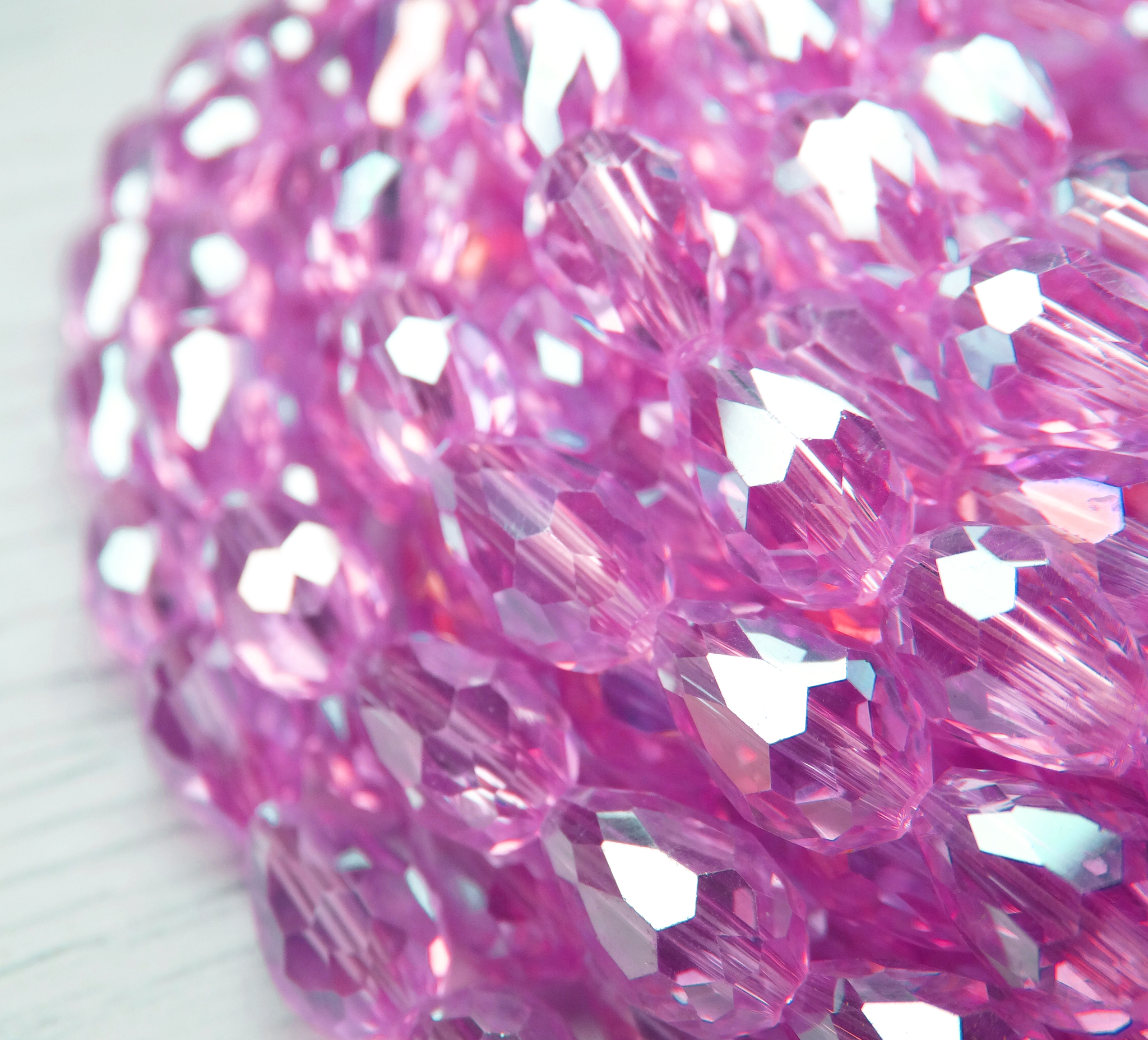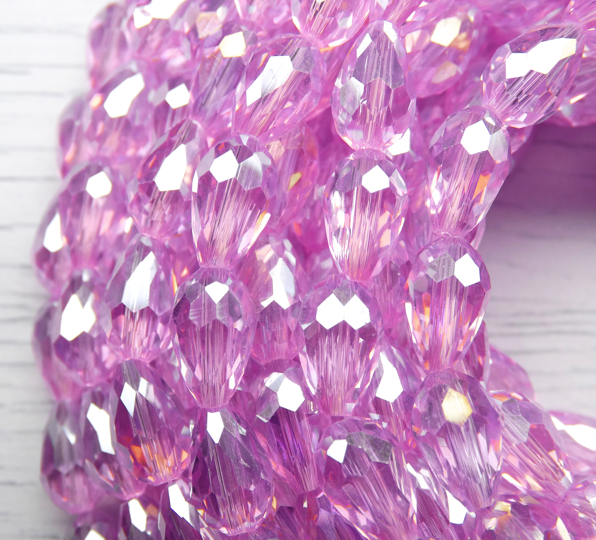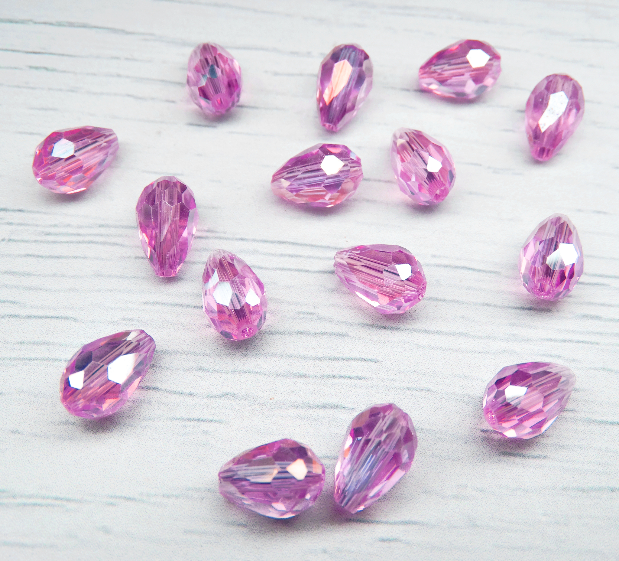 БК016ДС118 Хрустальные бусины-капли, цвет: ярко-розовый AB прозрачный, 11х8 мм, кол-во: 15 шт.