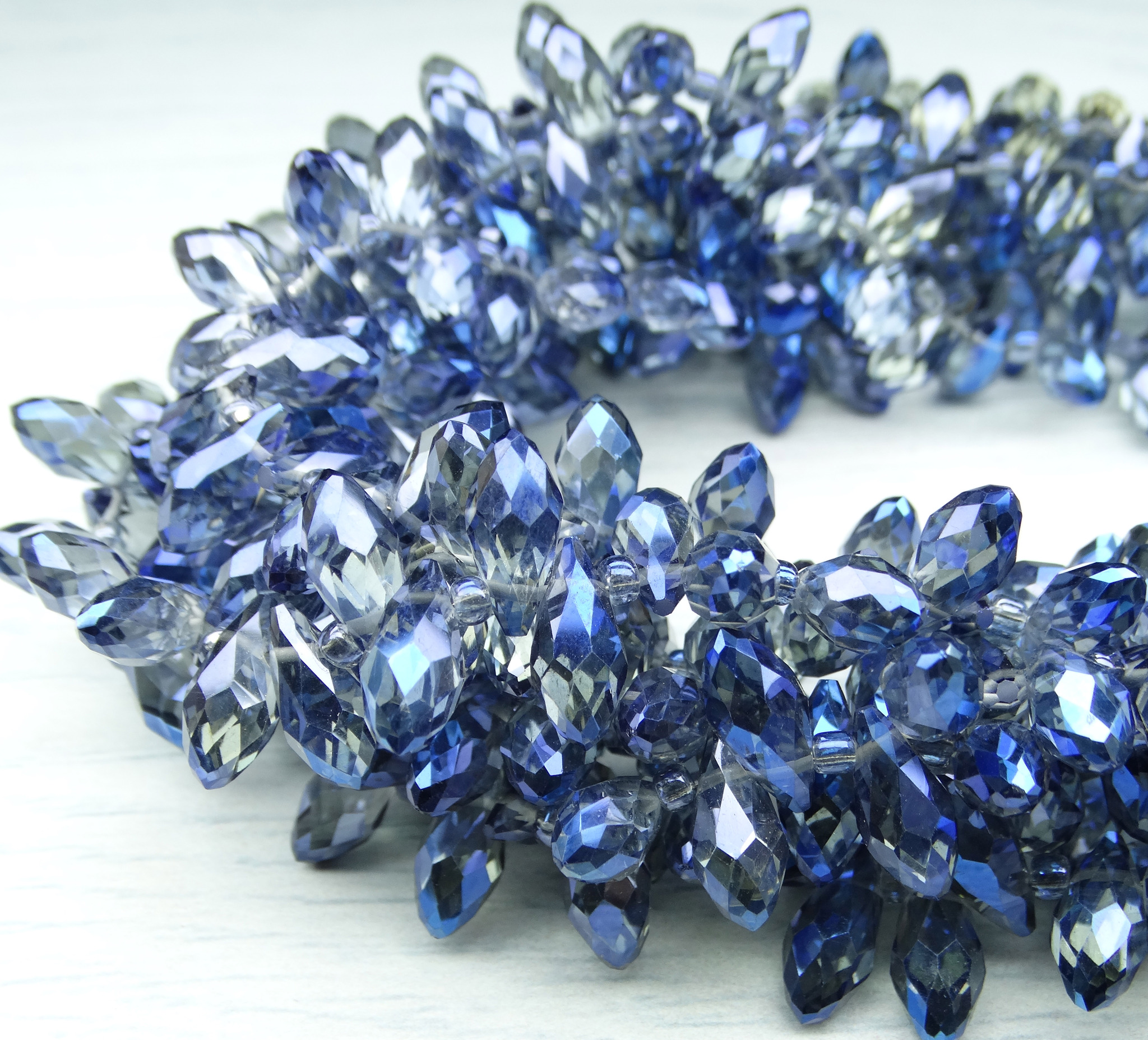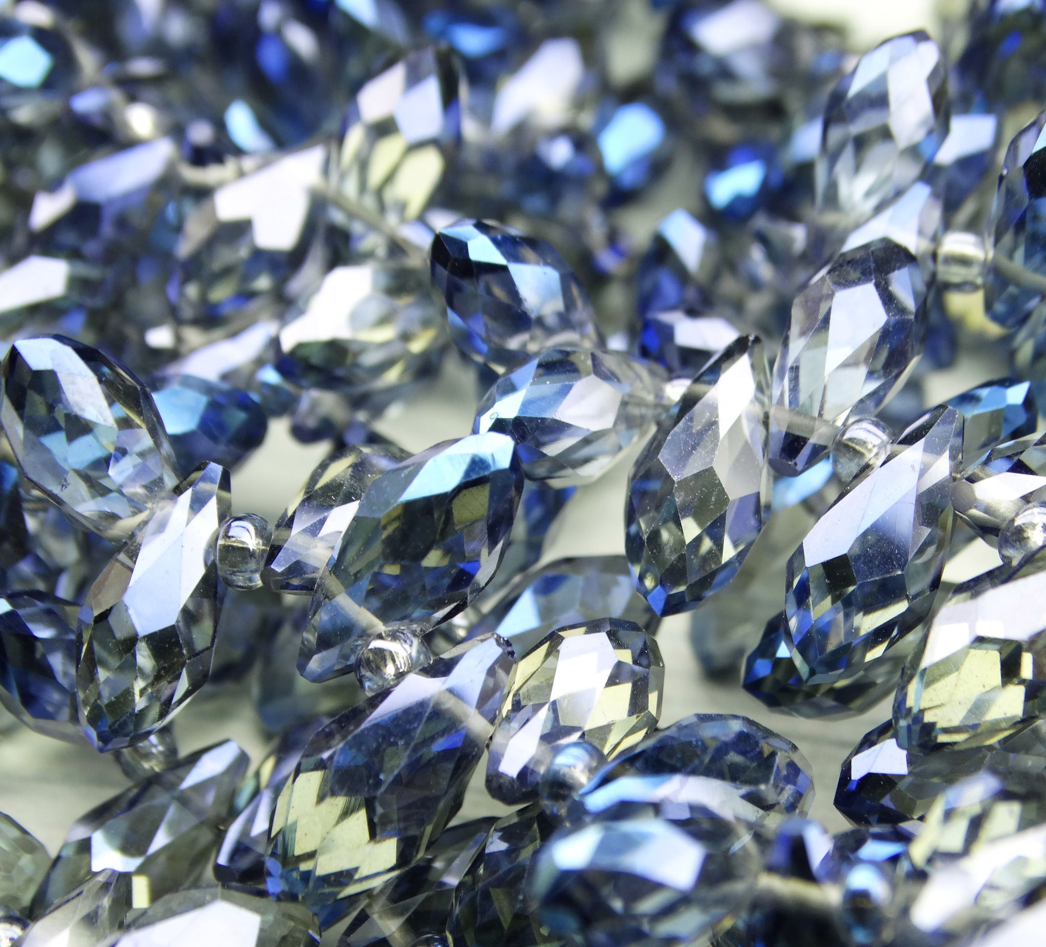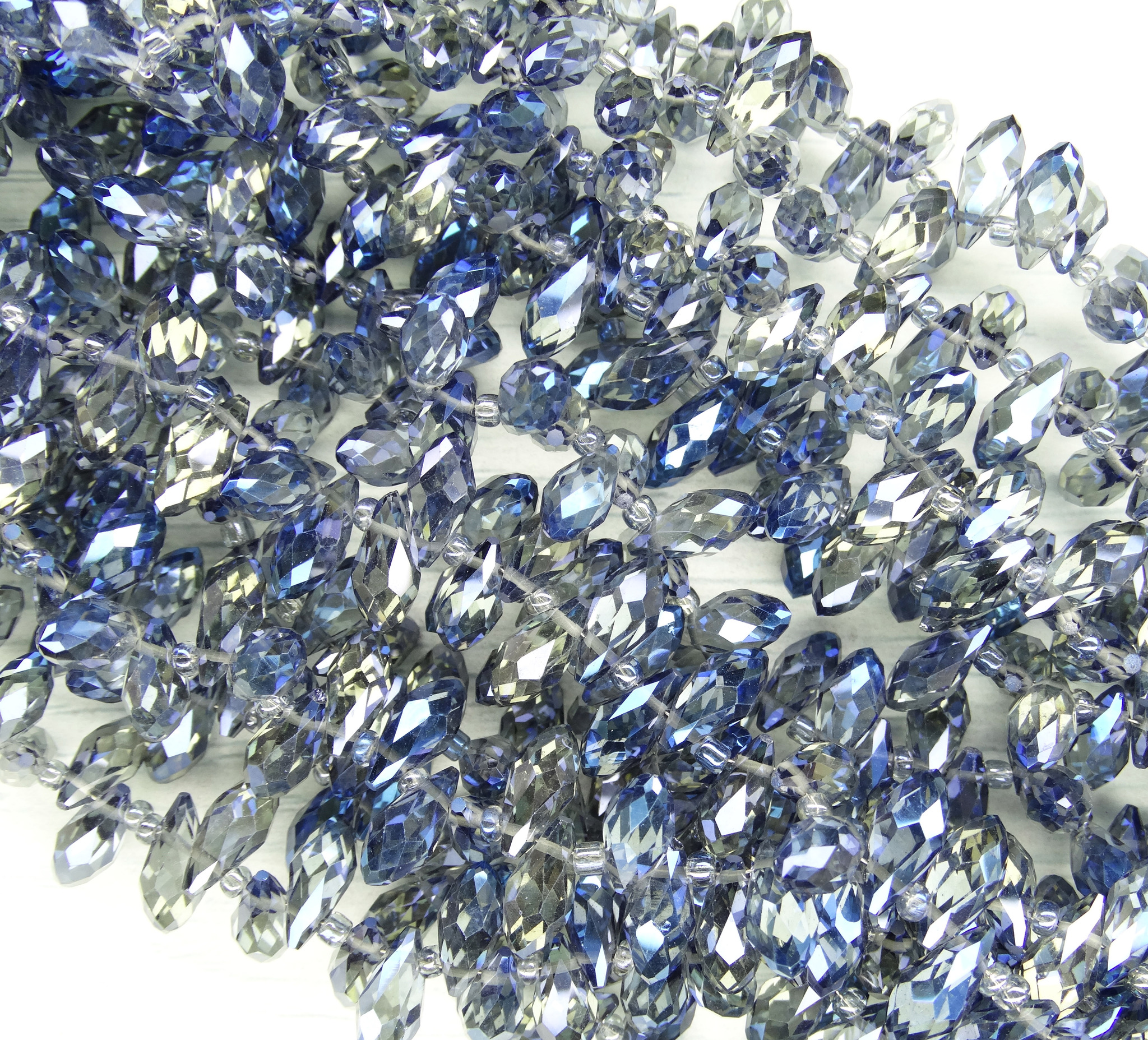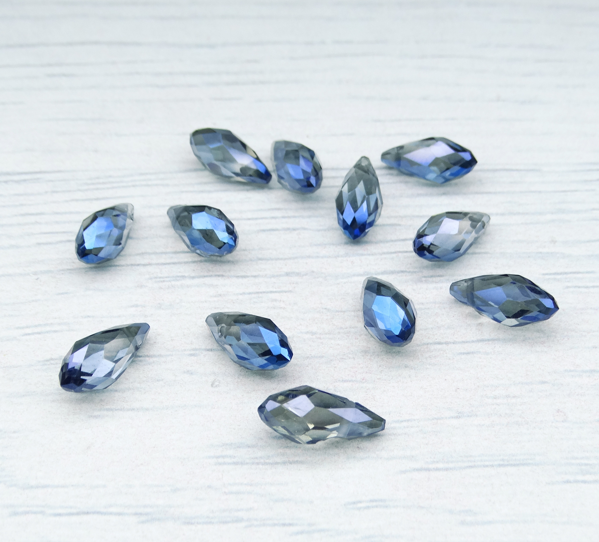 БК023ДН612 Хрустальные бусины-капли, цвет: серый с синим AB прозрачный, размер 6х12 мм, 15 шт.