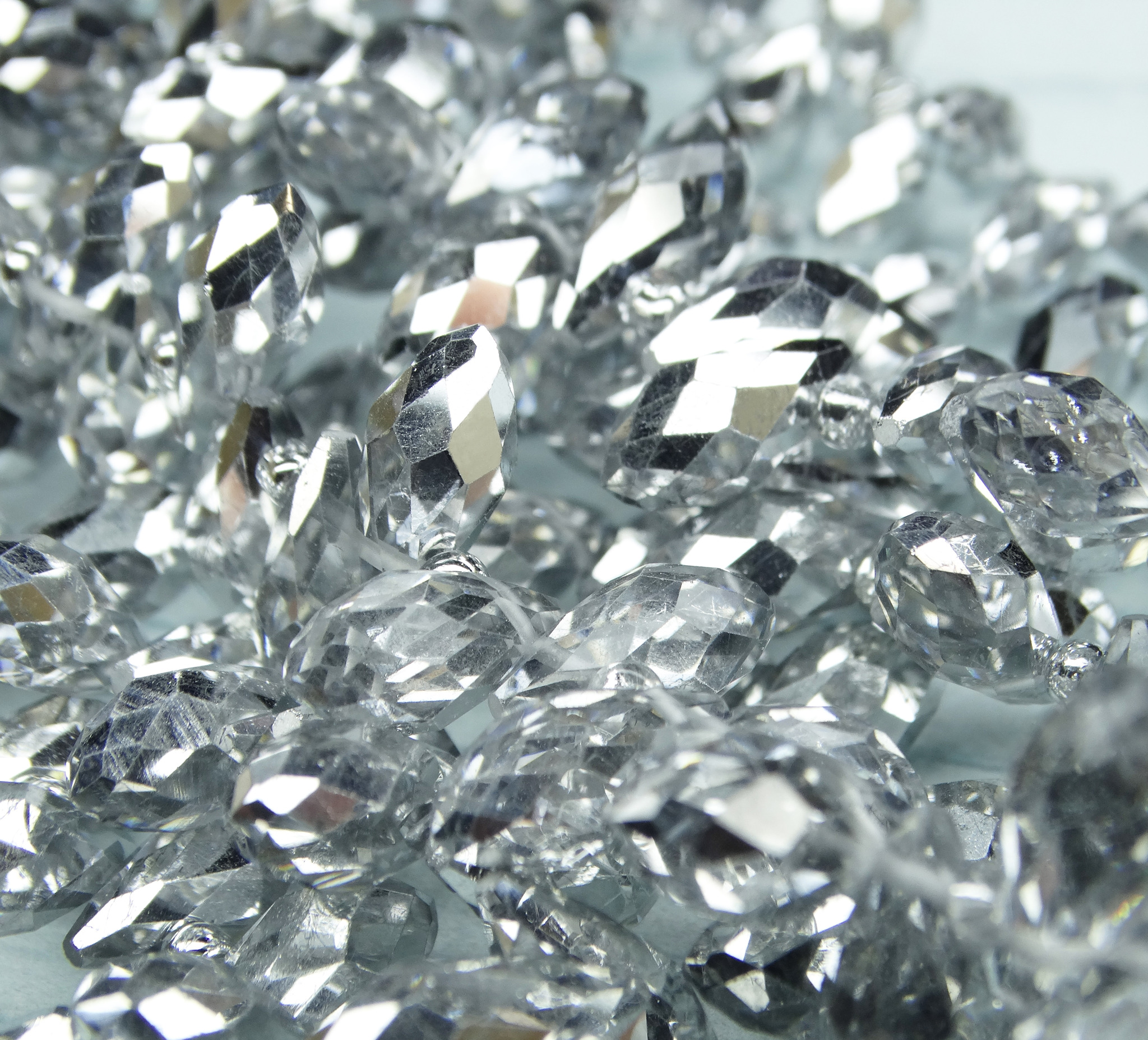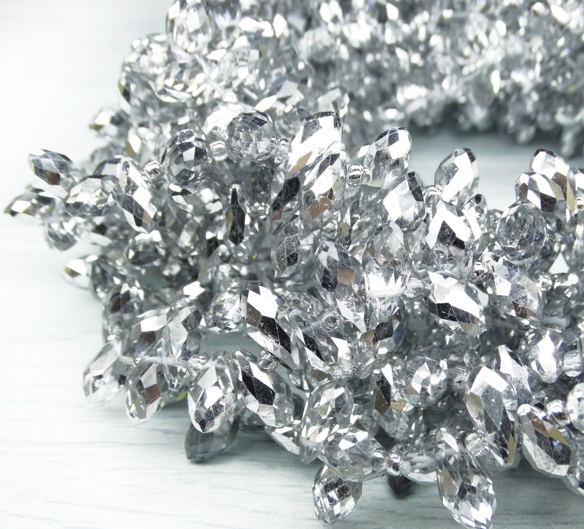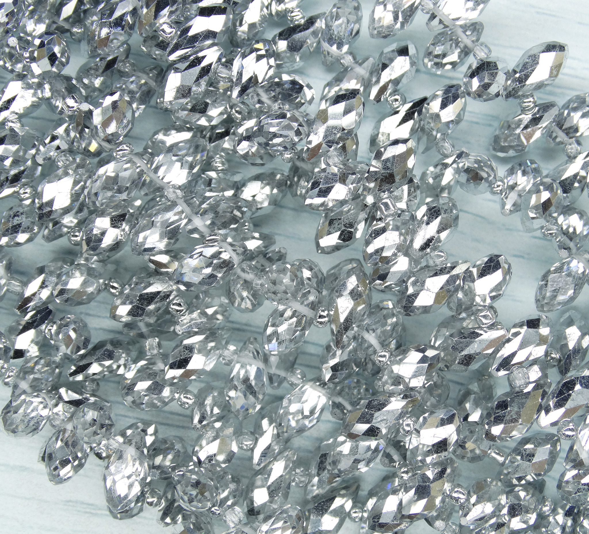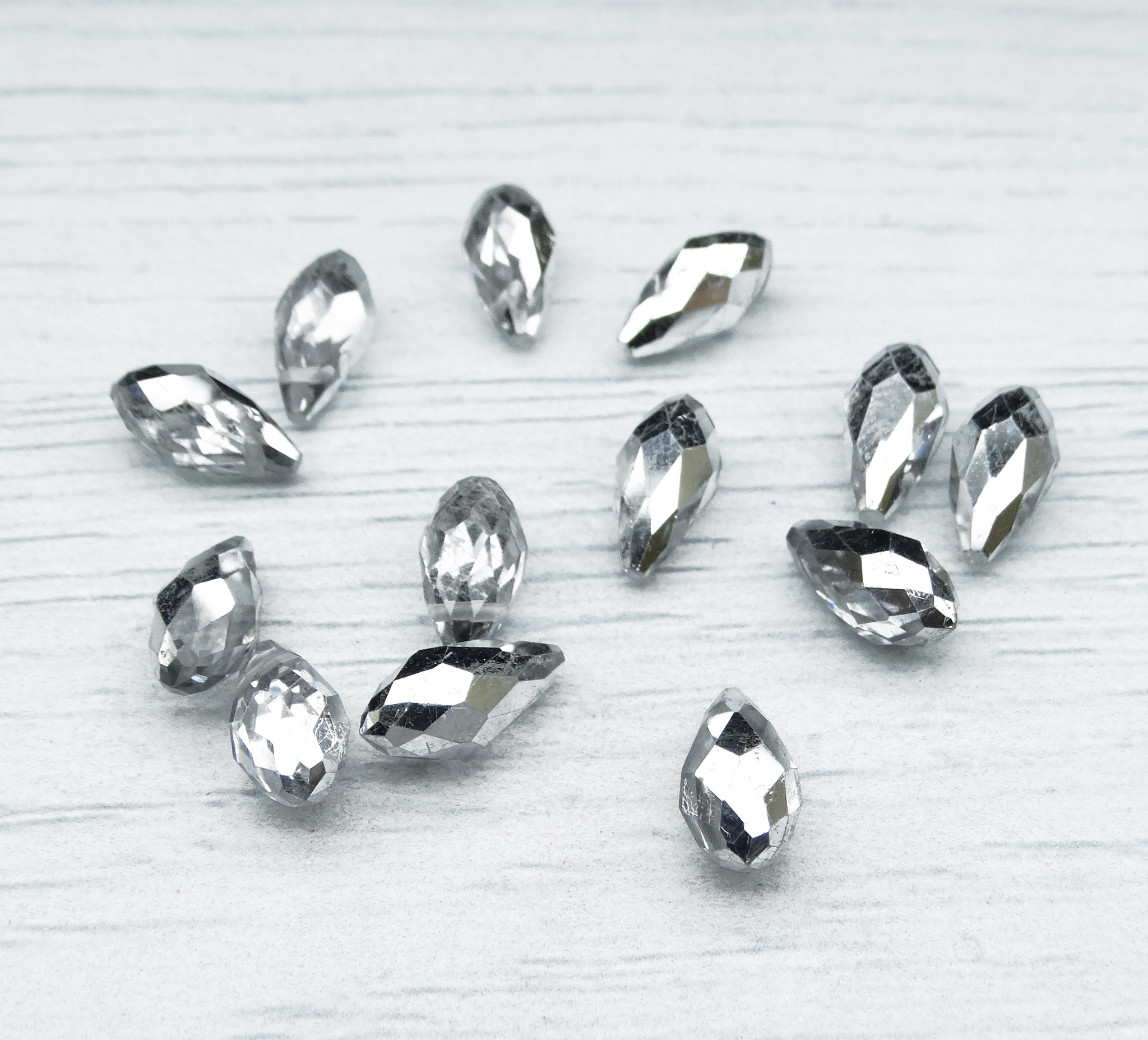 БК025ДН612 Хрустальные бусины-капли, серый с серебристым AB прозрачный, размер 6х12 мм, 15 шт.