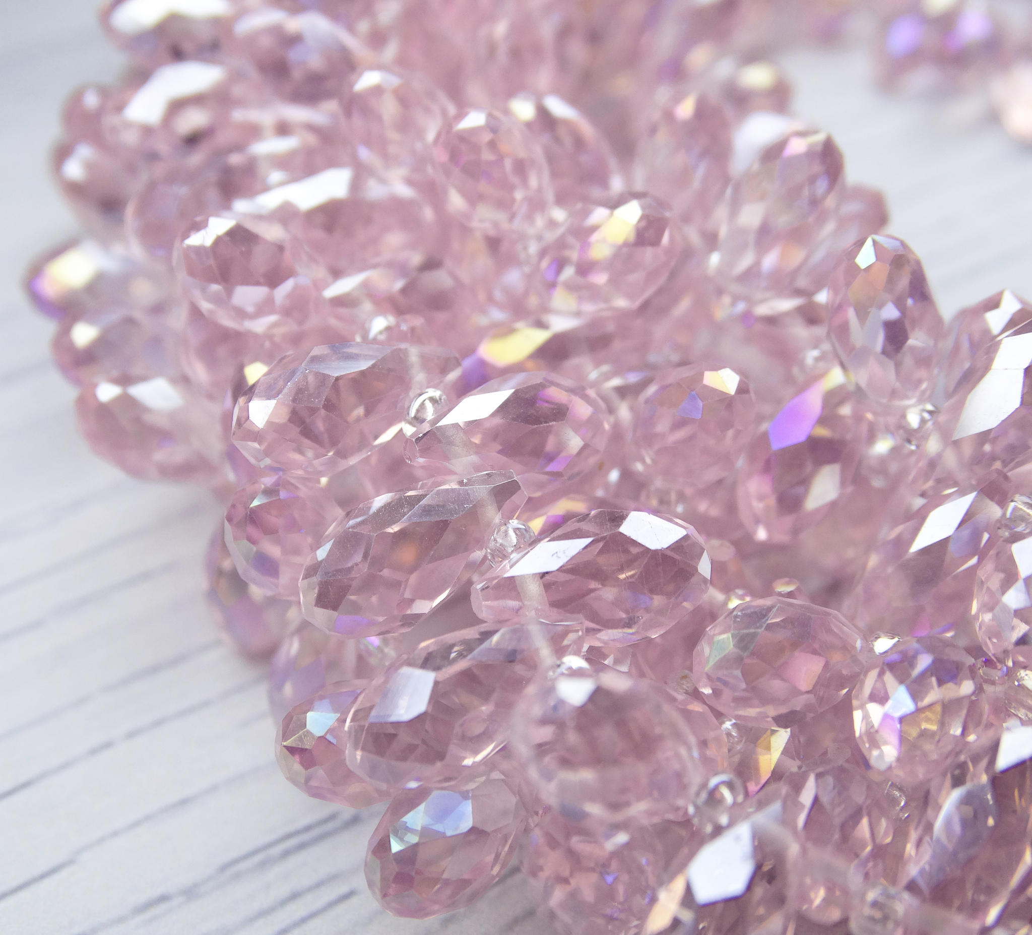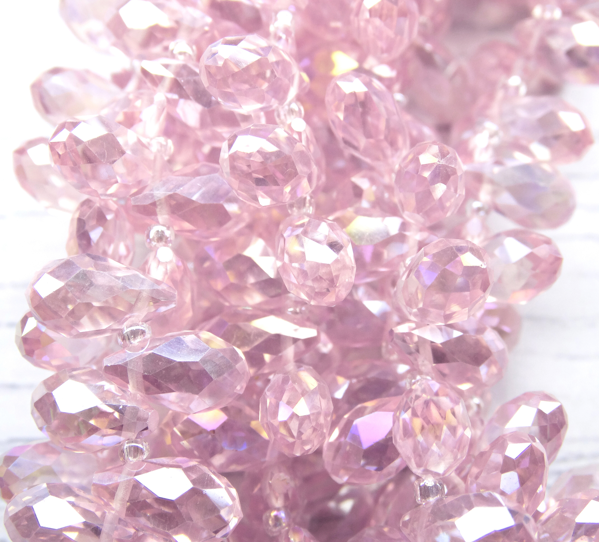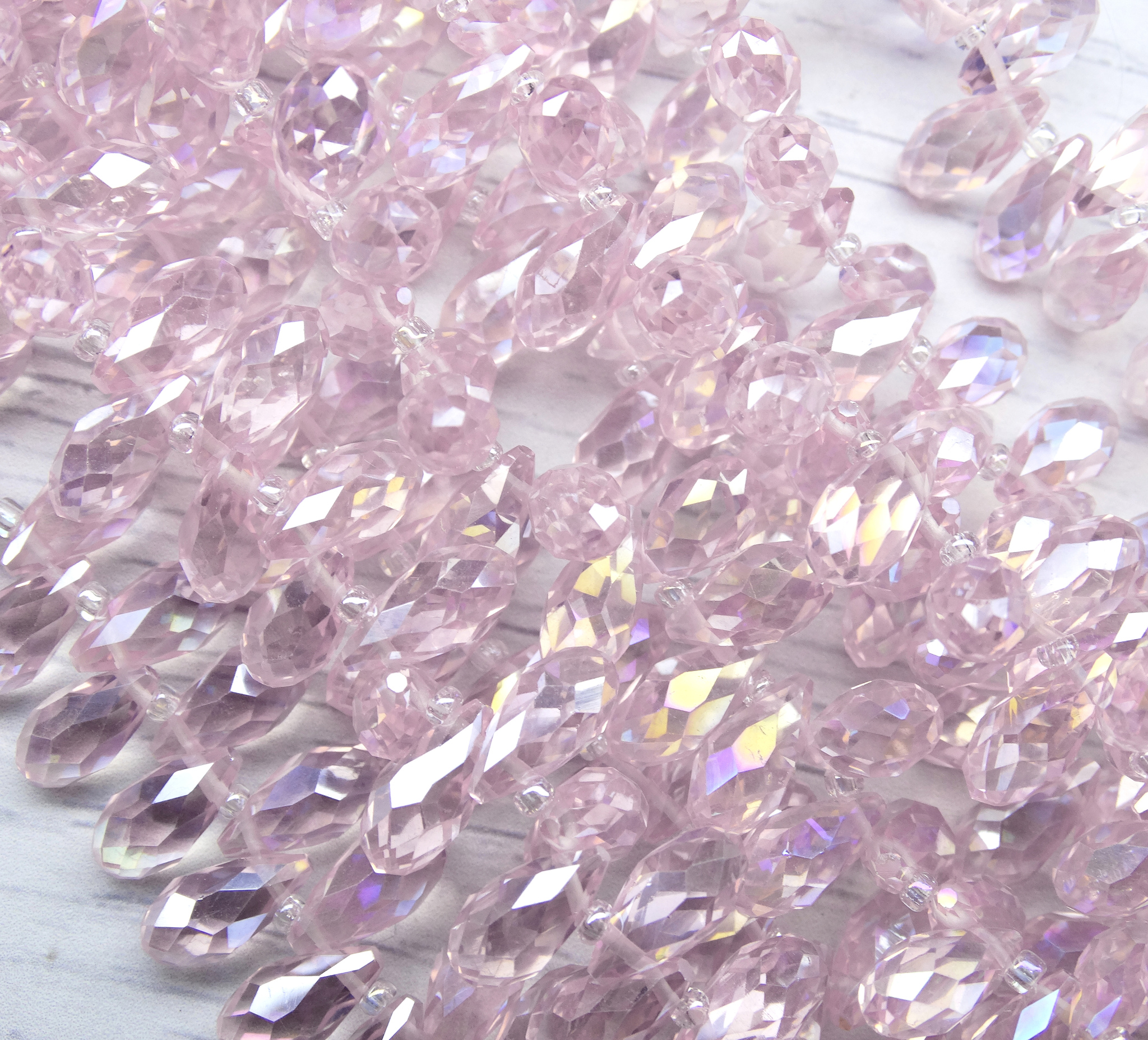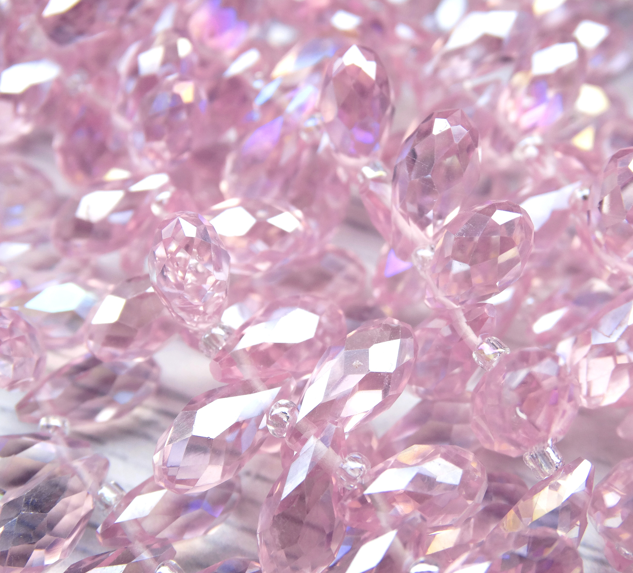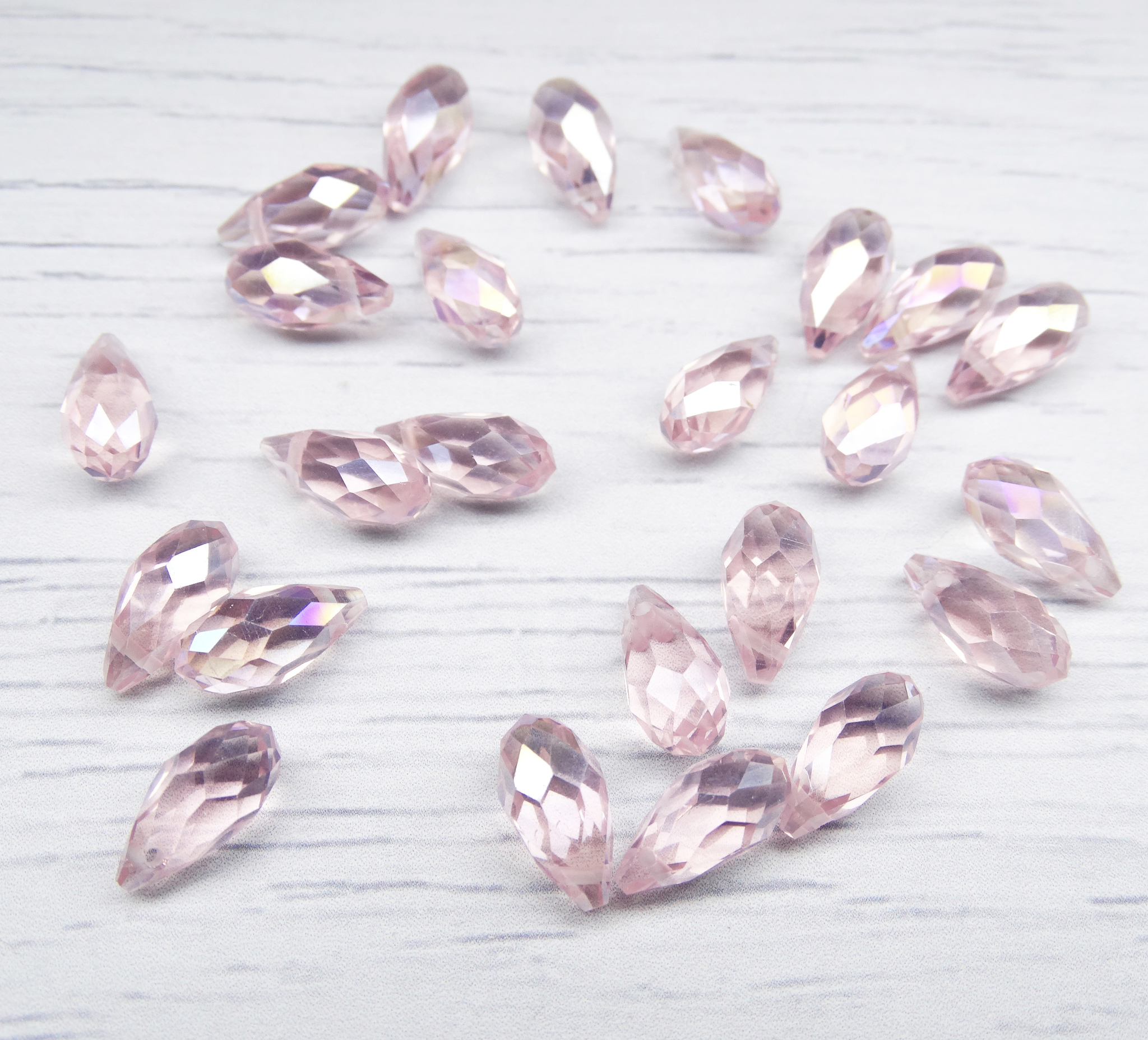 БК028ДС612 Хрустальные бусины-капли, розовый AB прозрачный, размер 6х12 мм, 15 шт.
