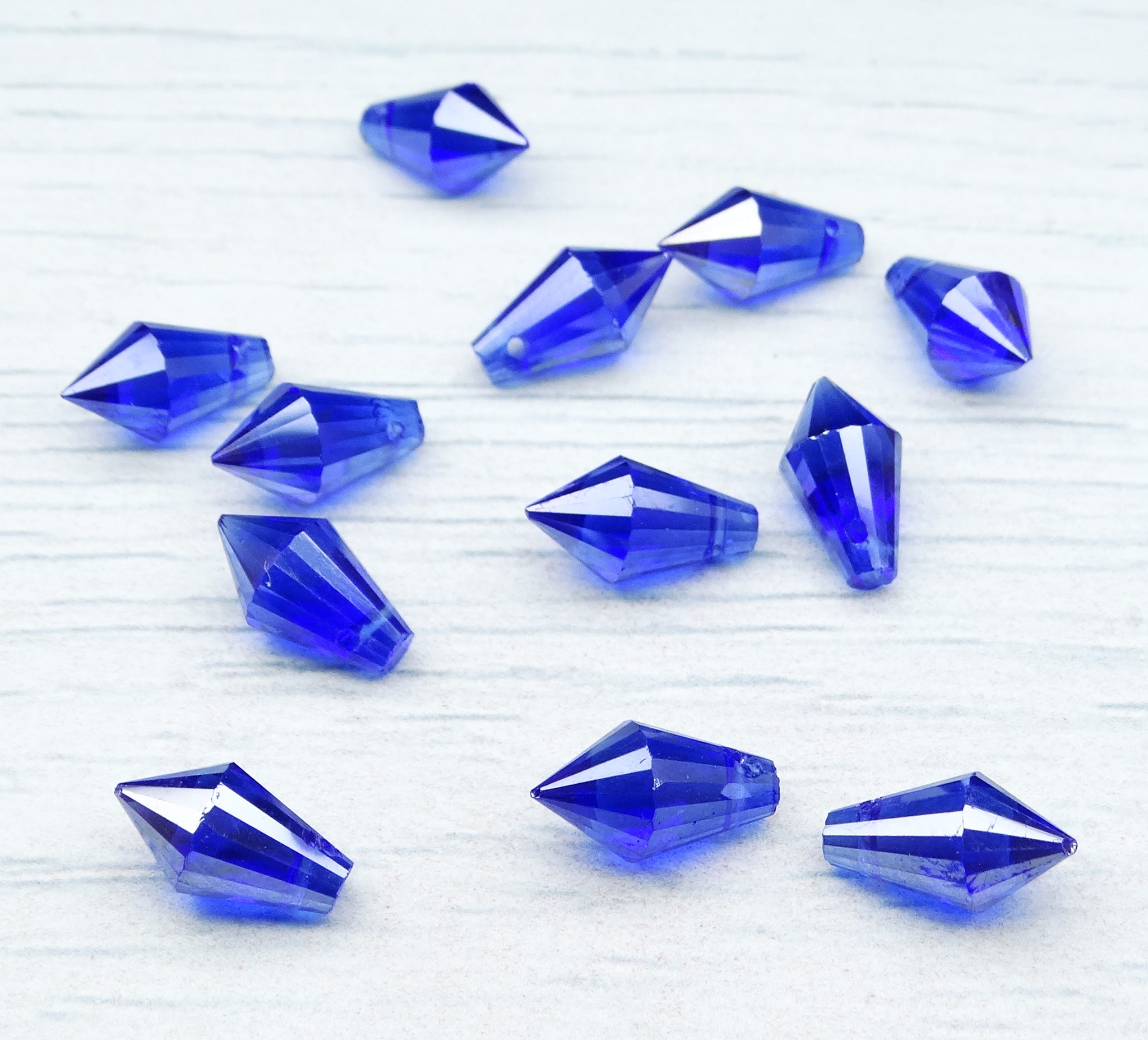 БКК004ДС612 Хрустальные бусины-капли, цвет: синий AB прозрачный, размер 6х12 мм, кол-во: 15 шт.