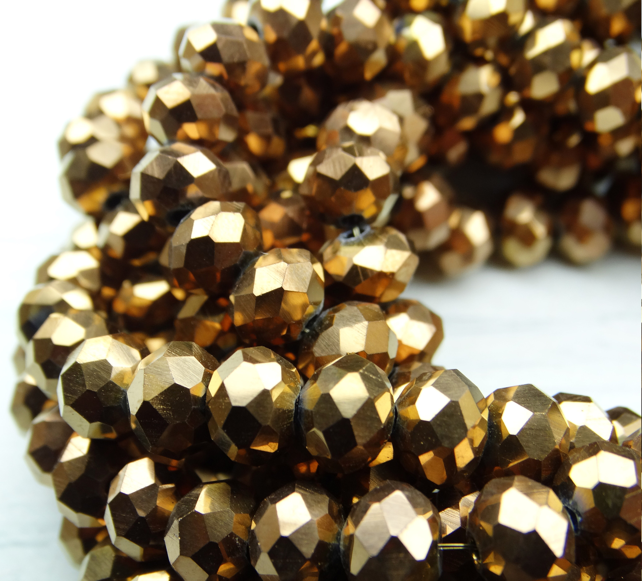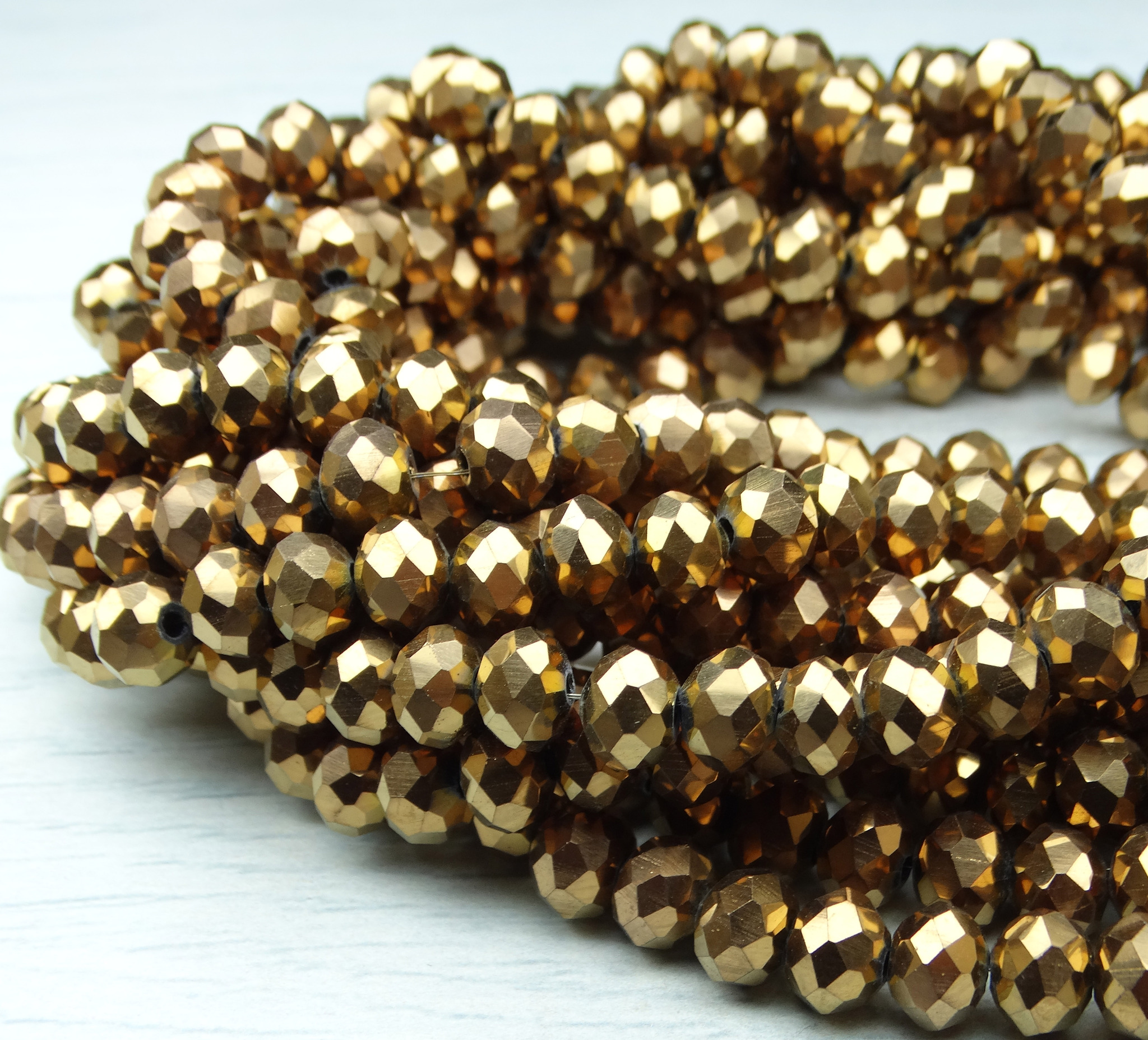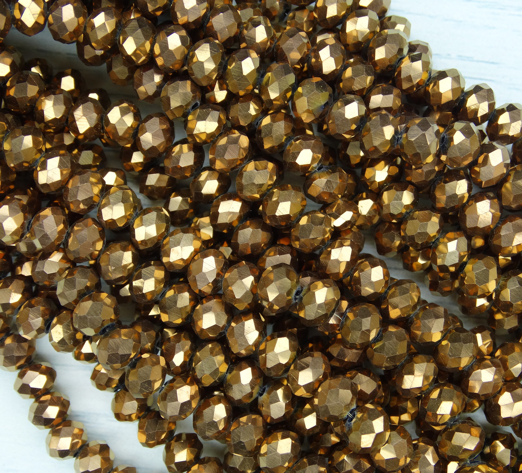 БЛ003НН68 Хрустальные бусины "рондель", цвет: коричневый металлик, размер 6х8 мм, кол-во: 40 шт.