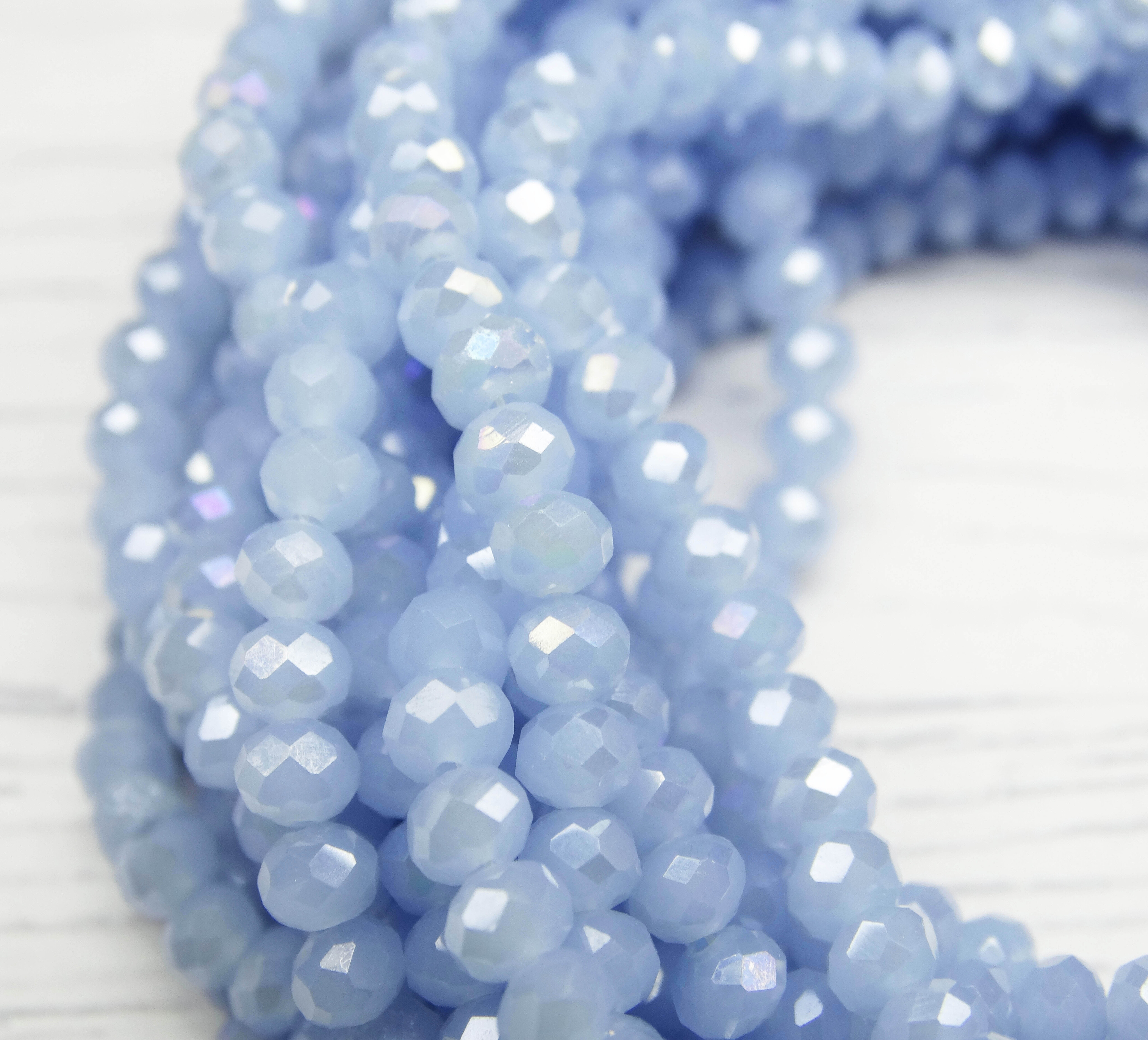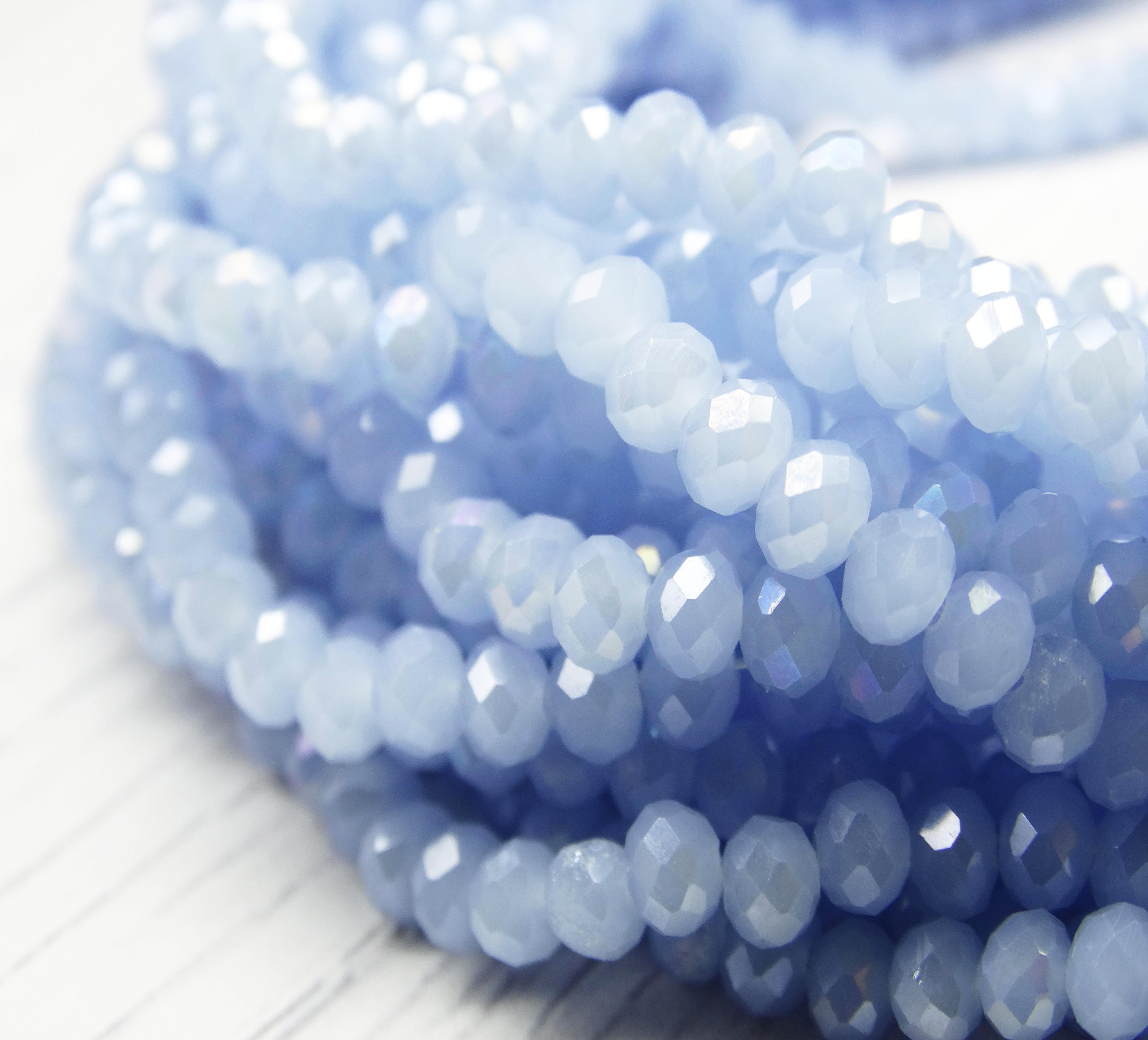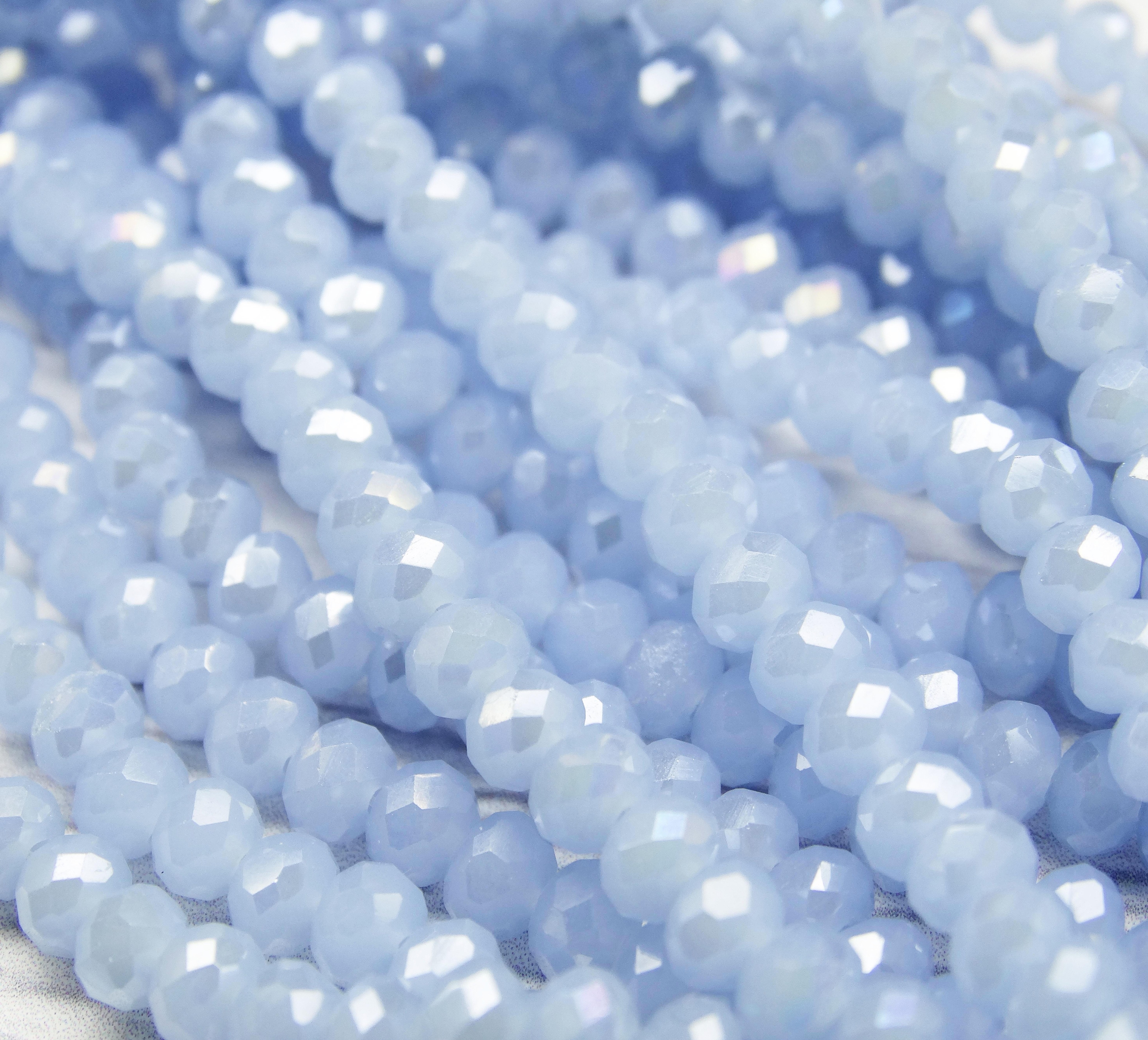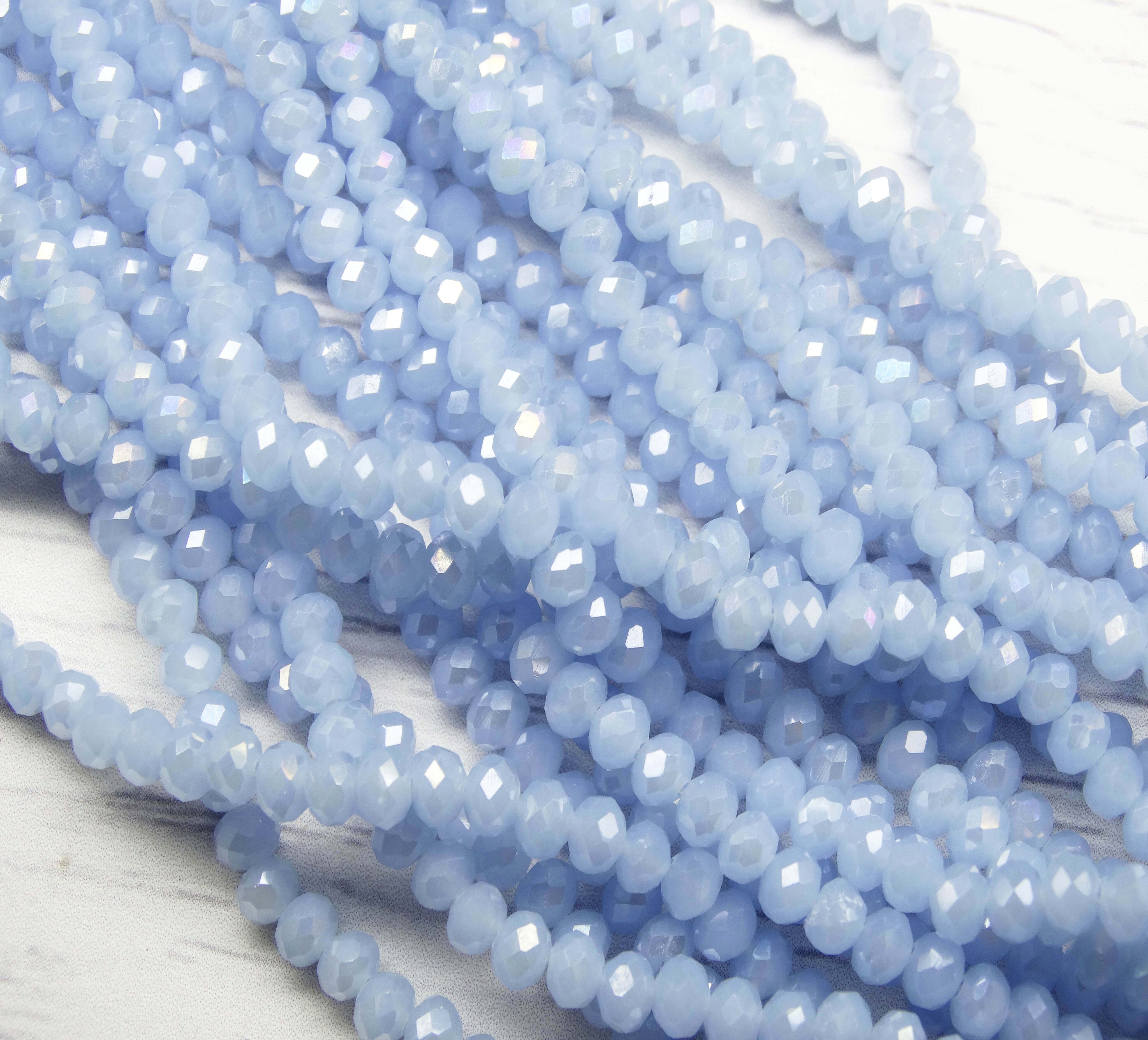 БМ006ДС46 Хрустальные бусины "рондель", цвет: светло-голубой матовый AB, 4х6 мм, кол-во: 58-60 шт.