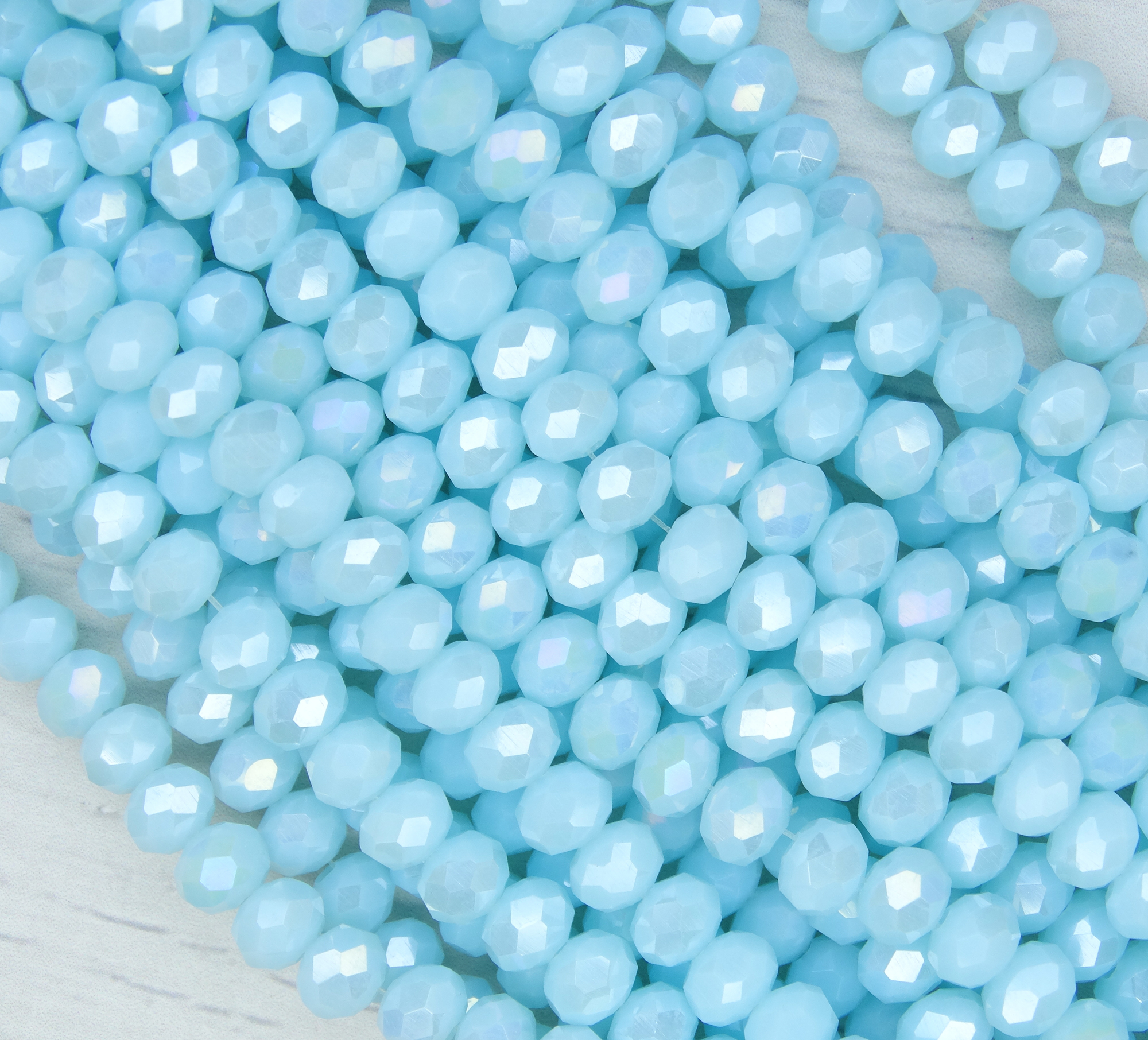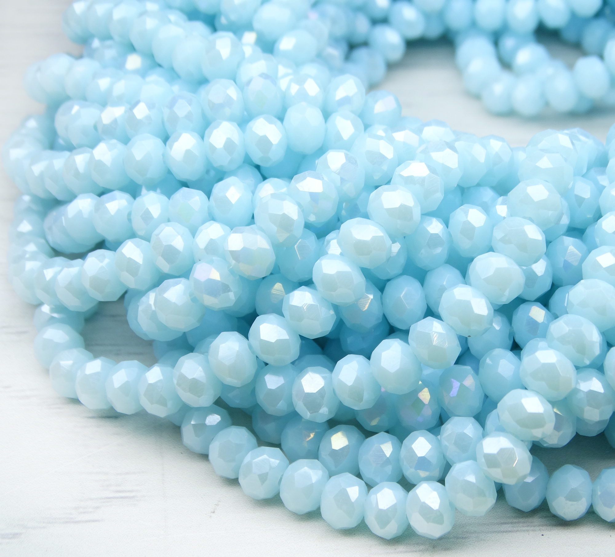 БН016ДС46 Хрустальные бусины "рондель", цвет: небесно-голубой AB непр., 4х6 мм, кол-во: 58-60 шт.
