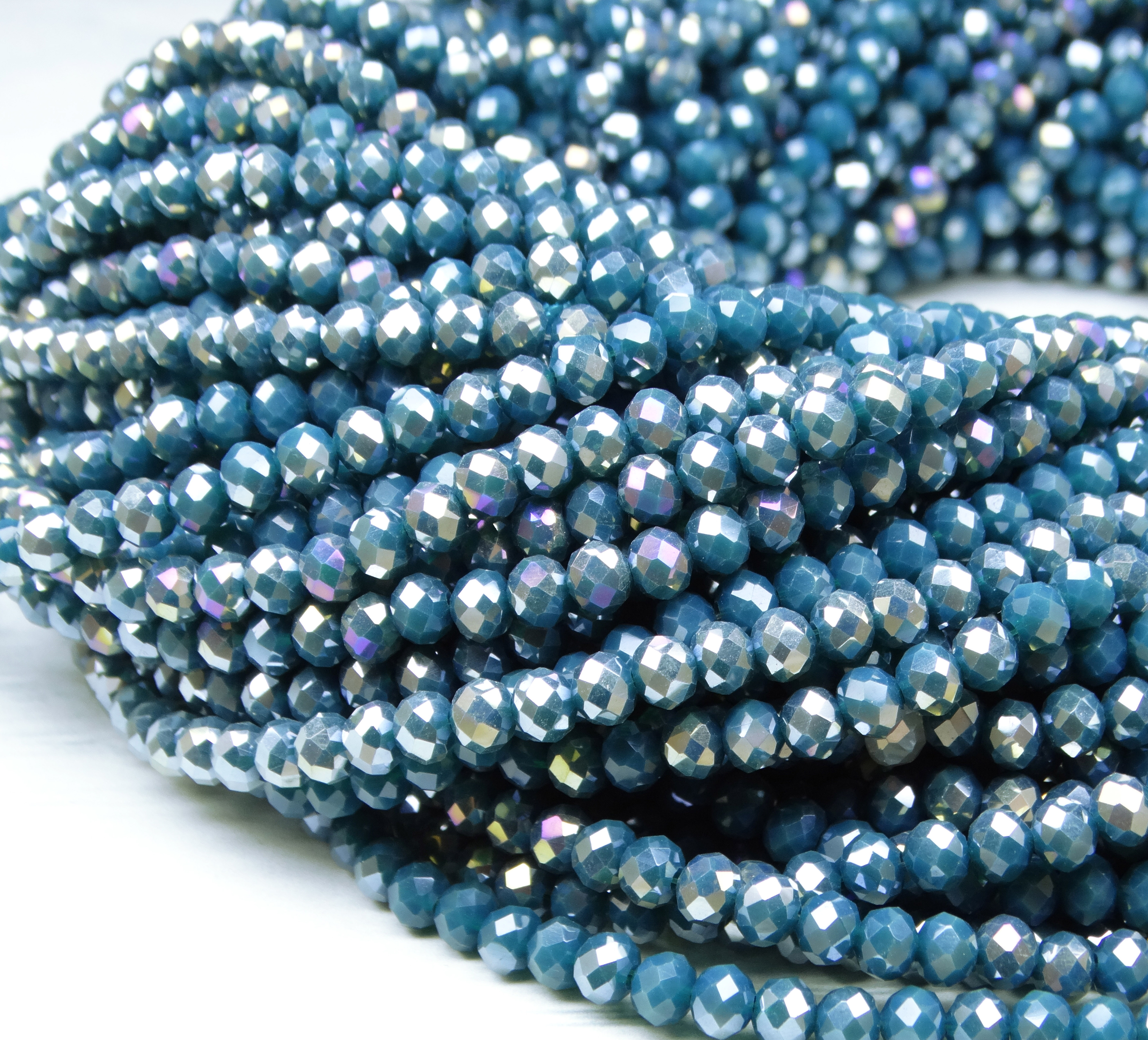 БН020ДС23 Хрустальные бусины "рондель", цвет: морская волна AB непрозр, 2х3 мм, кол-во: 95-100 шт.