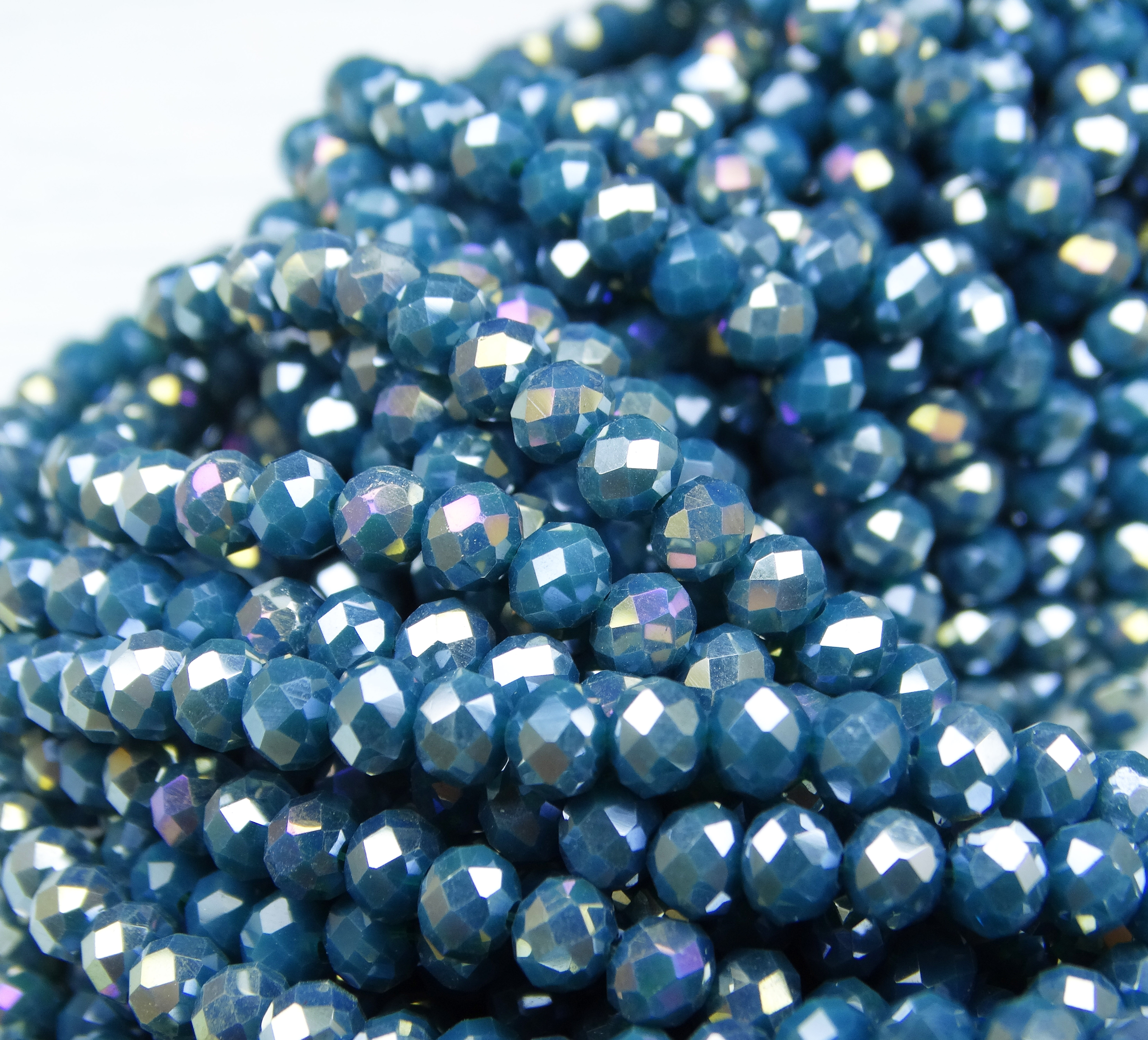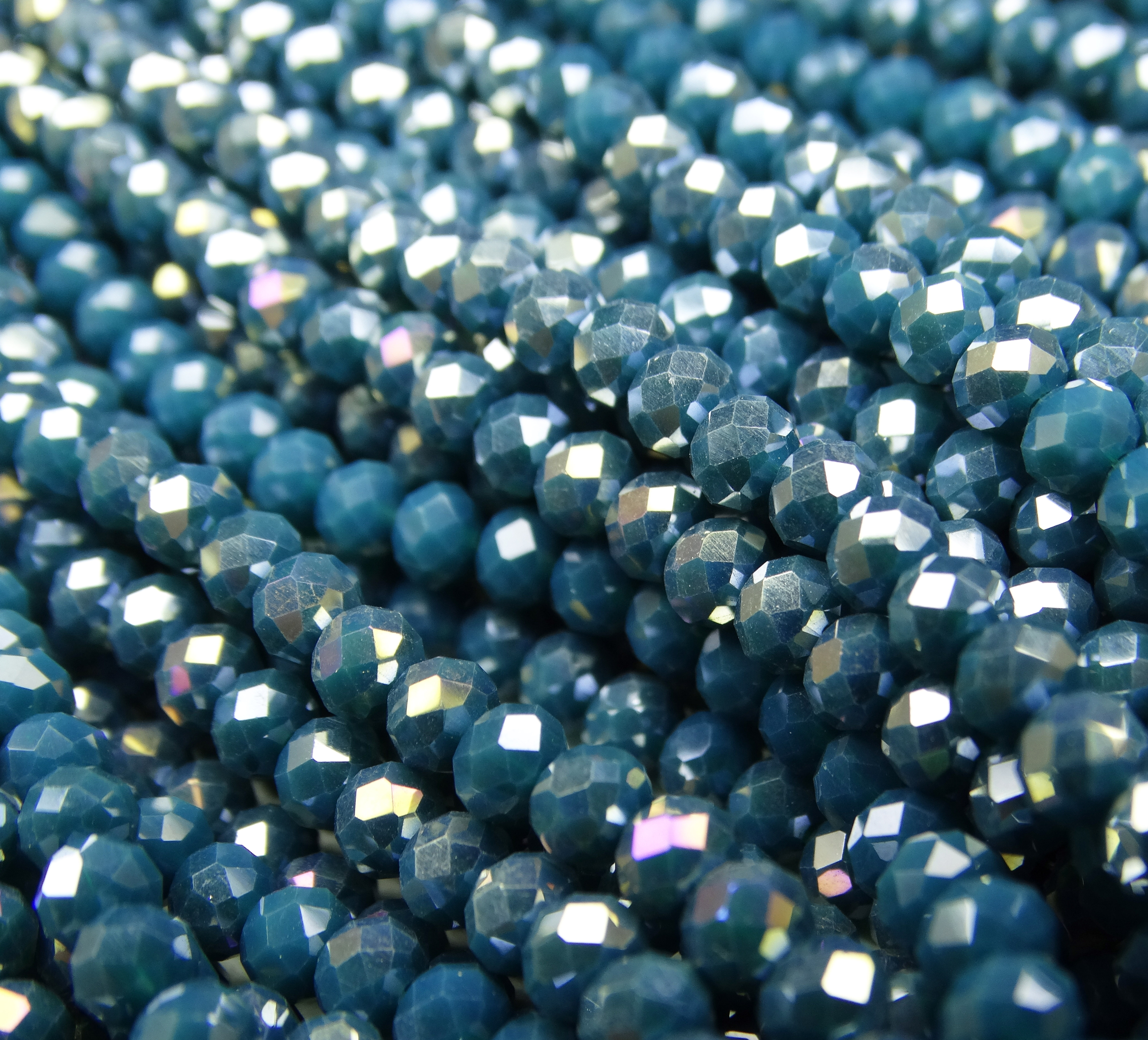 БН020ДС34 Хрустальные бусины "рондель", цвет: морская волна AB непрозр, 3х4 мм, кол-во: 95-100 шт.