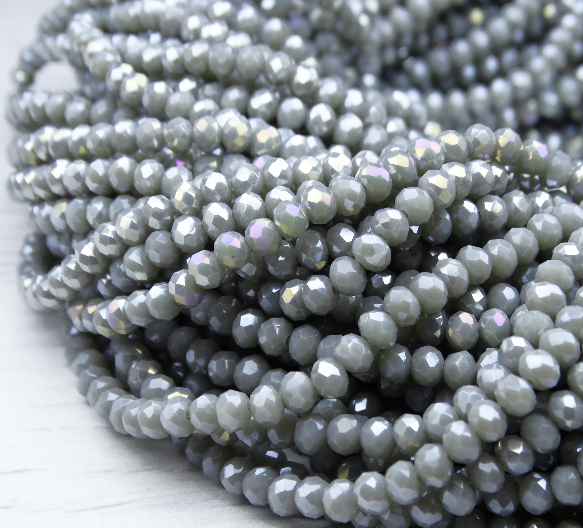 БН021ДС46 Хрустальные бусины "рондель", цвет: серый AB непрозр, 4х6 мм, кол-во: 58-60 шт.