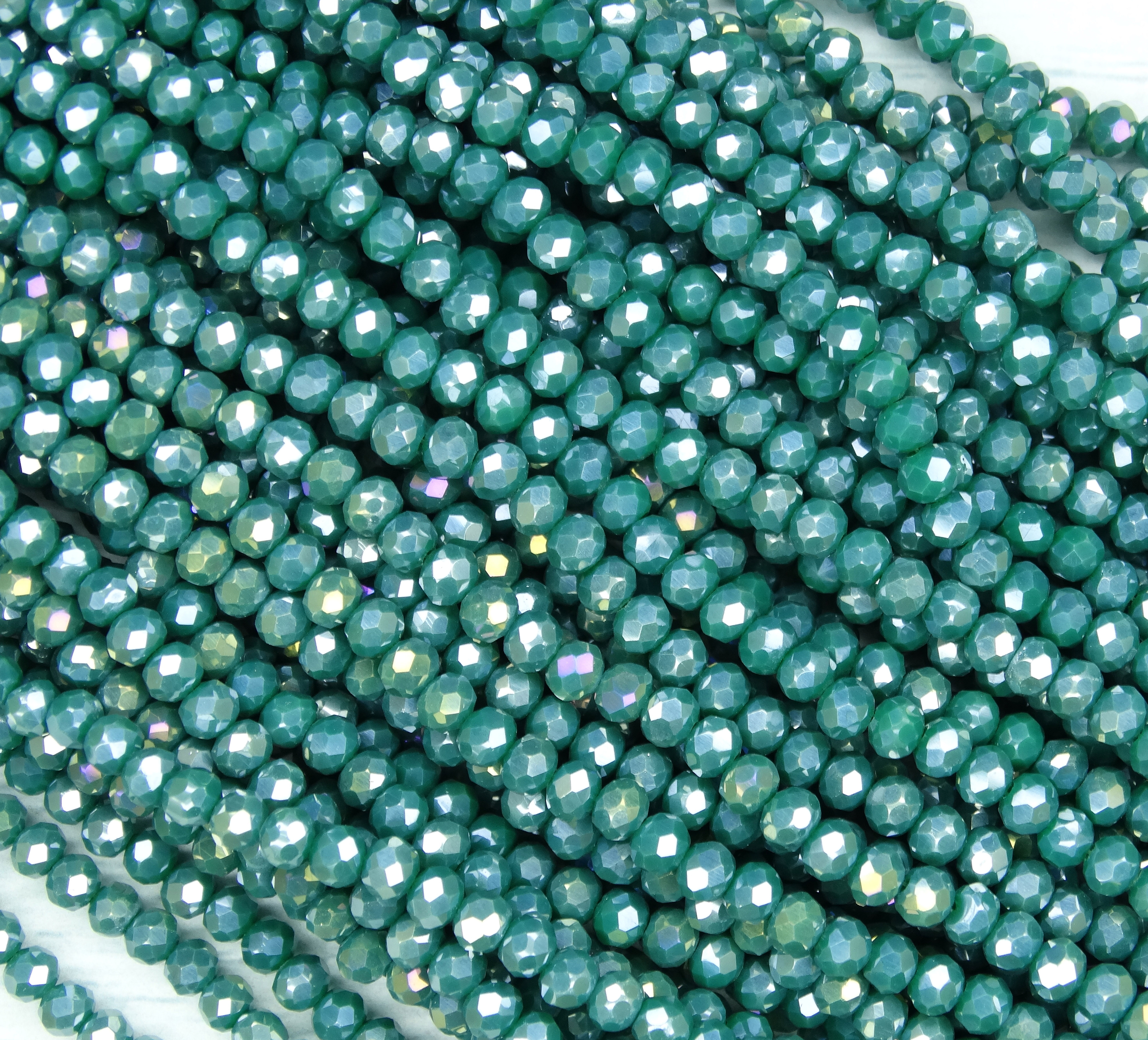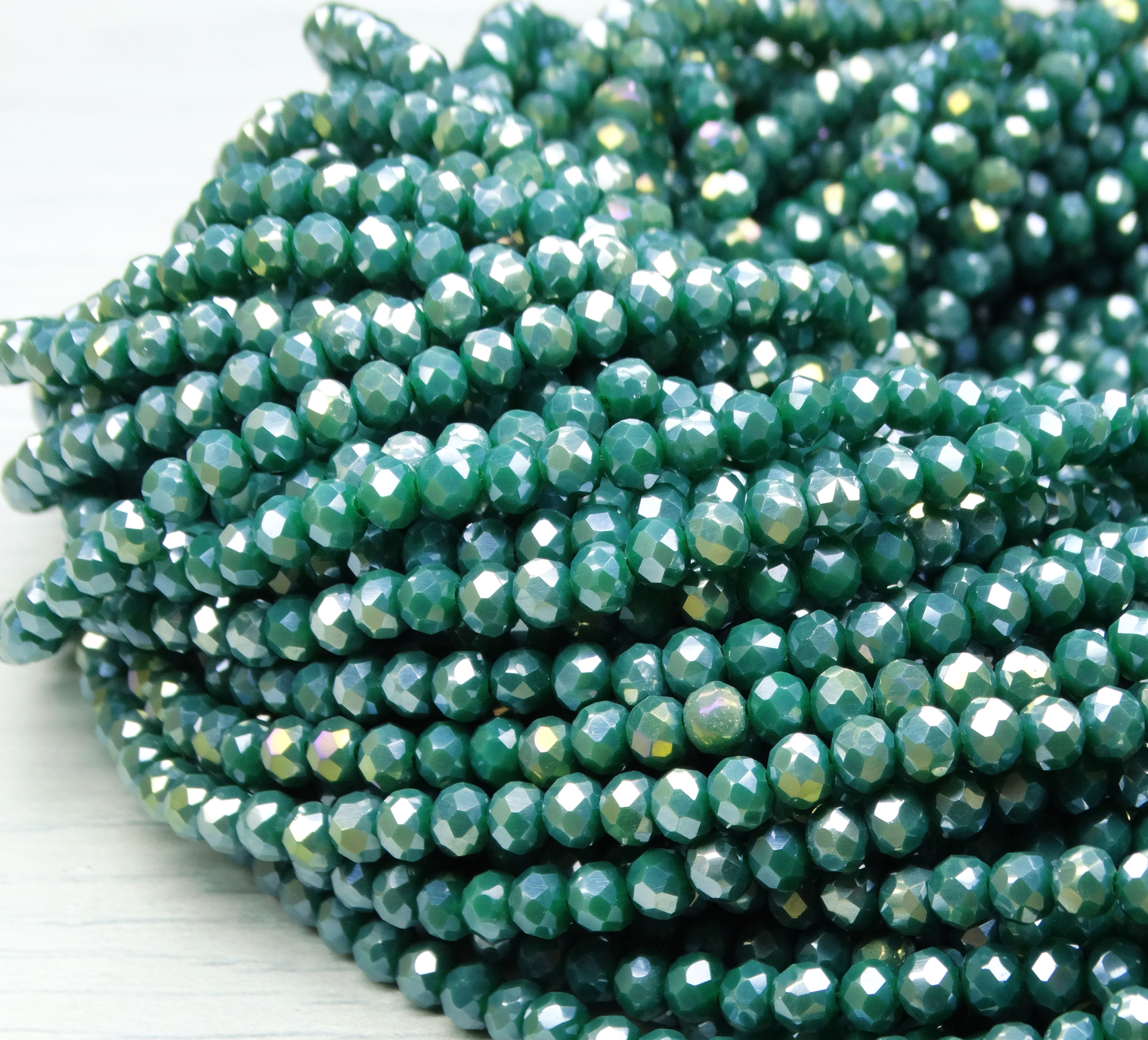 БН030ДС34 Хрустальные бусины "рондель", цвет: изумрудный AB непрозр, 3х4 мм, кол-во: 95-100 шт.