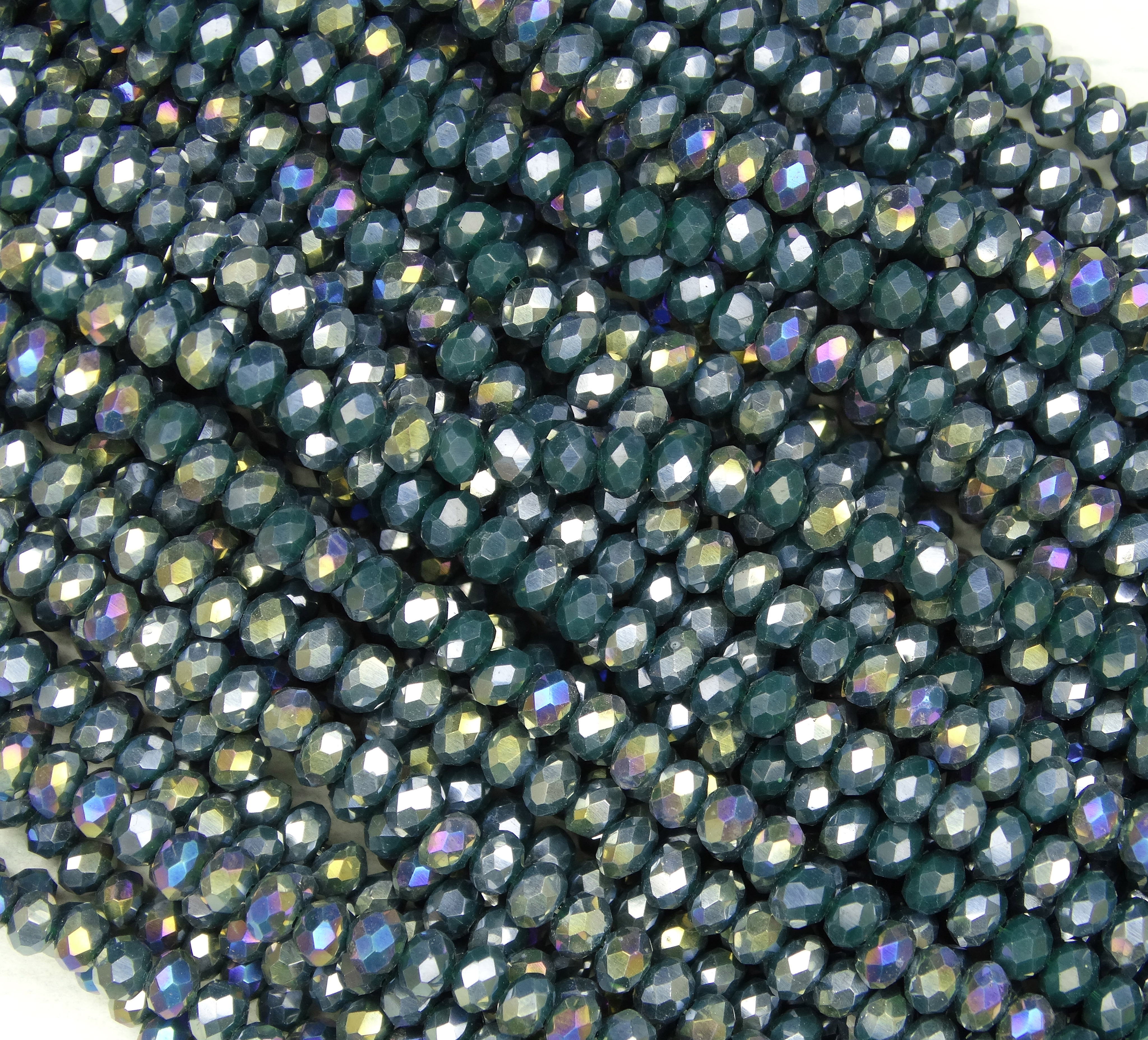 БН031ДС23 Хрустальные бусины "рондель", цвет: темно-зеленый AB непрозр, 2х3 мм, кол-во: 95-100 шт.