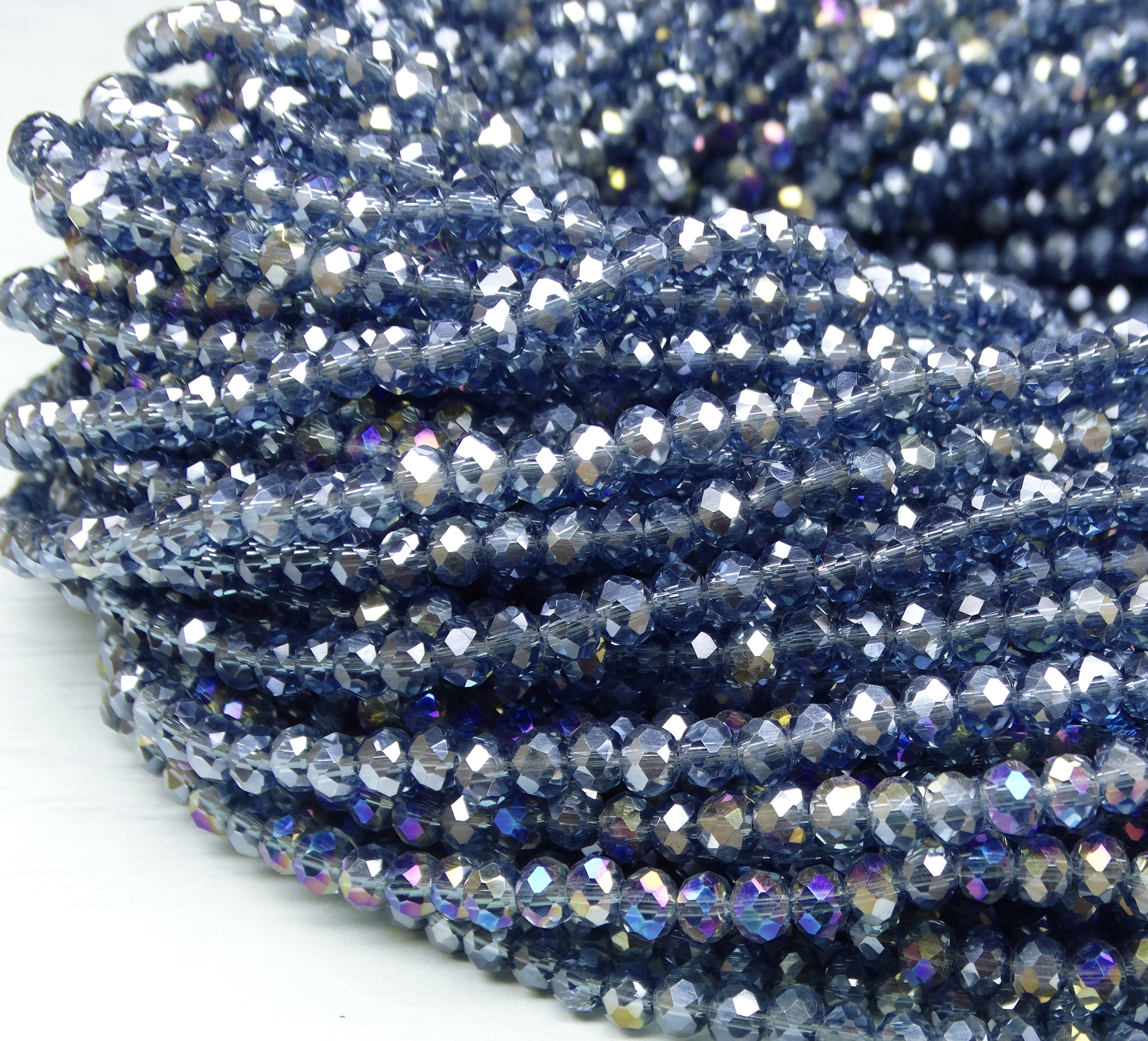 БП026ДС23 Хрустальные бусины "рондель", полуночный синий AB прозрачный, 2х3 мм, кол-во: 95-100 шт.