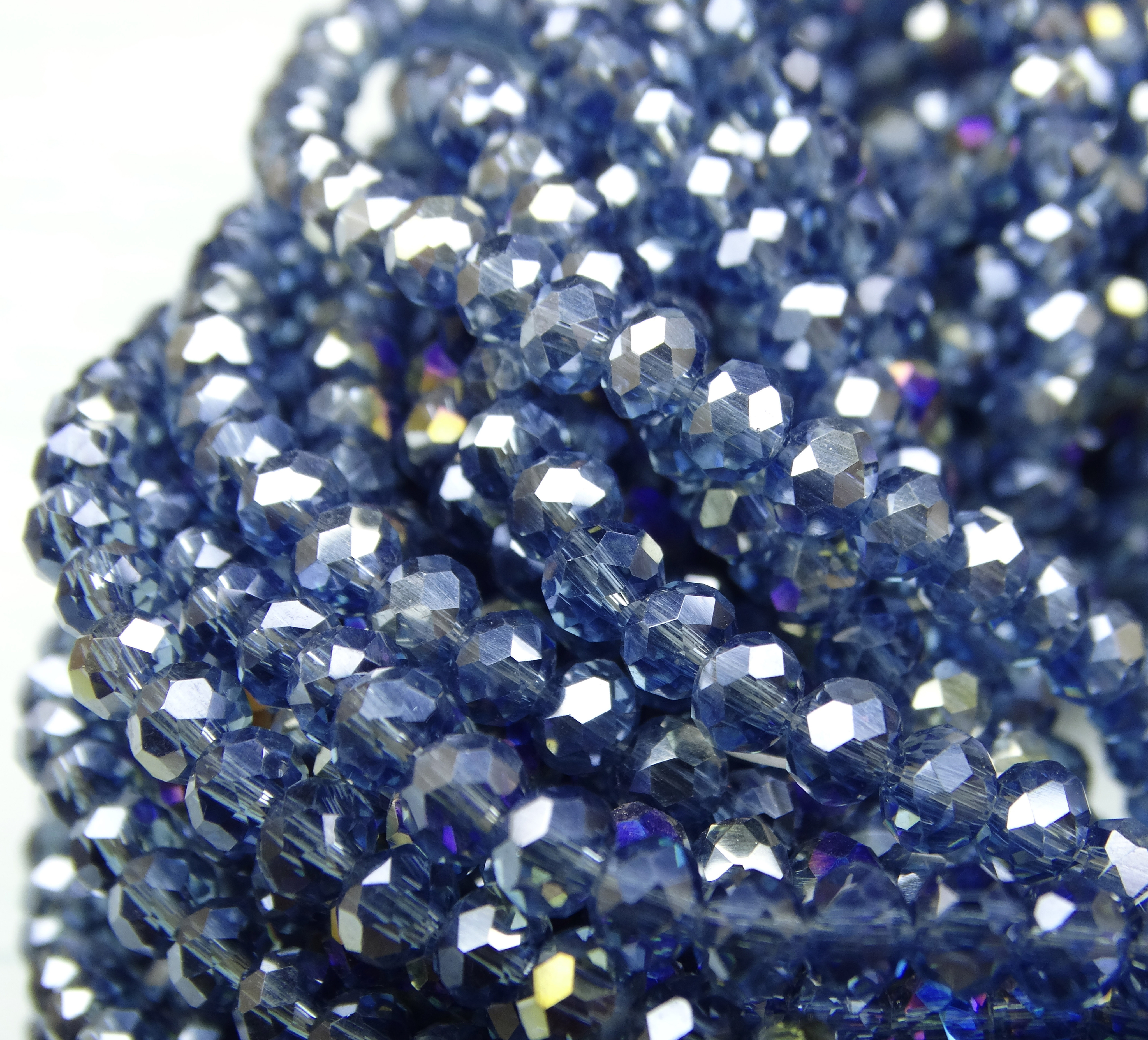 БП026ДС46 Хрустальные бусины "рондель", полуночный синий AB прозрачный, 4х6 мм, кол-во: 58-60 шт.