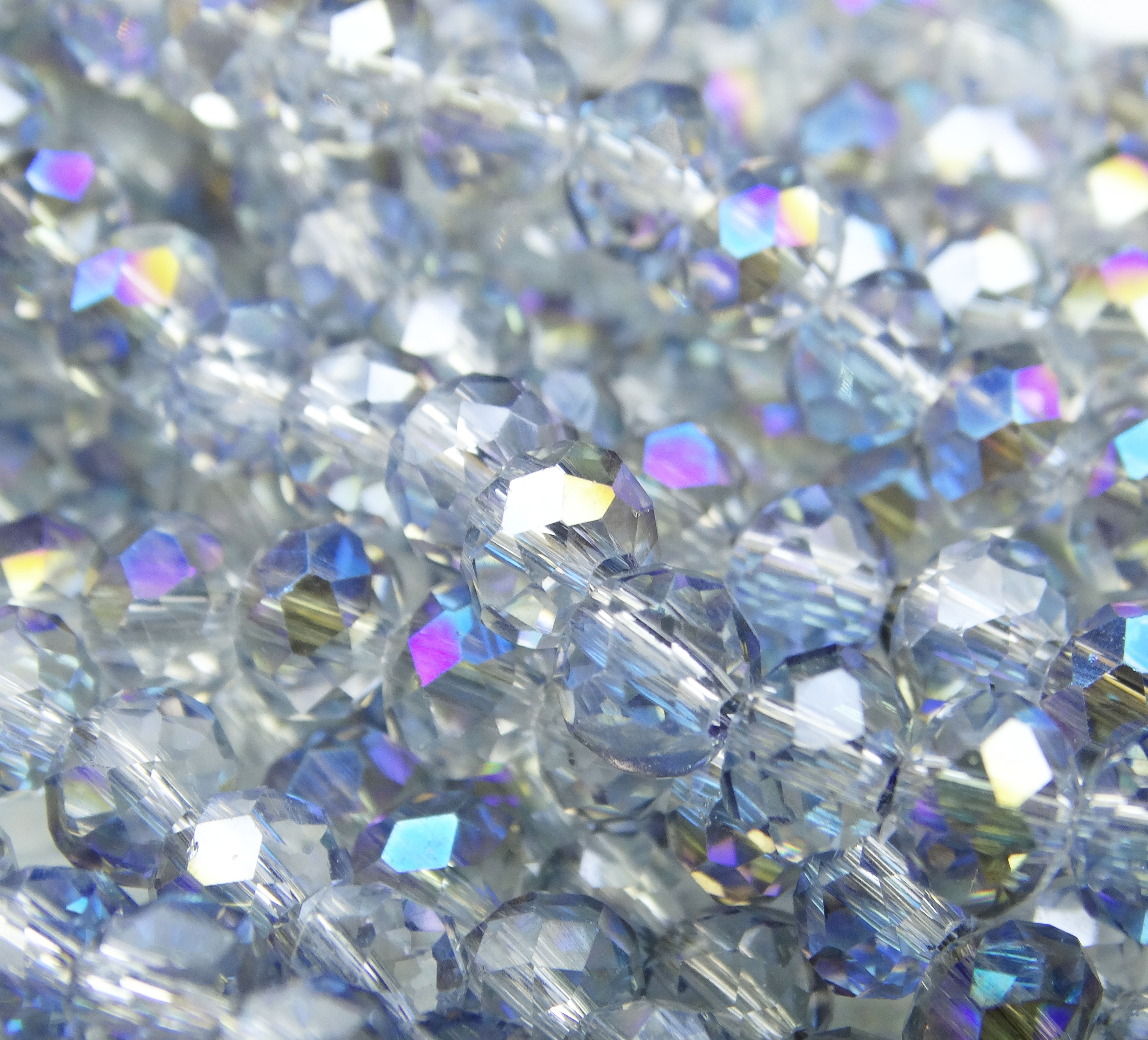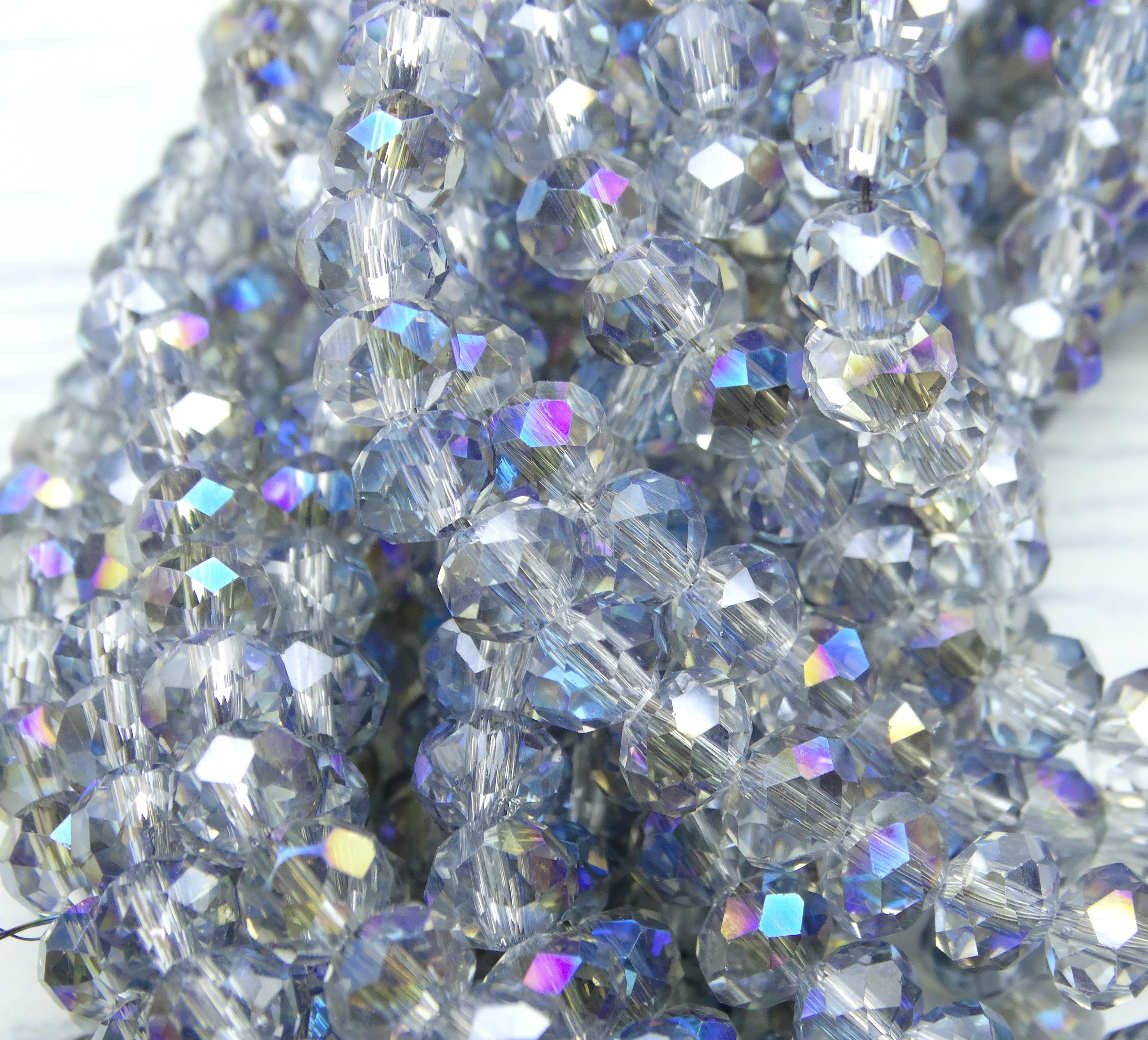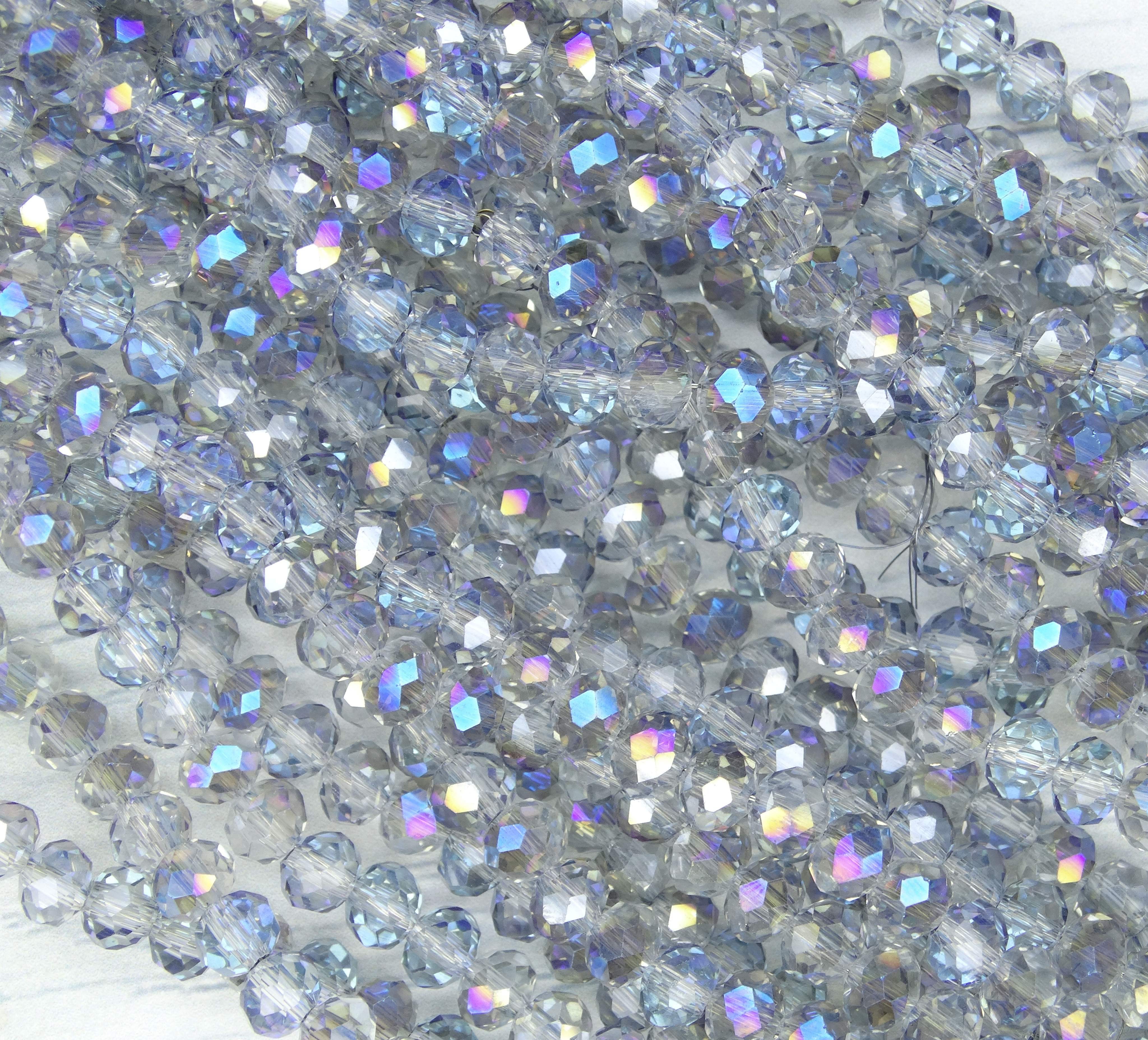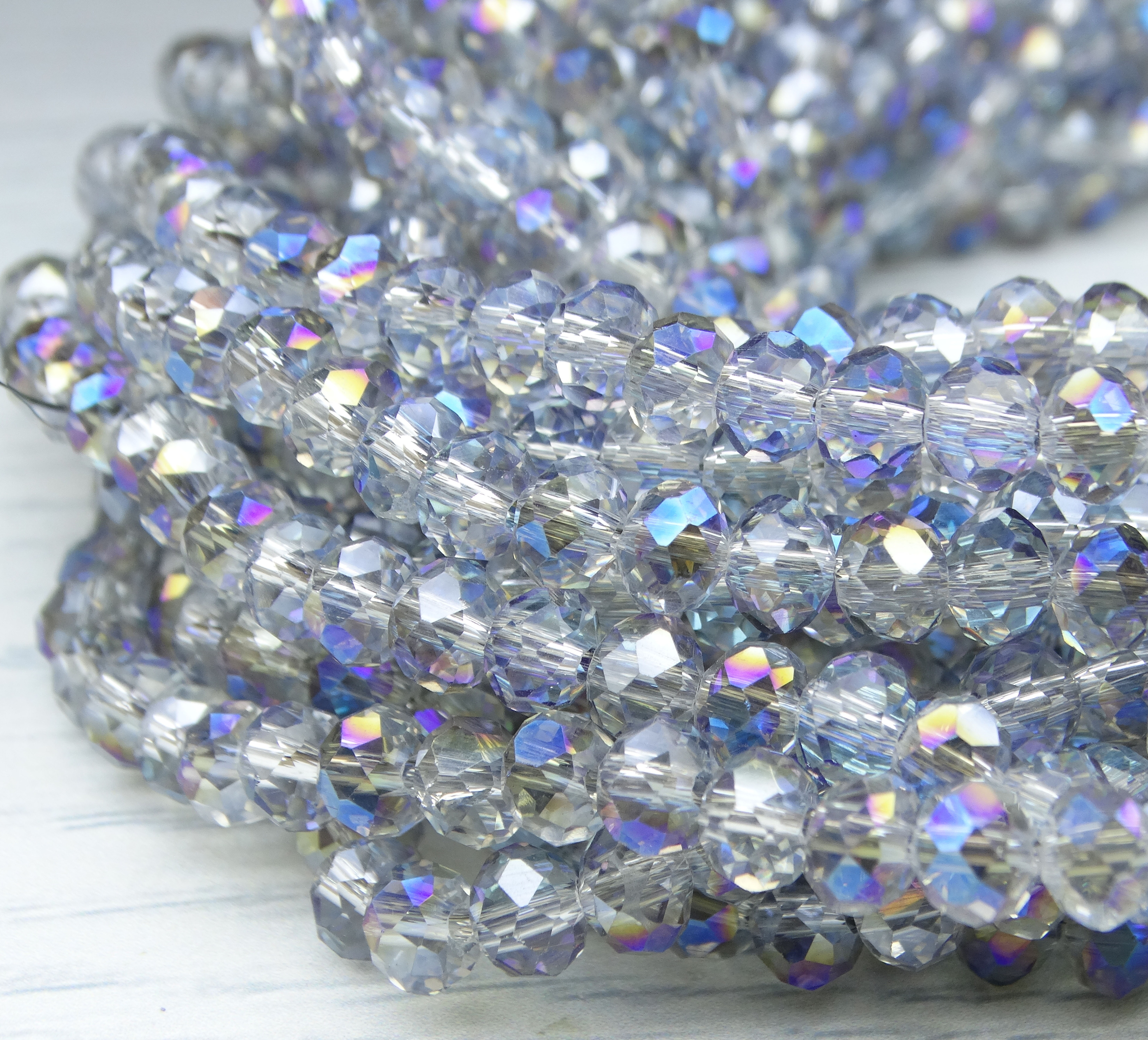 БП029ДС68 Хрустальные бусины "рондель", цвет: серый с цв. AB прозрач., 6х8 мм, кол-во: 39-40 шт.