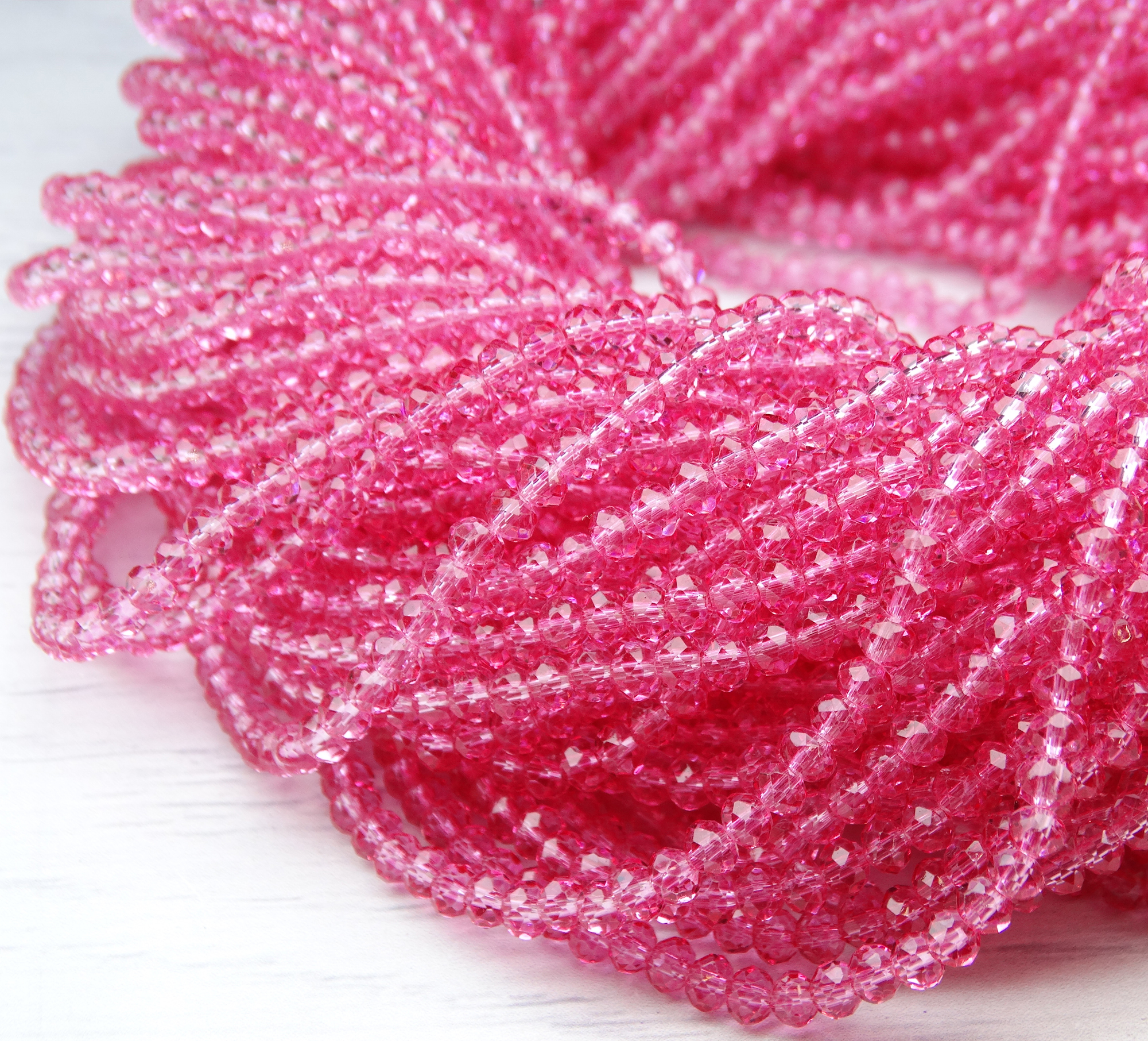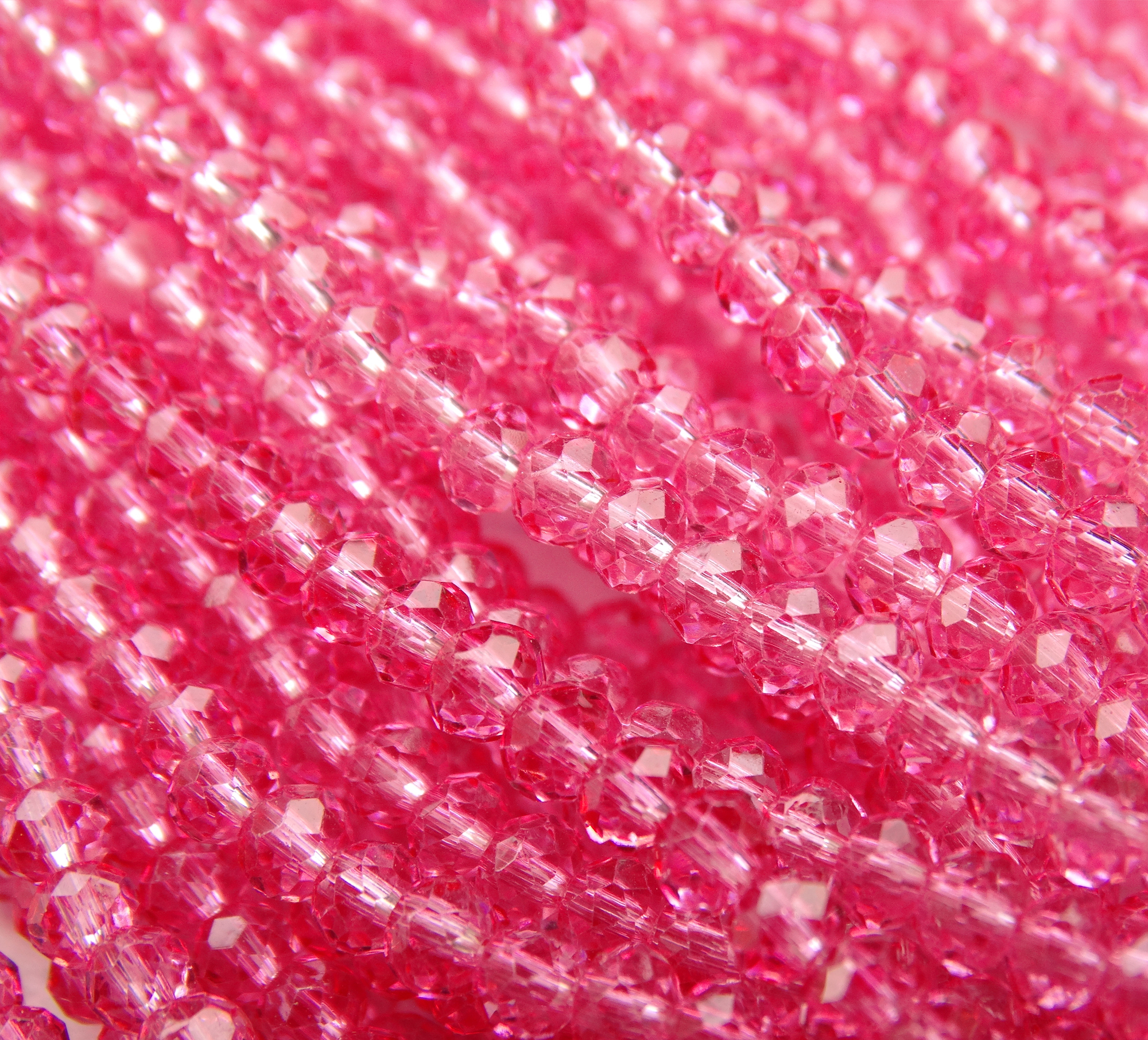 БП044НН23 Хрустальные бусины "рондель", цвет: арбузный розовый прозр., 2х3 мм, кол-во: 95-100 шт.