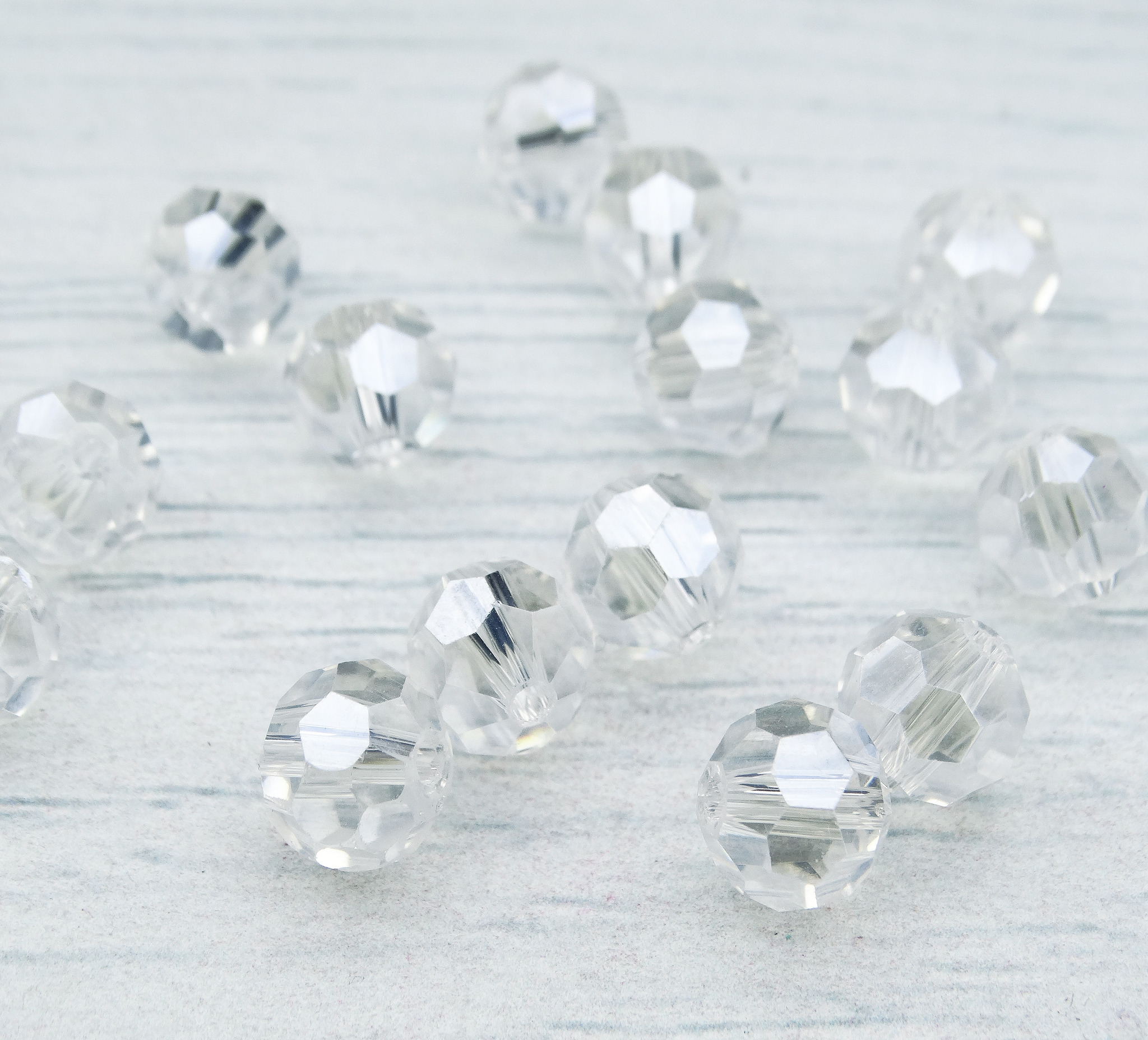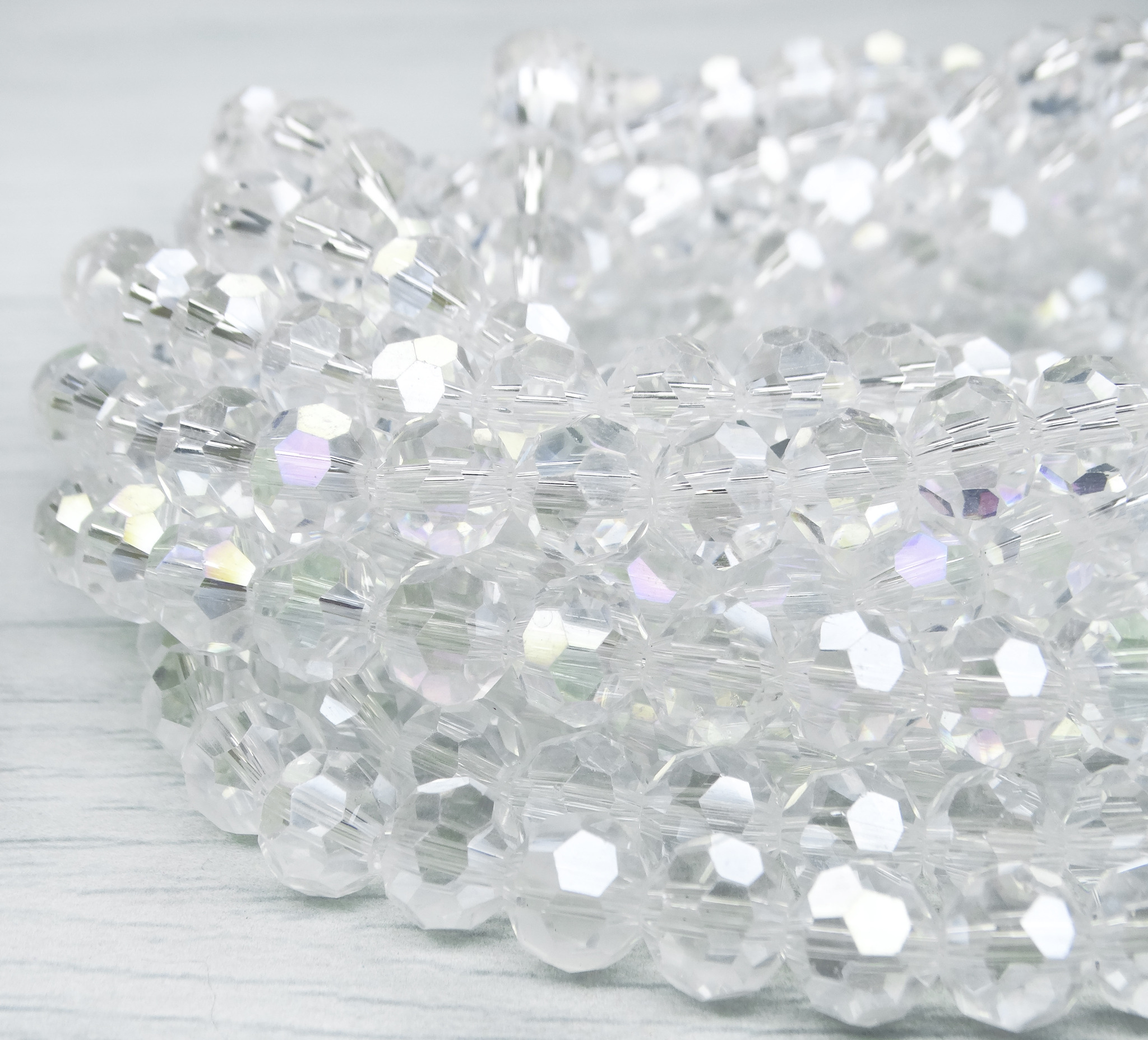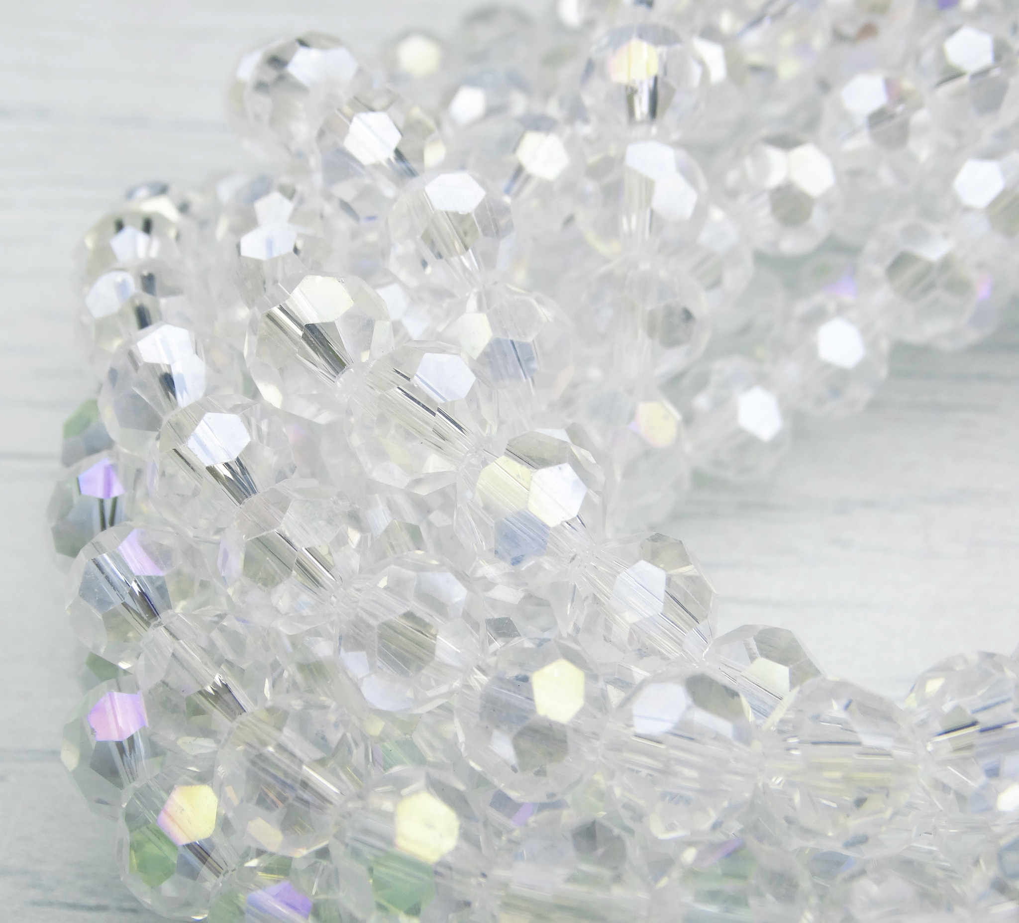 БШ001ДС8-1 Хрустальные бусины "32 грани", цвет: белый AB прозрачный, размер 8 мм, кол-во: 35 шт.