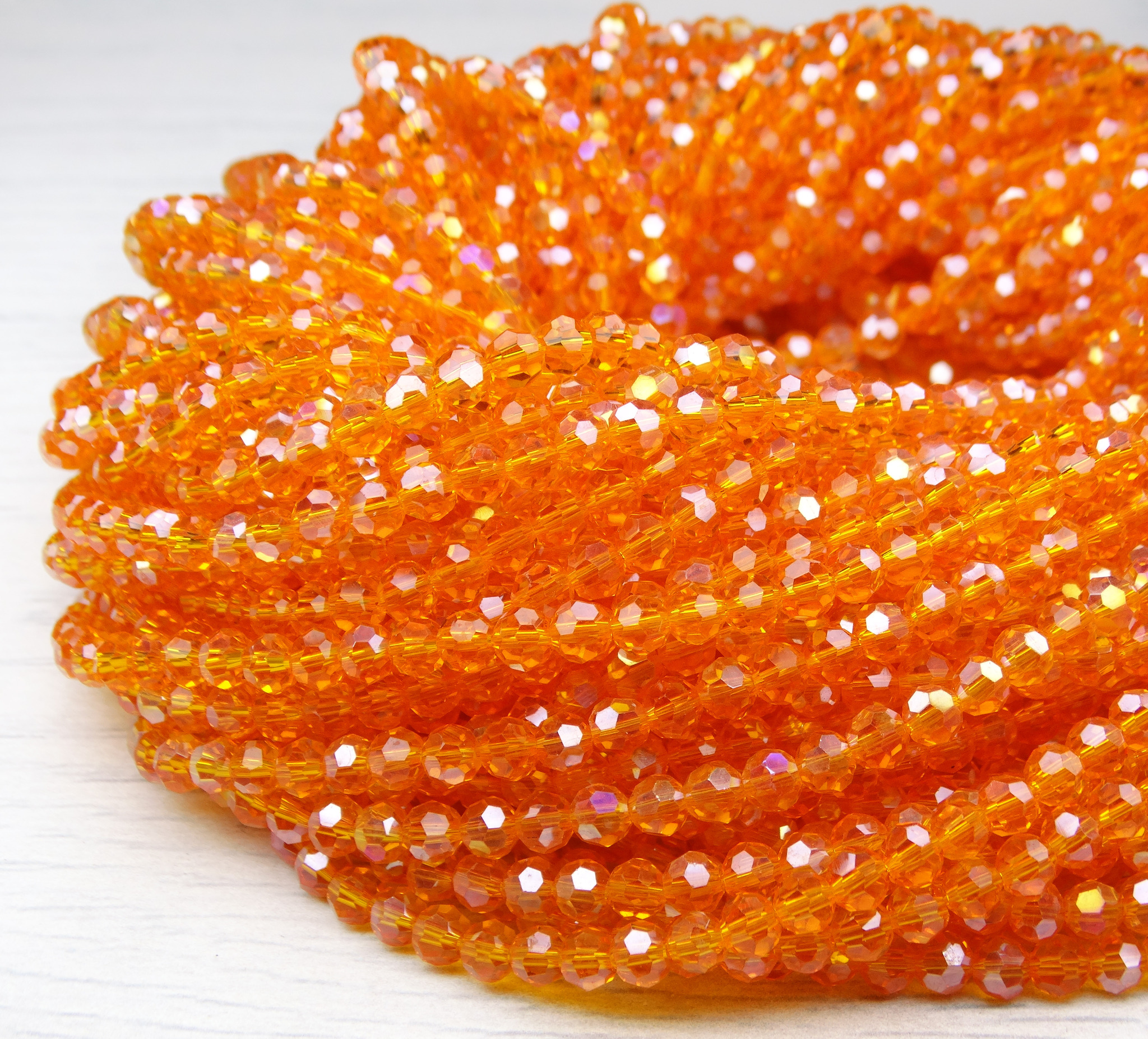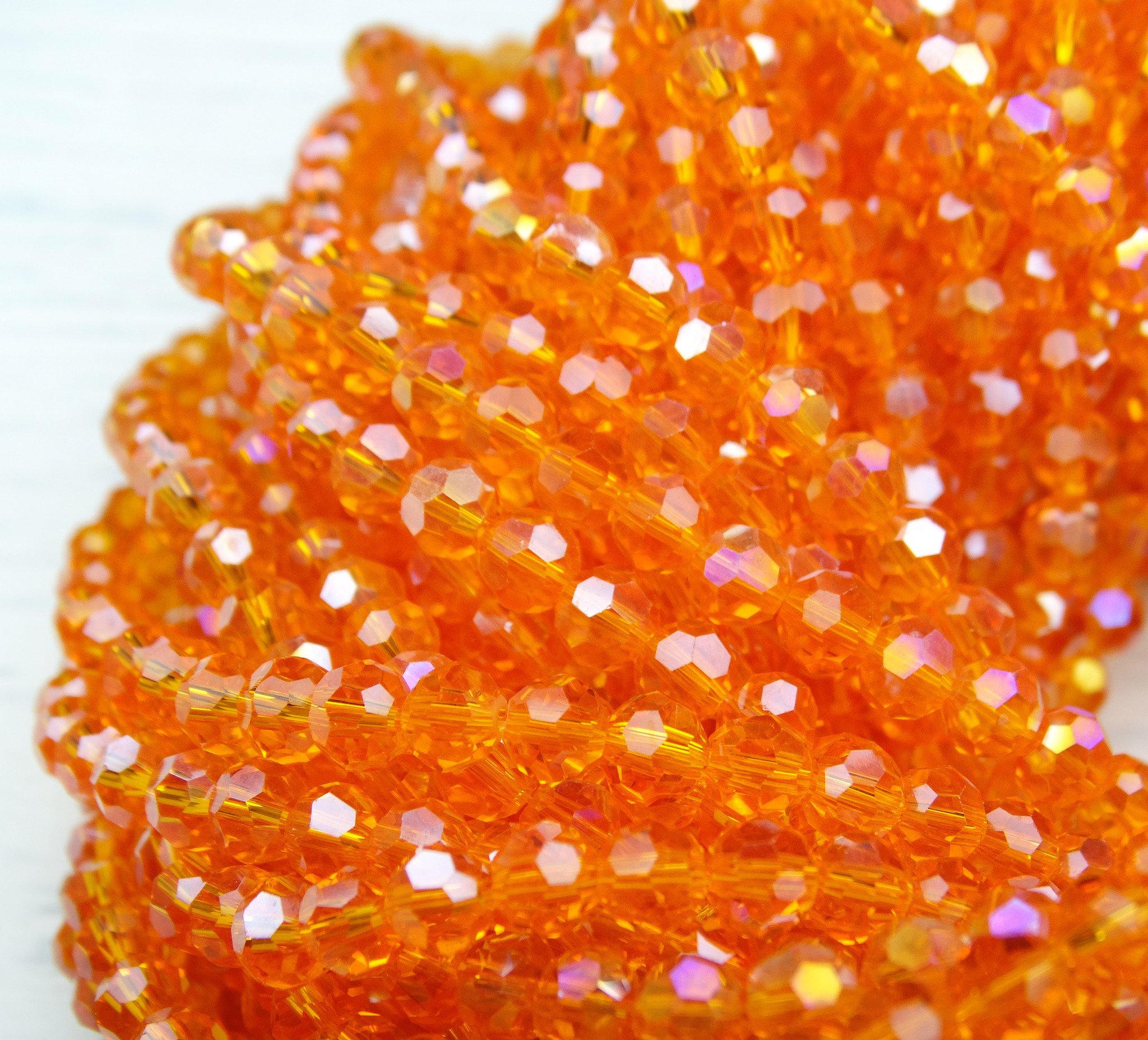 БШ007ДС4 Хрустальные бусины "32 грани", цвет: оранжевый AB прозрачный, 4 мм, кол-во: 95-100 шт.