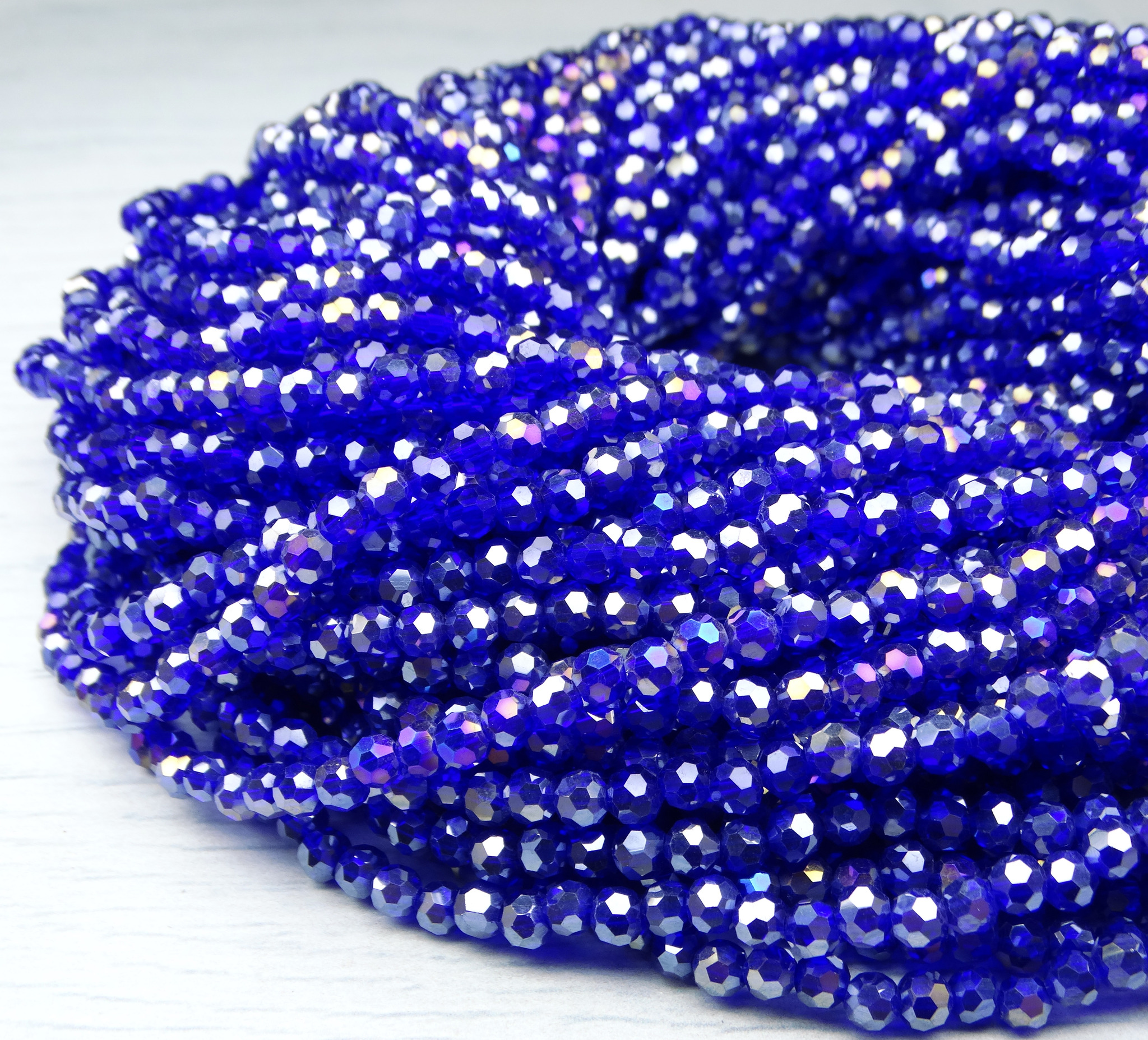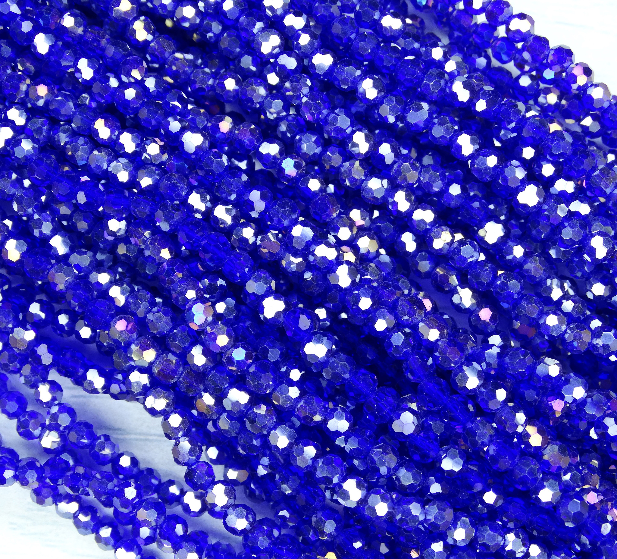 БШ019ДС4 Хрустальные бусины "32 грани", цвет: синий AB прозрачный, 4 мм, кол-во: 95-100 шт.
