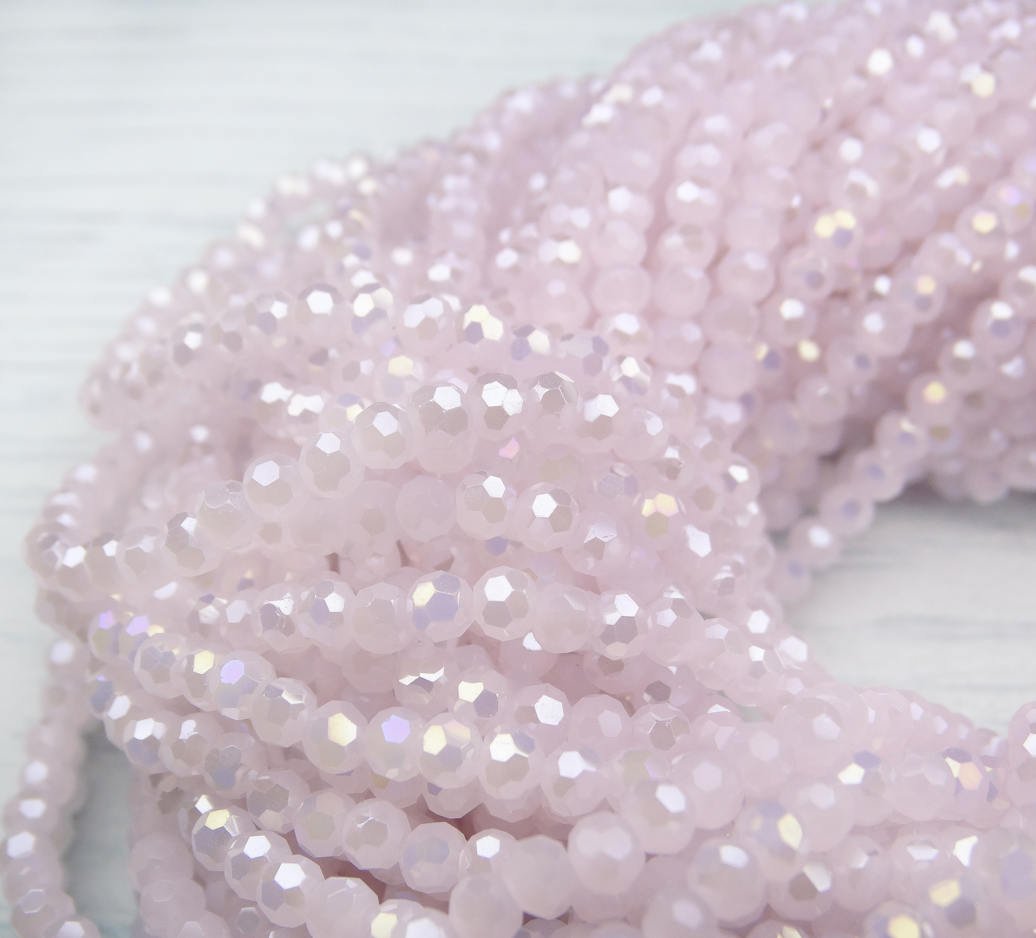 БШМ003ДС3 Хрустальные бусины "32 грани", цвет: розовый матовый AB, 3 мм, кол-во: 95-100 шт.