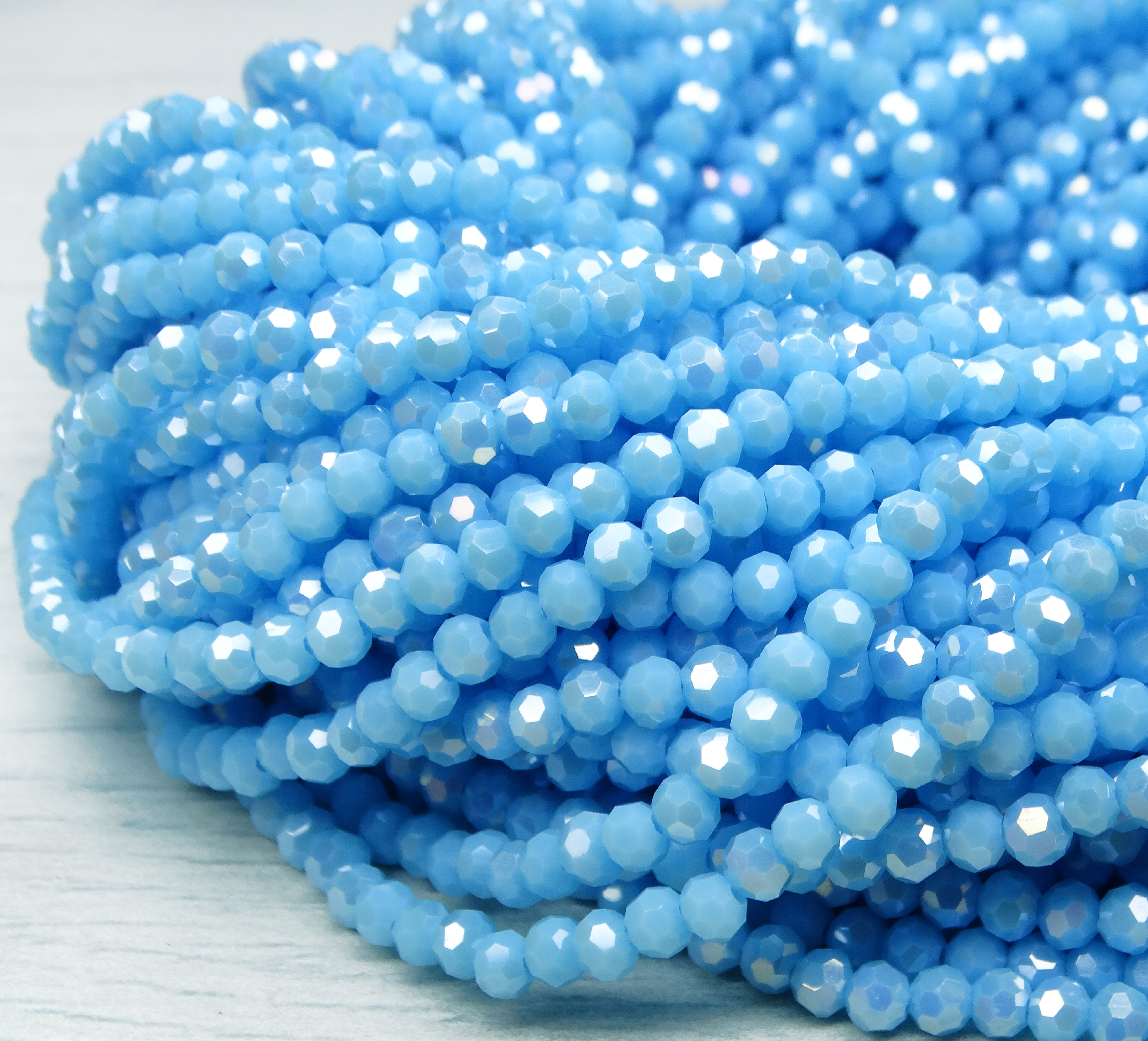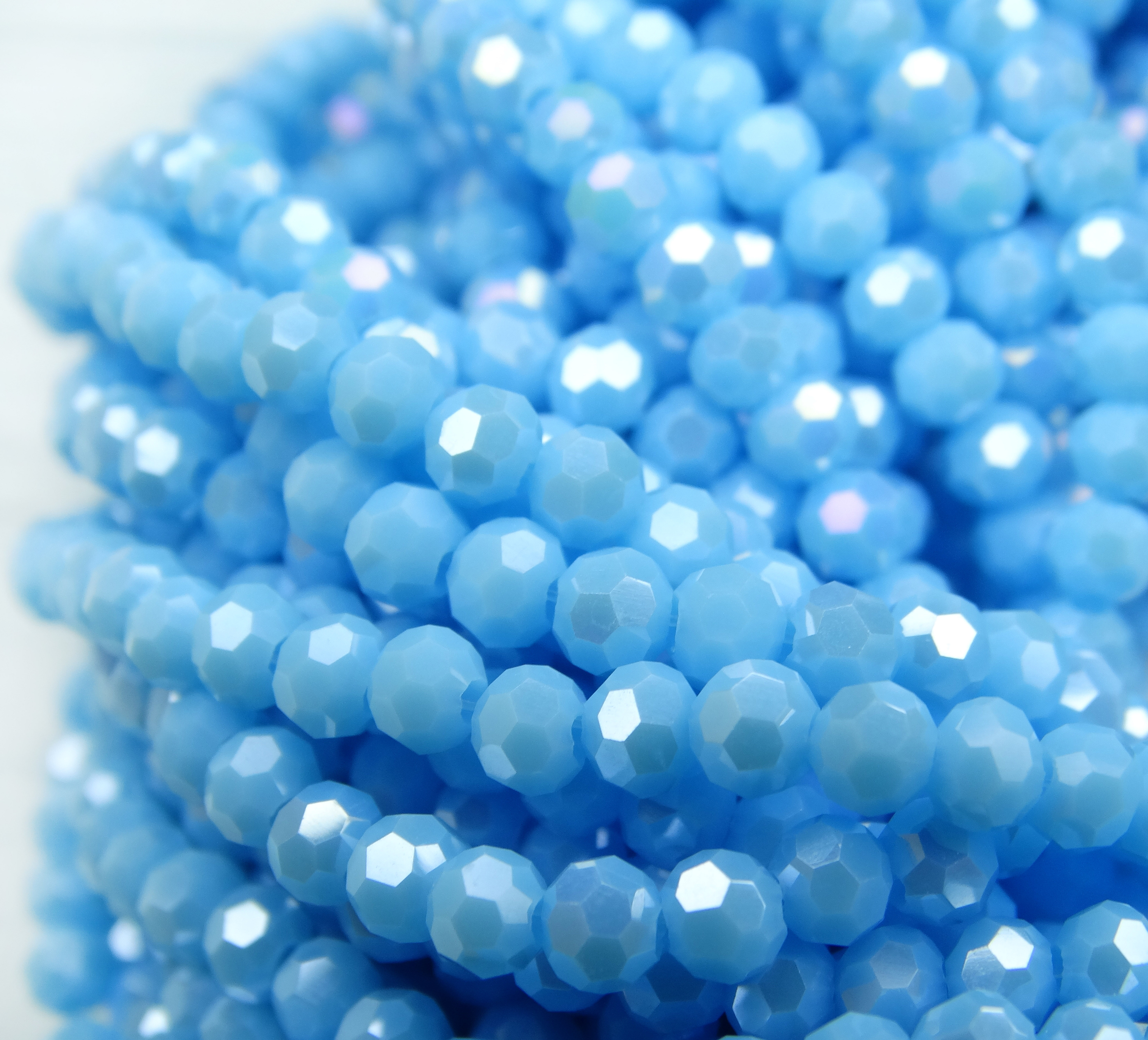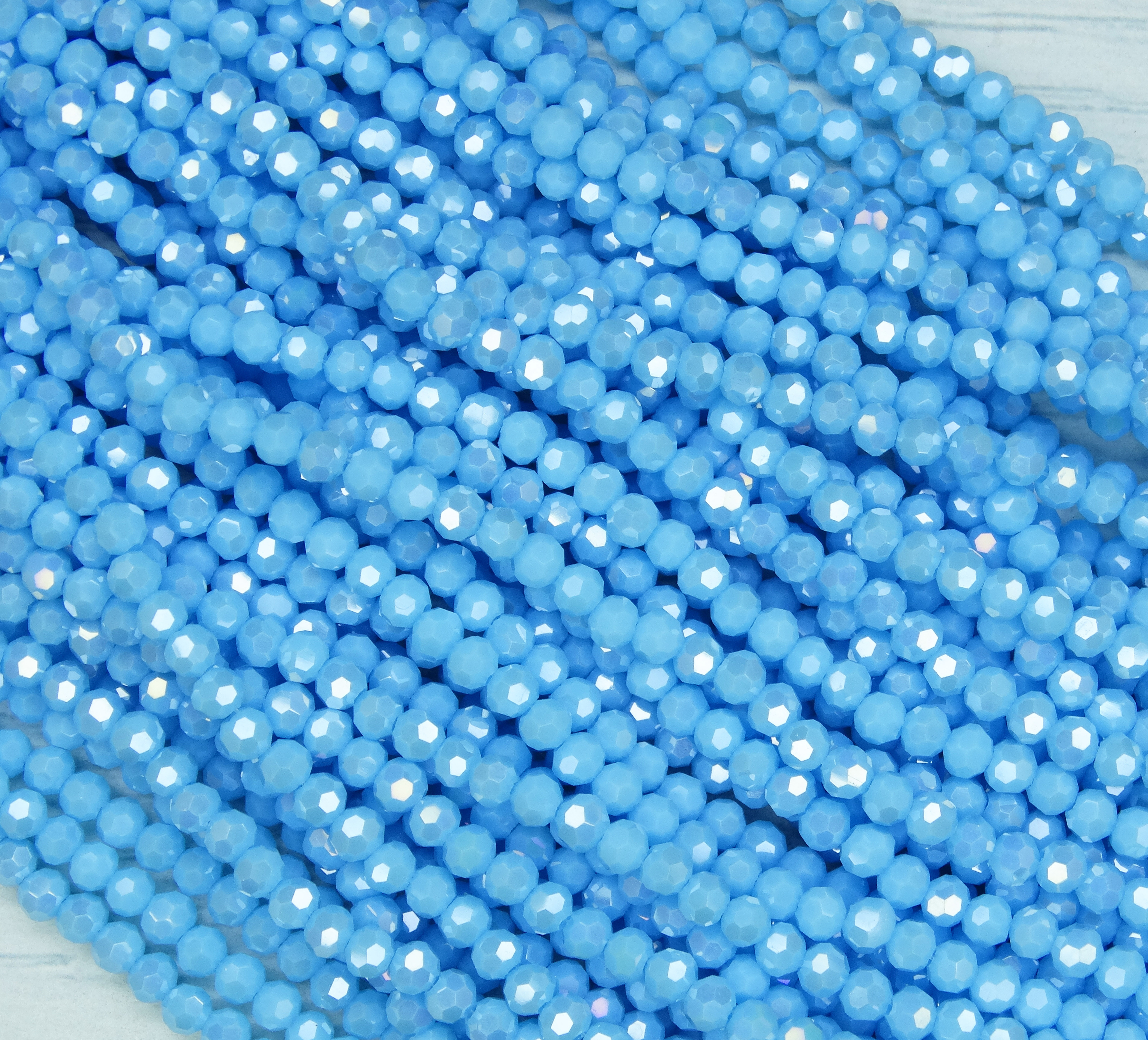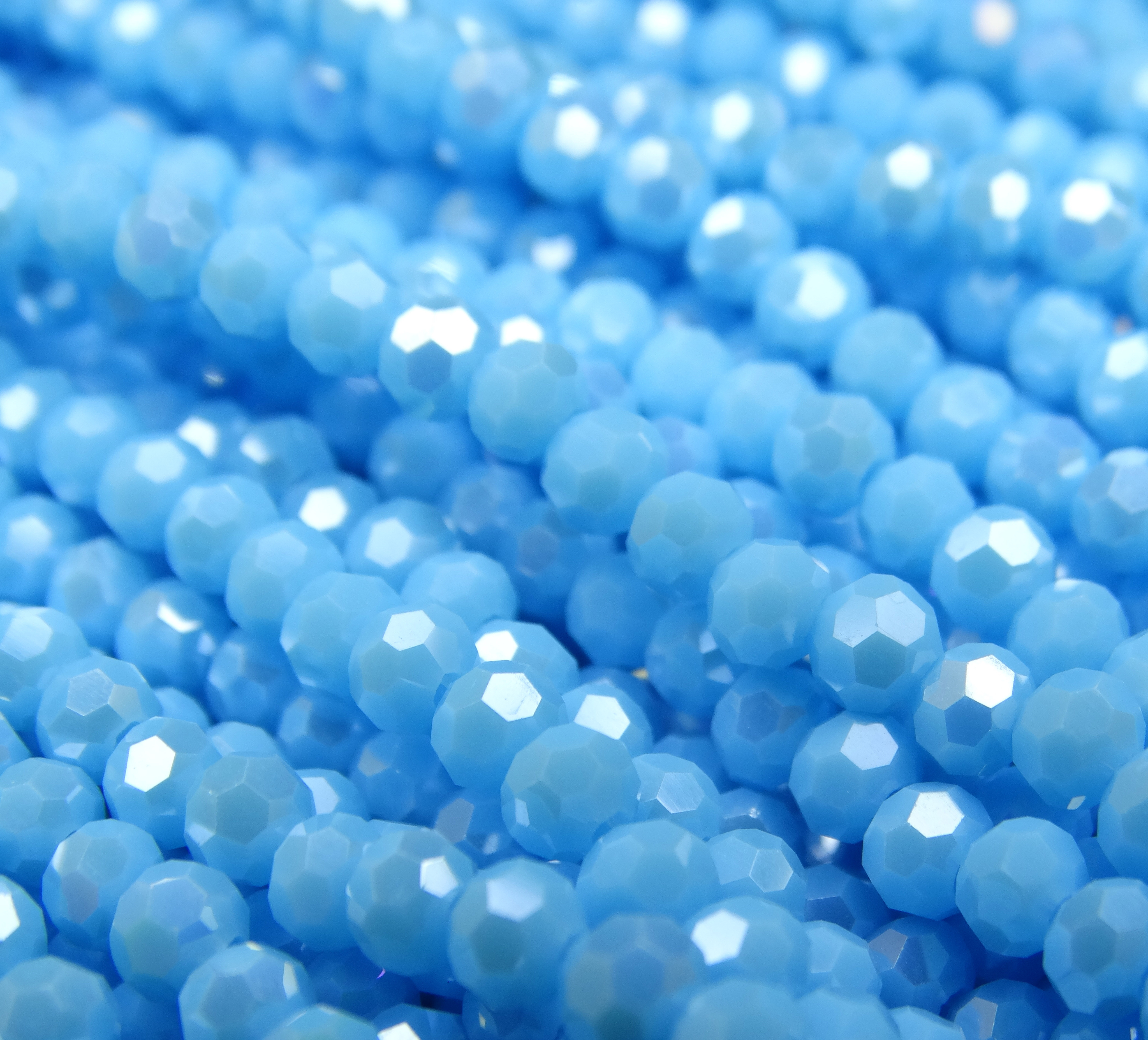БШН019ДС4 Хрустальные бусины "32 грани", ярко-голубой AB непрозрачный, 4 мм, кол-во: 95-100 шт.