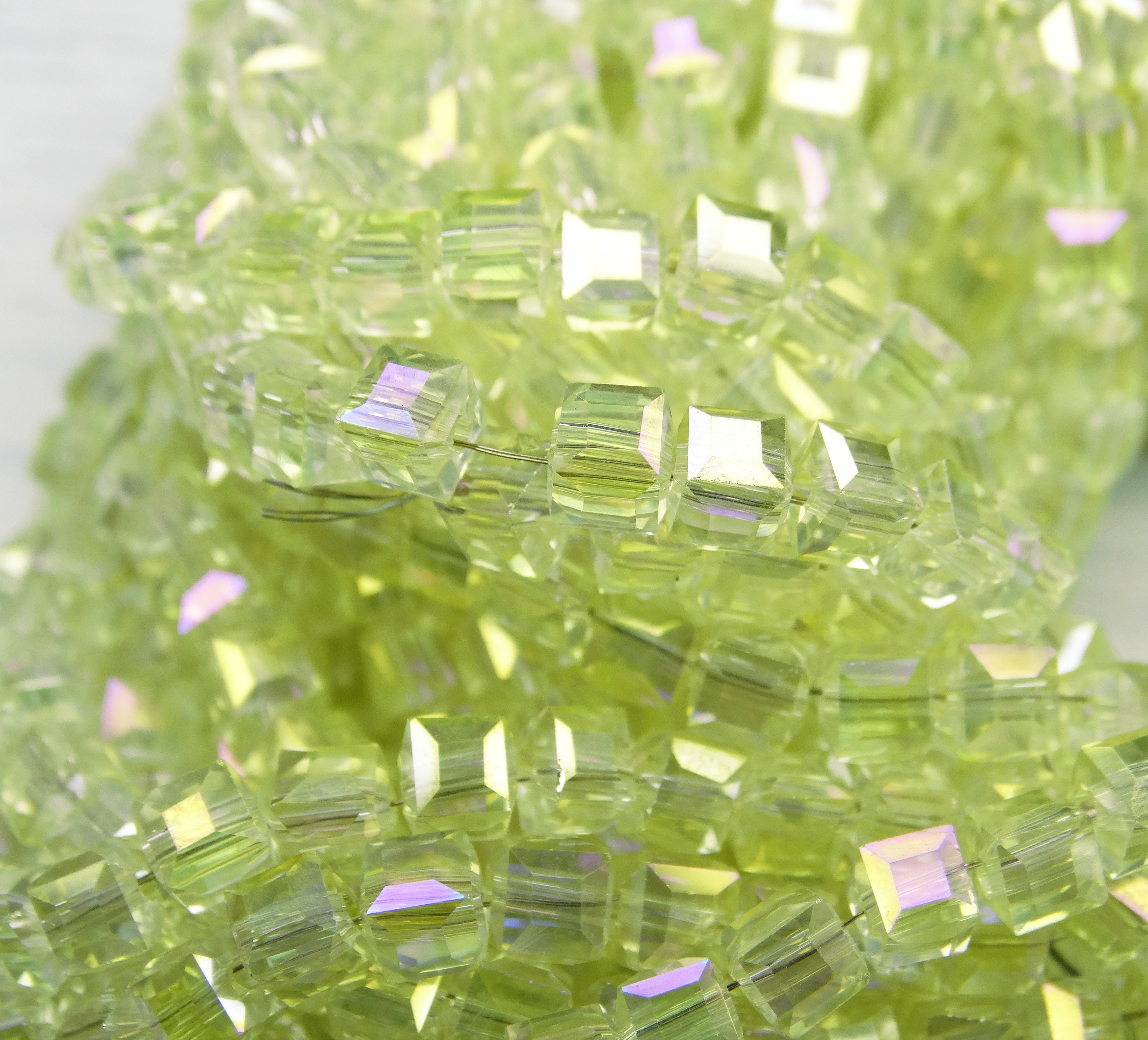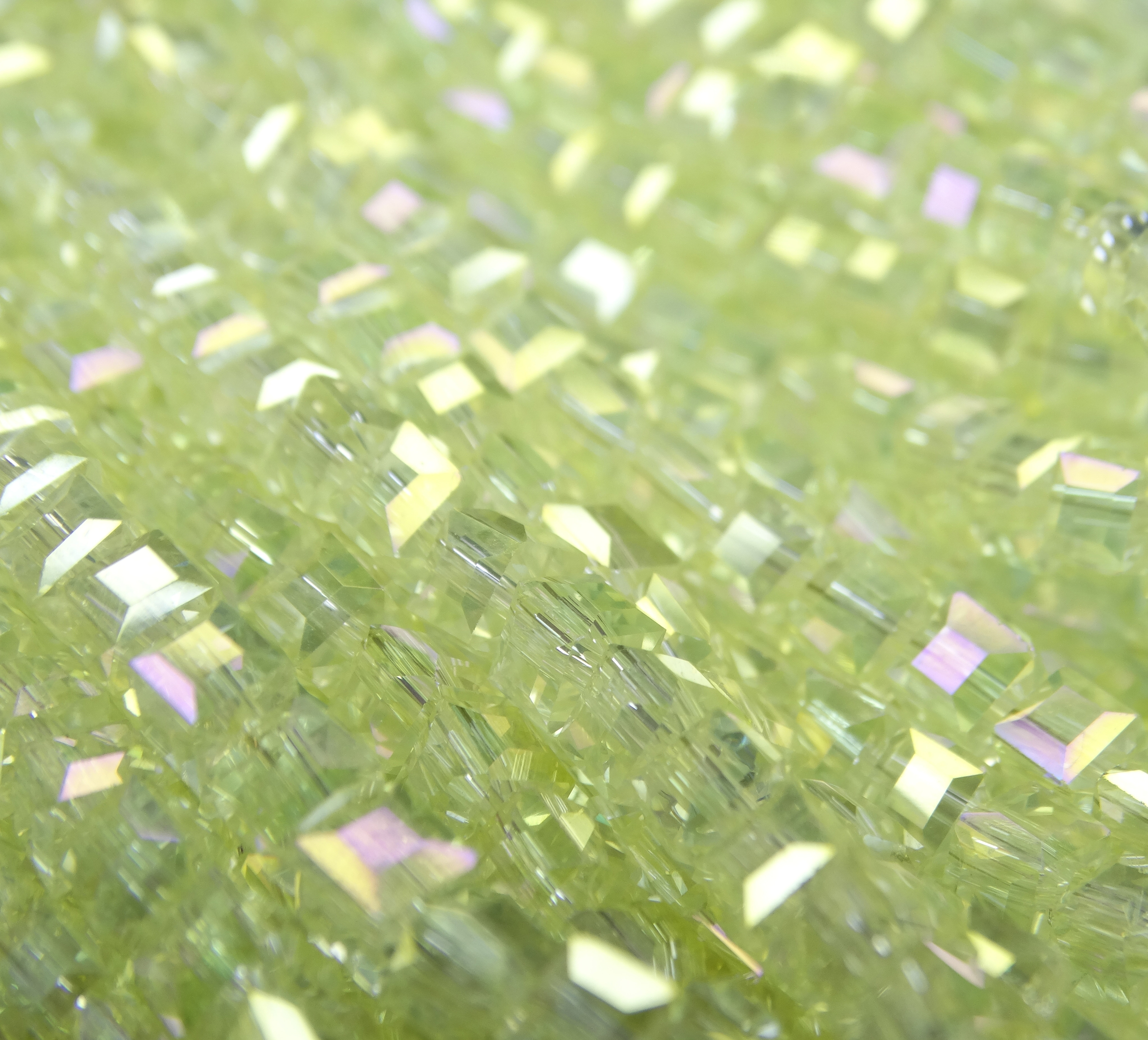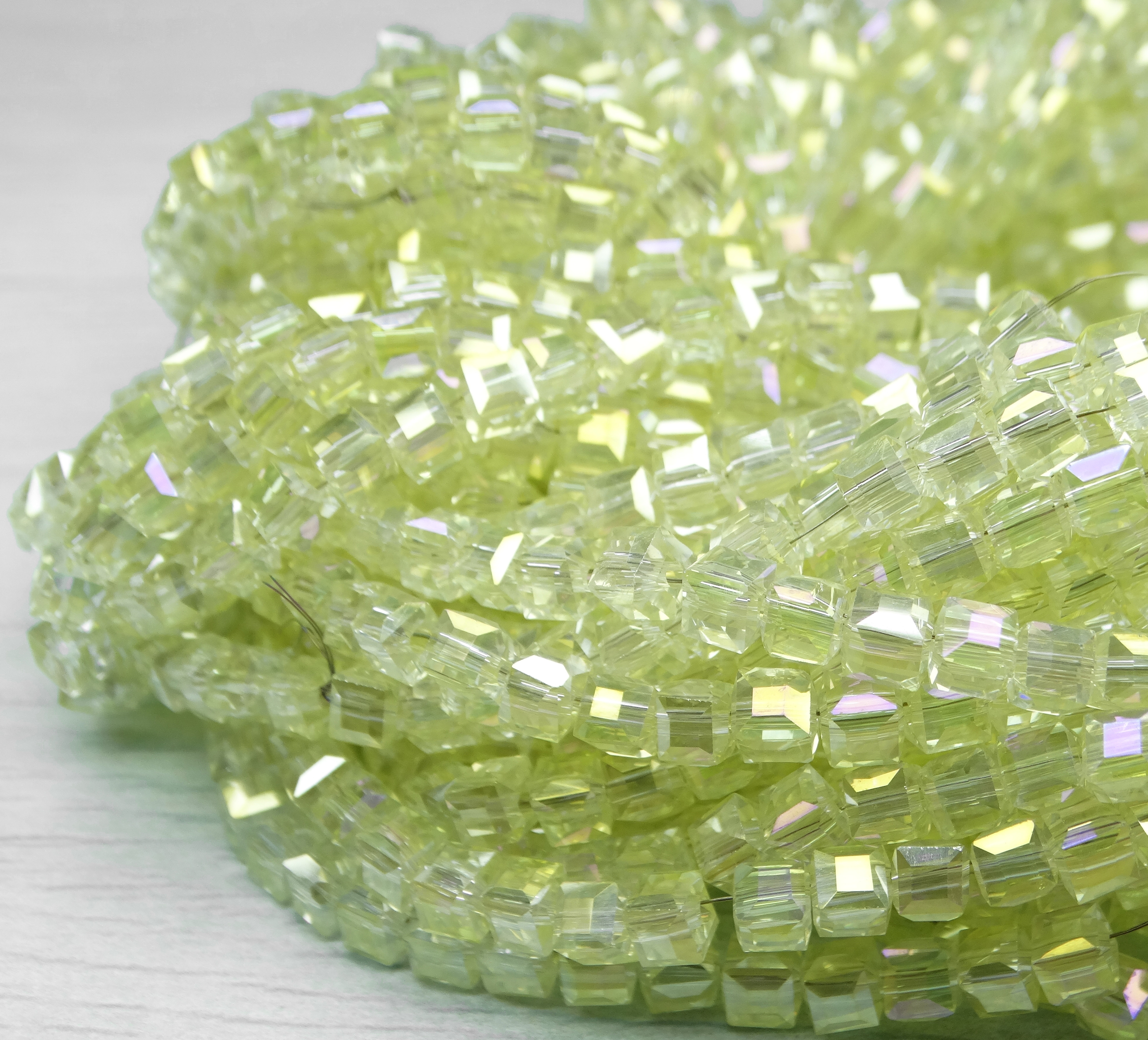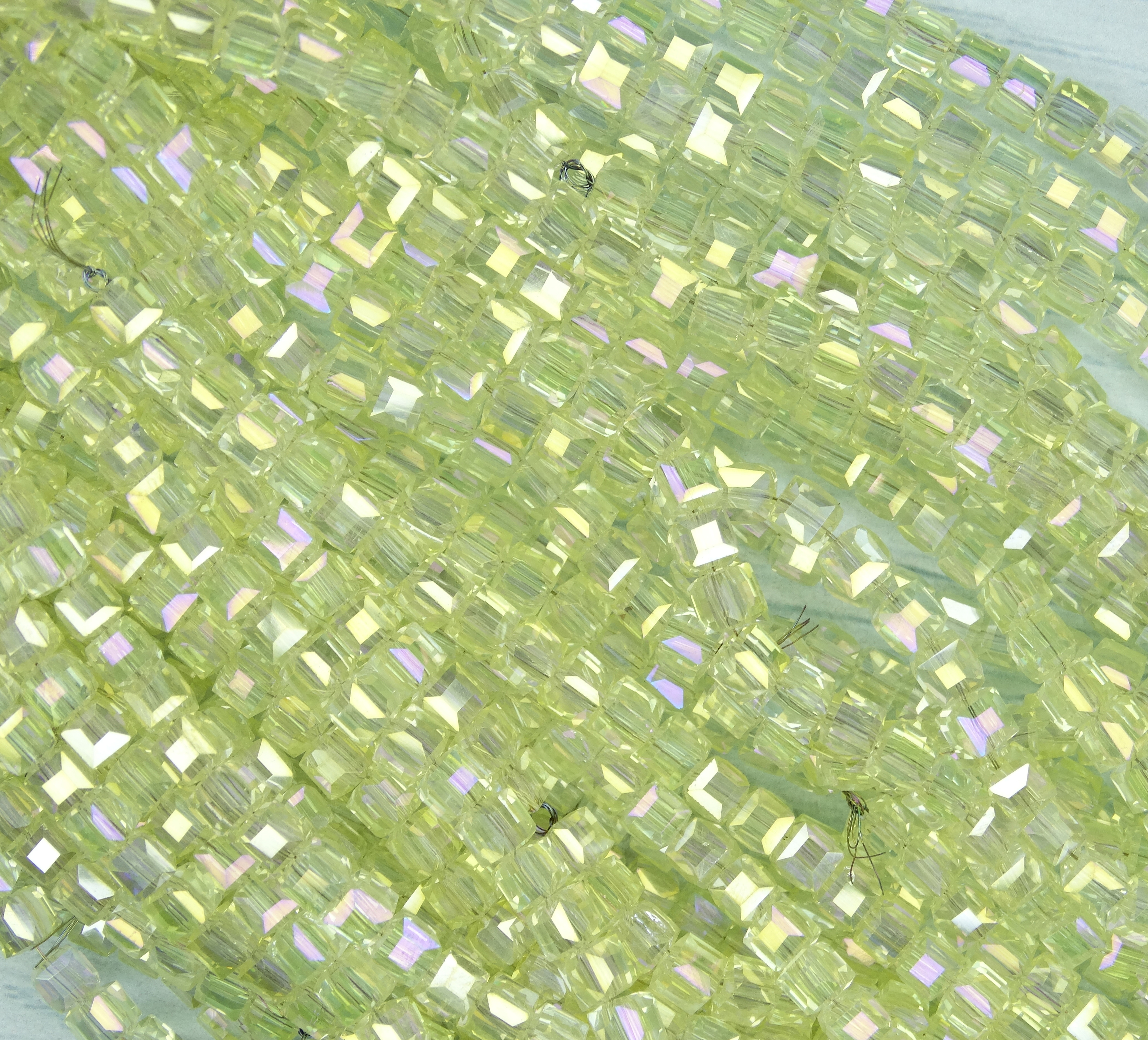 БВ004ДС4 Хрустальные бусины квадратные, цвет: лимонный AB прозрачный, размер 4 мм, кол-во: 44-45 шт.