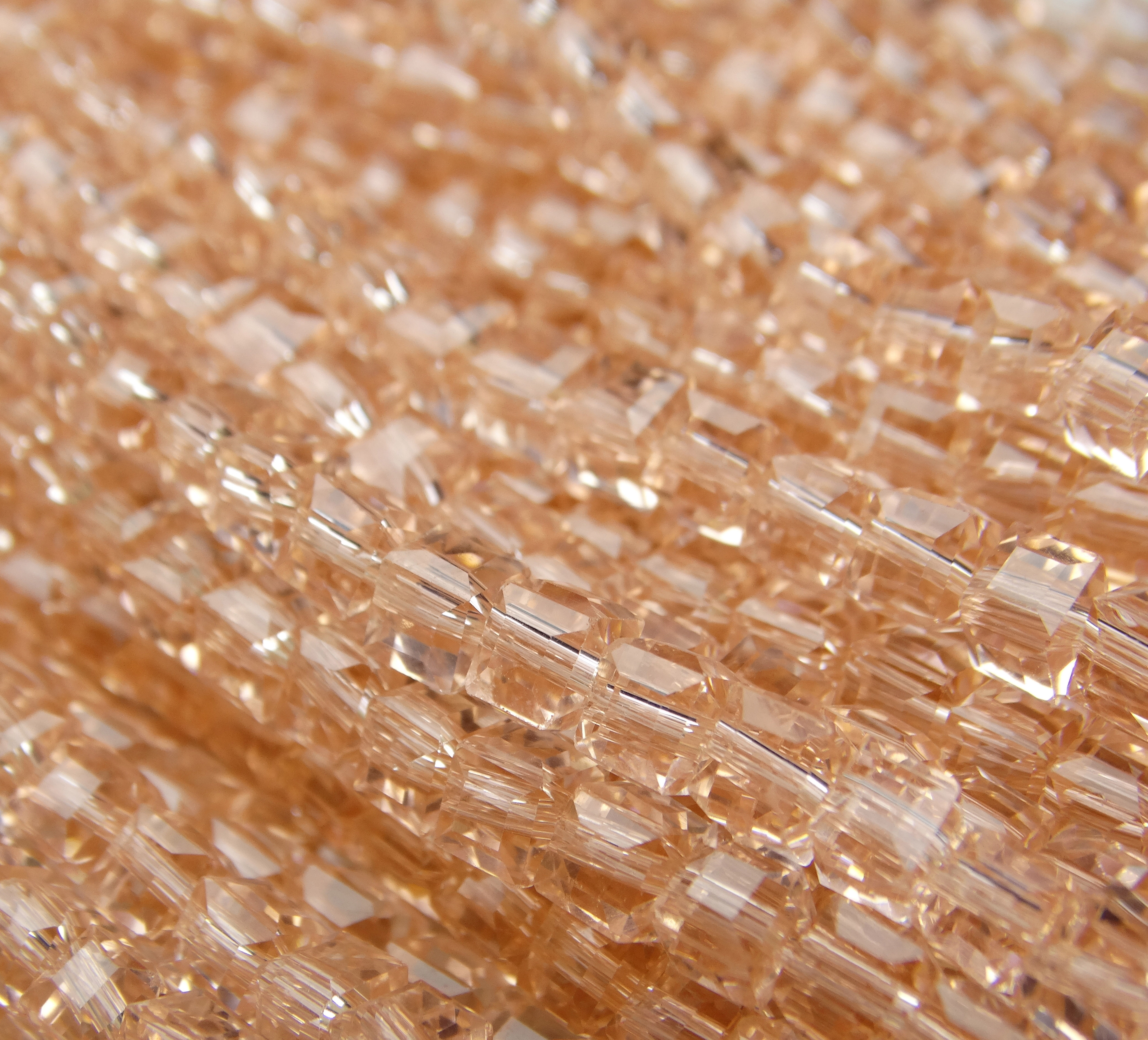 БВ012НН4 Хрустальные бусины квадратные, цвет: персиковый, размер 4 мм, кол-во: 44-45 шт.