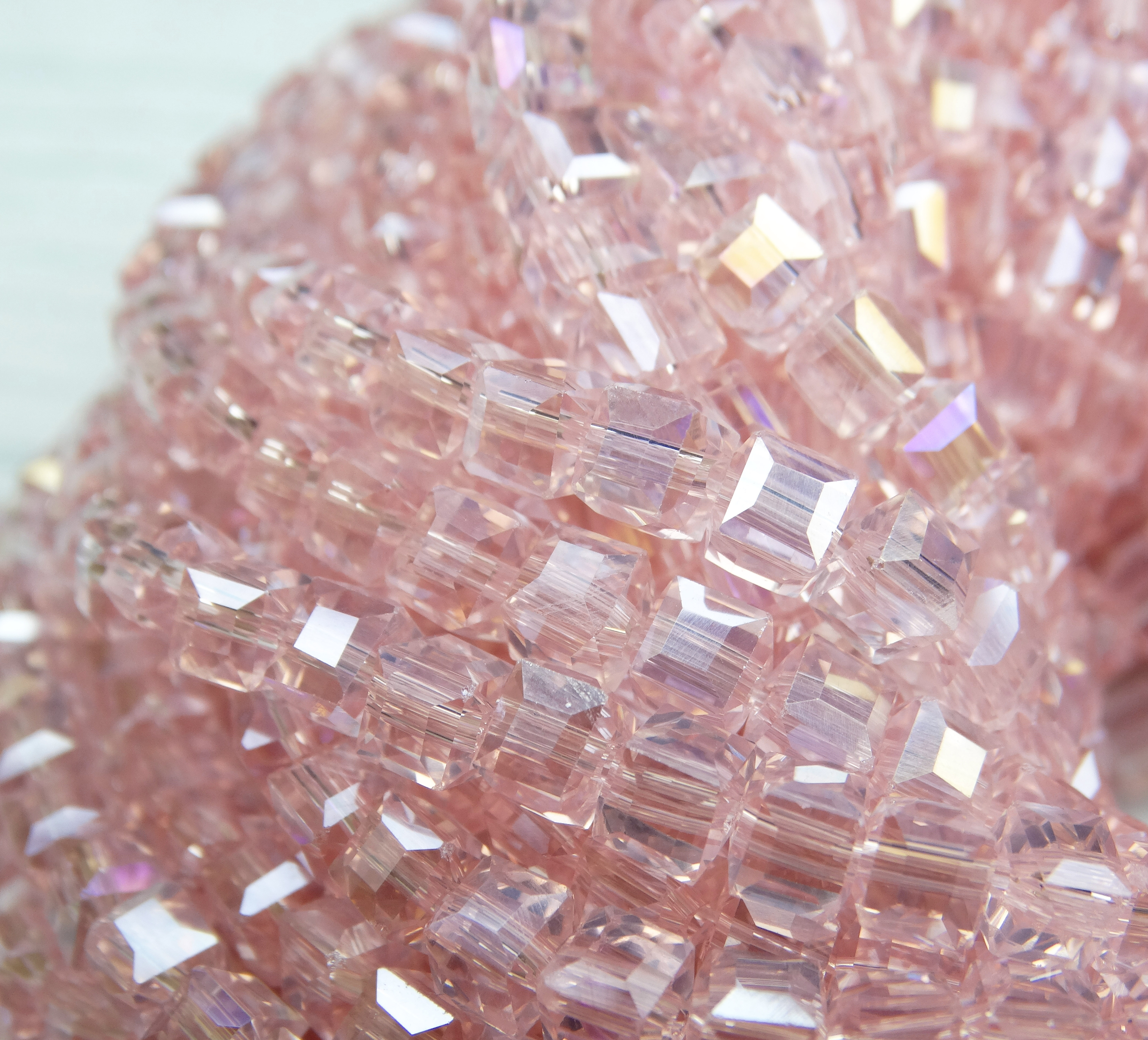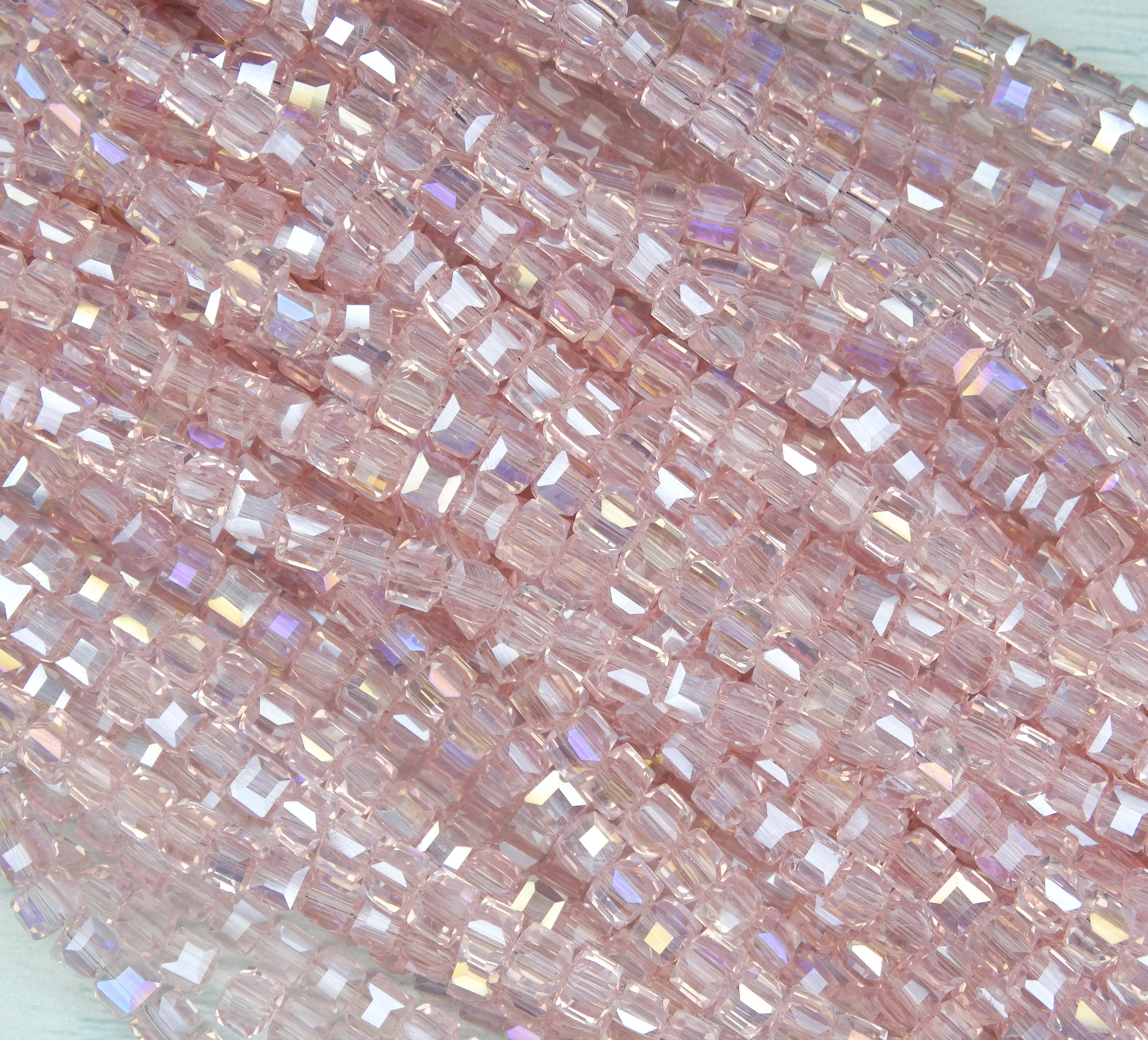 БВ013ДС3 Хрустальные бусины квадратные, цвет: розовый AB прозрачный, 3 мм, кол-во: 63-65 шт.