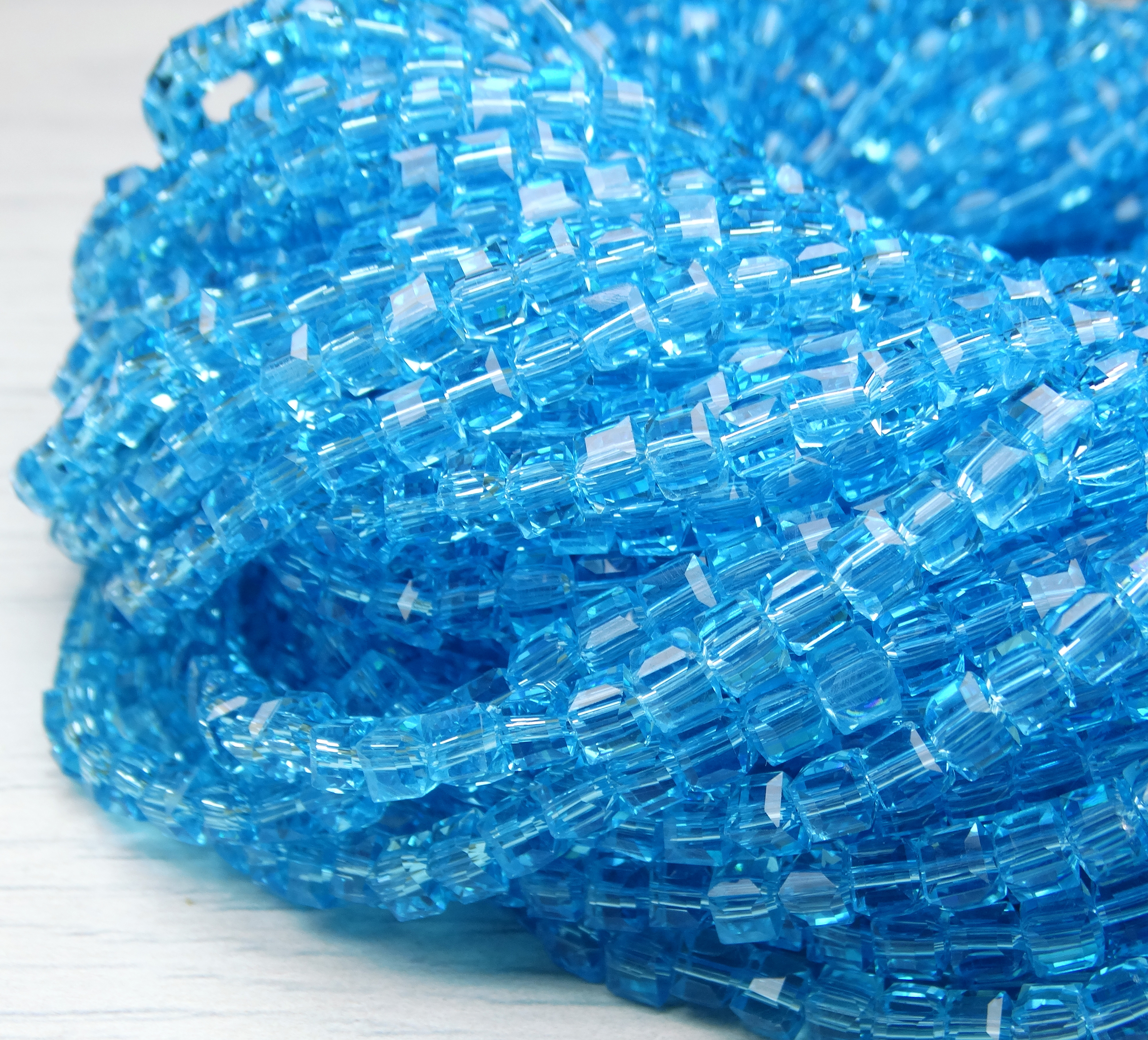БВ016НН3 Хрустальные бусины квадратные, цвет: ярко-голубой, размер 3 мм, кол-во: 63-65 шт.