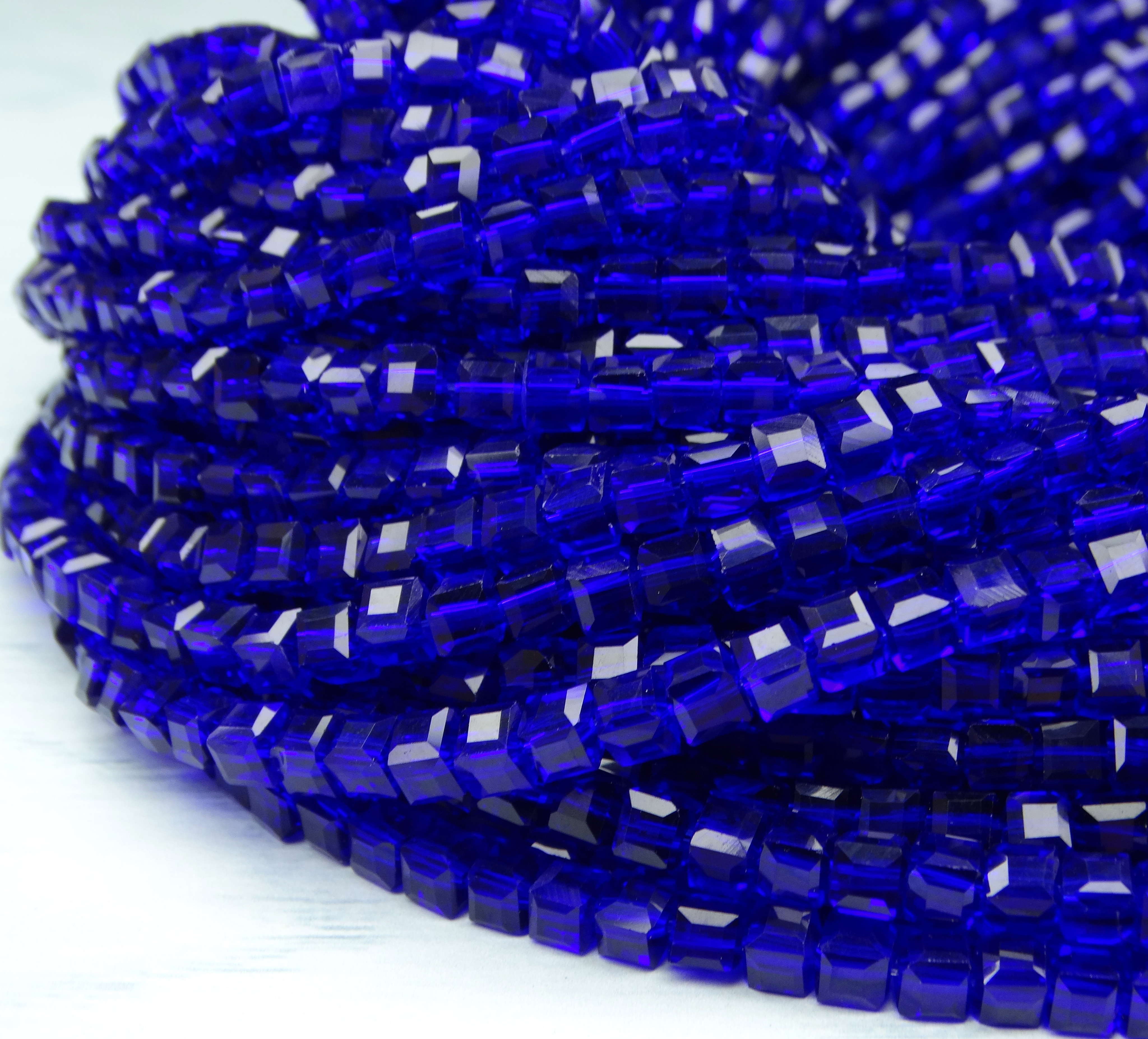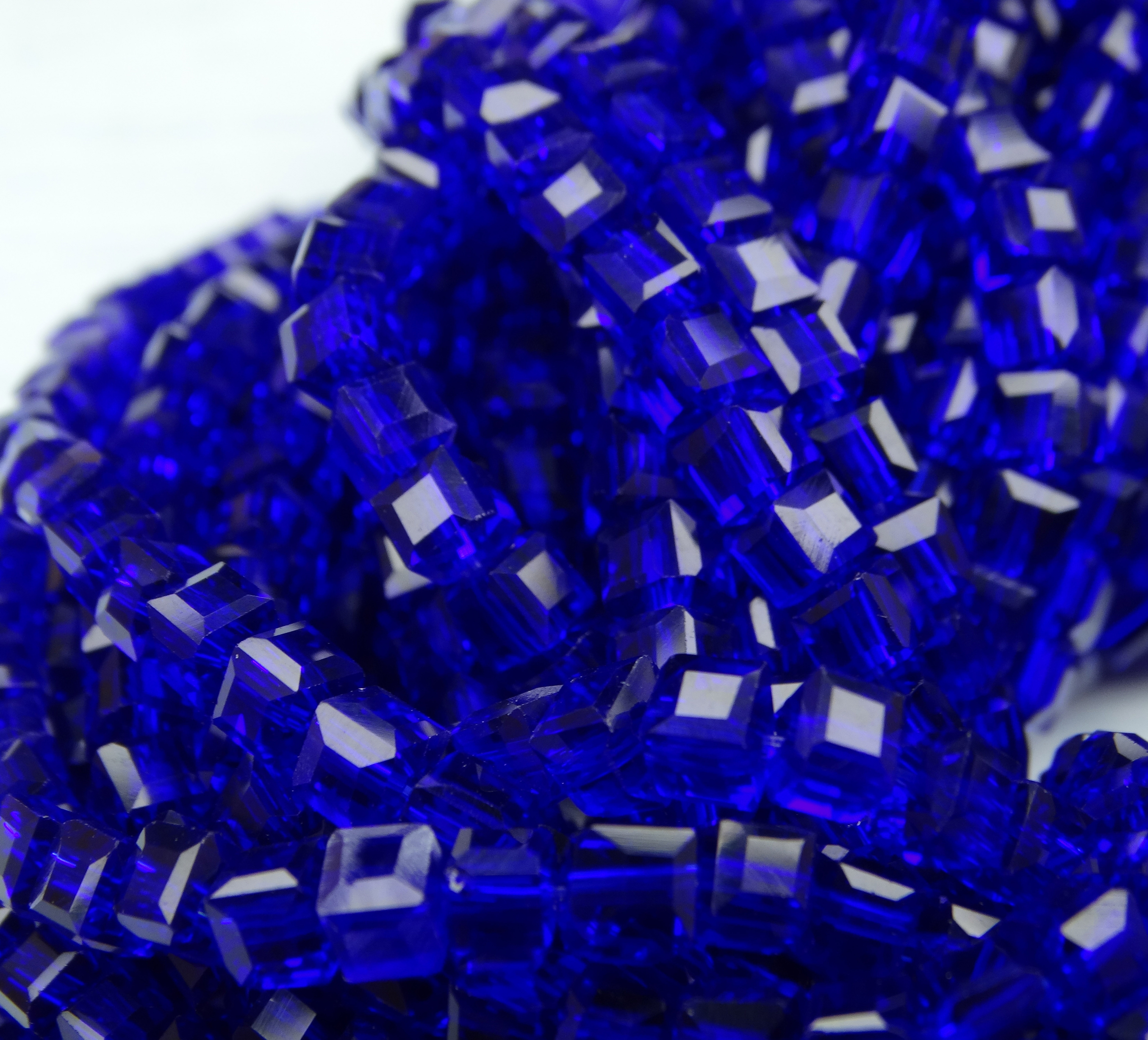 БВ019НН4 Хрустальные бусины квадратные, цвет: синий, размер 4 мм, кол-во: 44-45 шт.