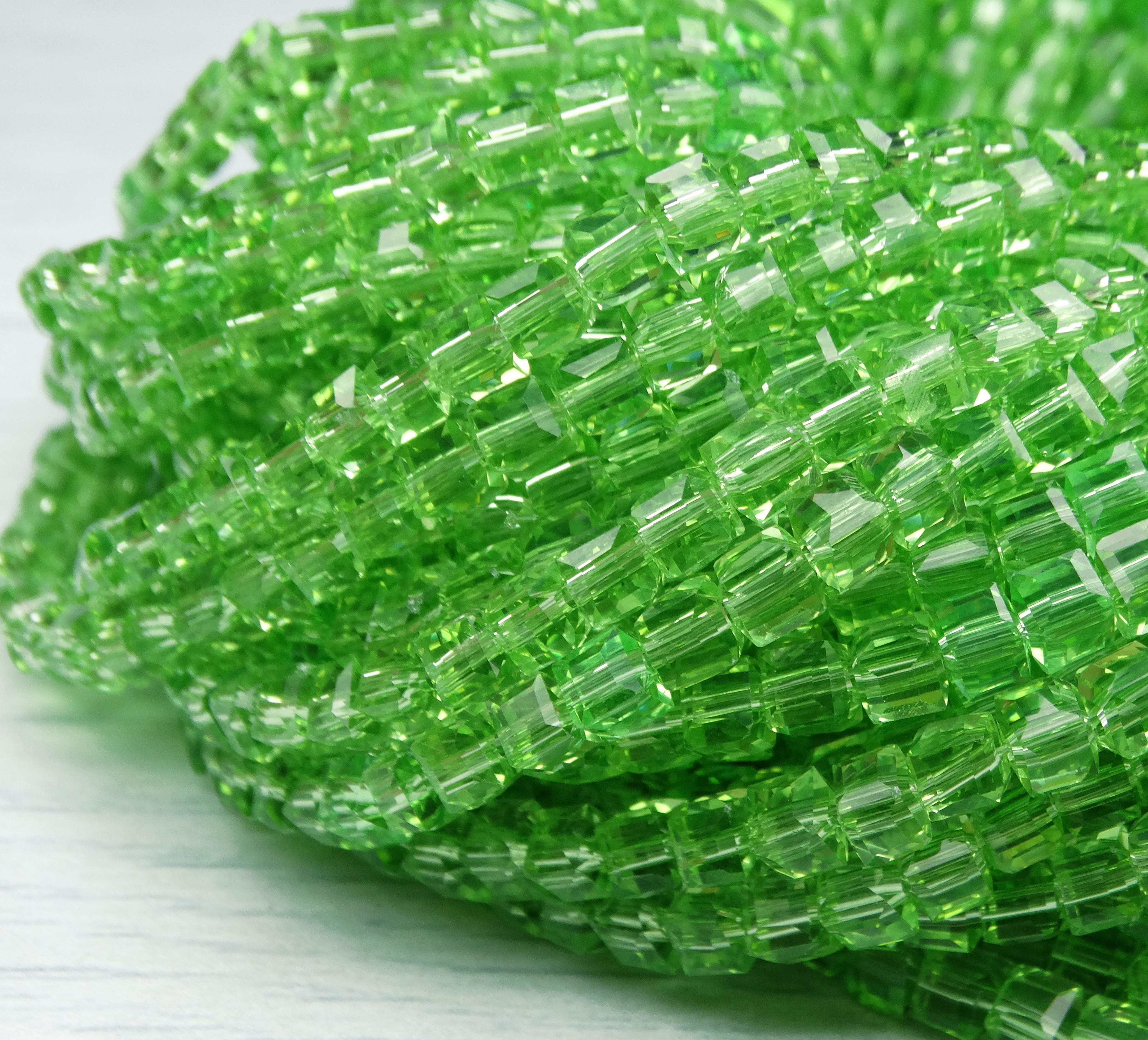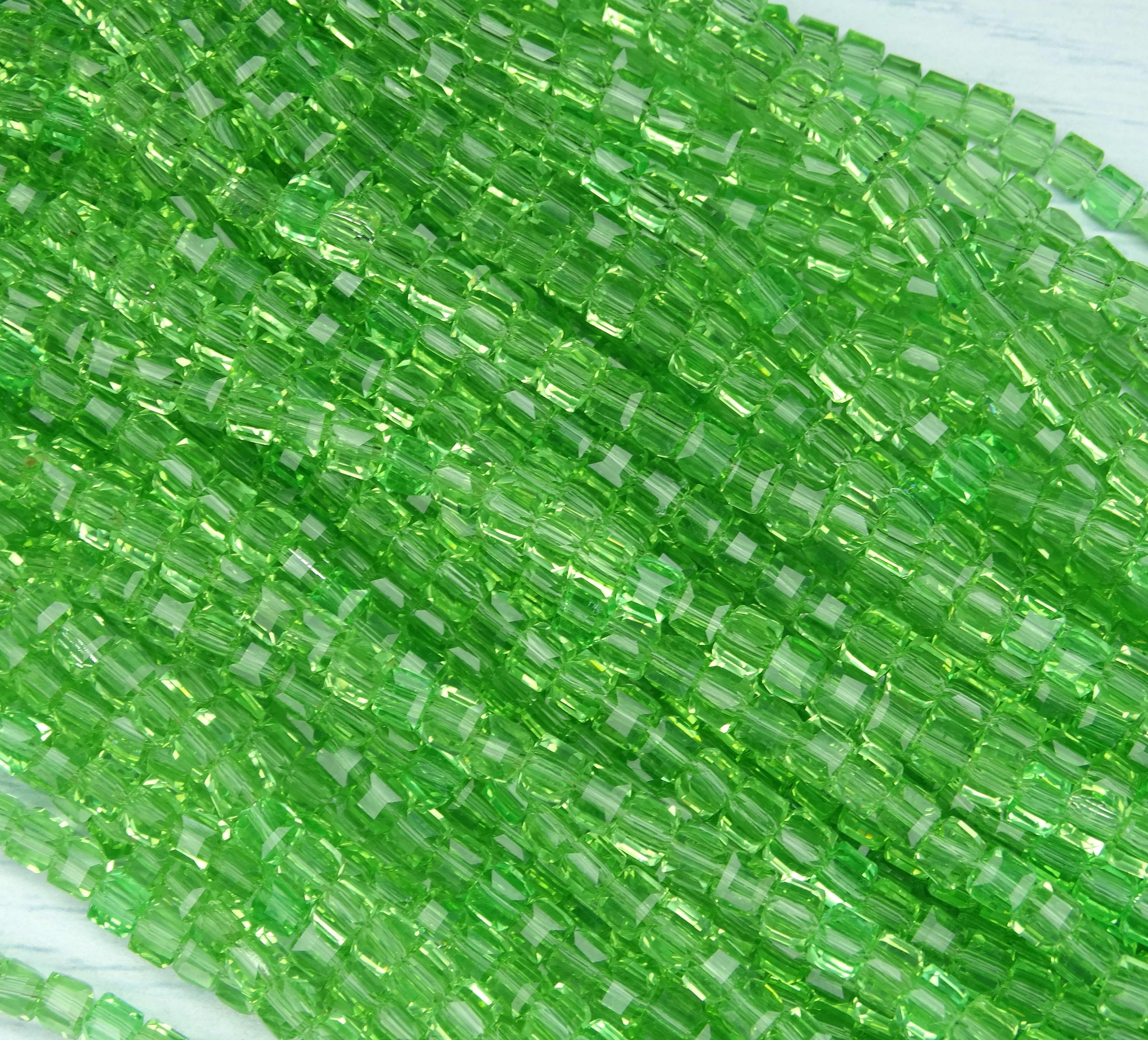 БВ020НН4 Хрустальные бусины квадратные, цвет: светло-зеленый, размер 4 мм, кол-во: 44-45 шт.