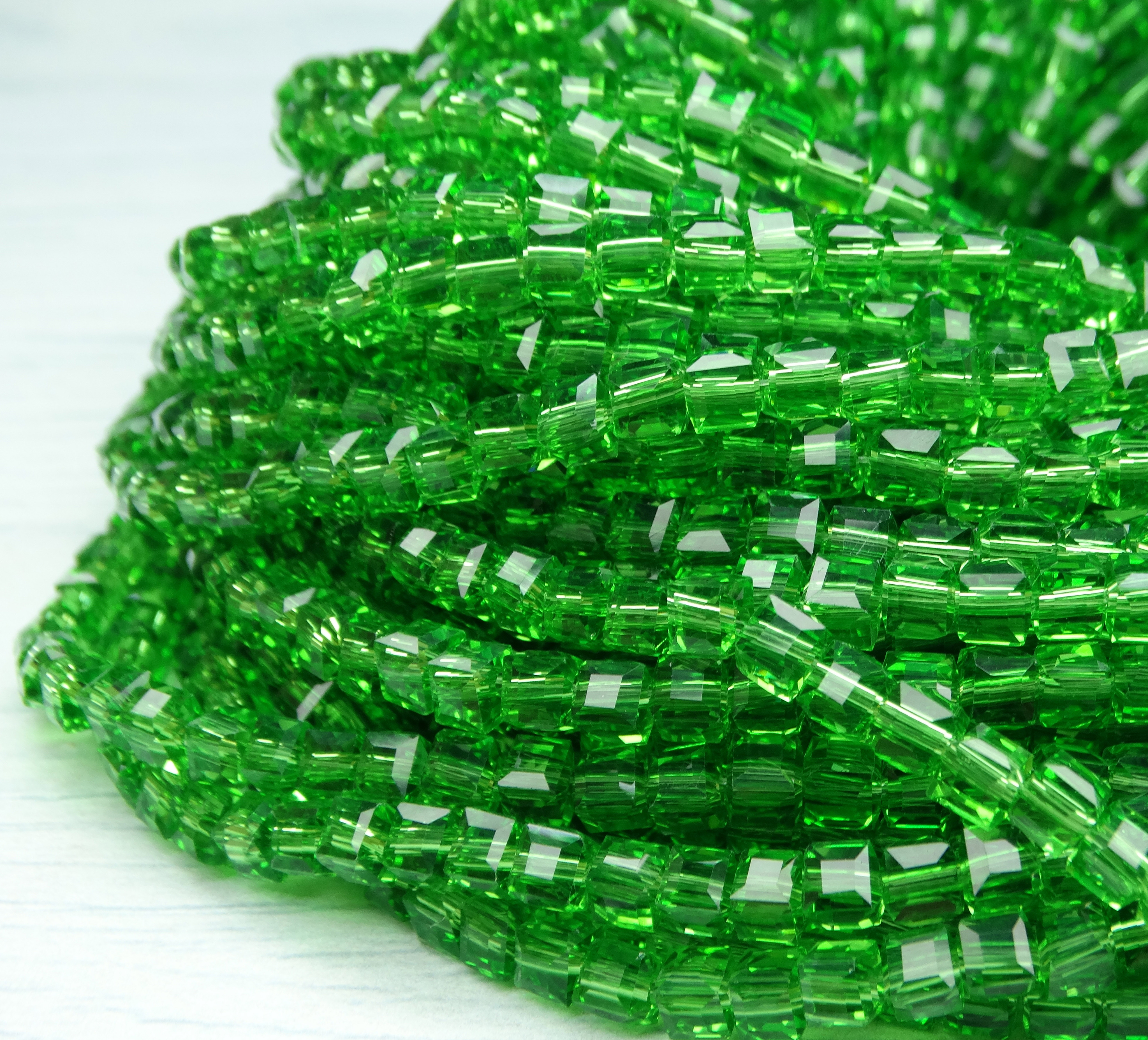 БВ021НН4 Хрустальные бусины квадратные, цвет: зеленый, размер 4 мм, кол-во: 44-45 шт.