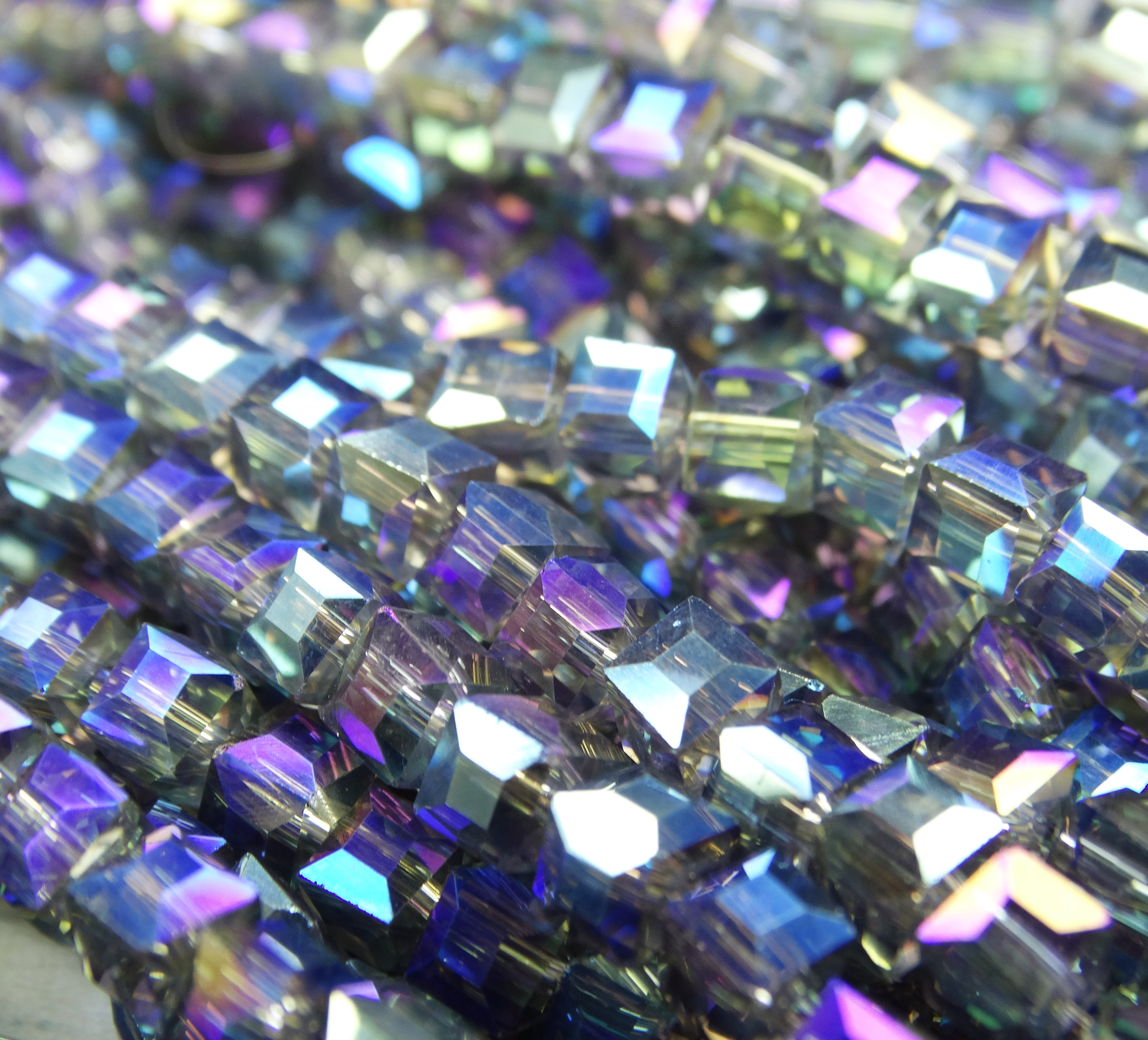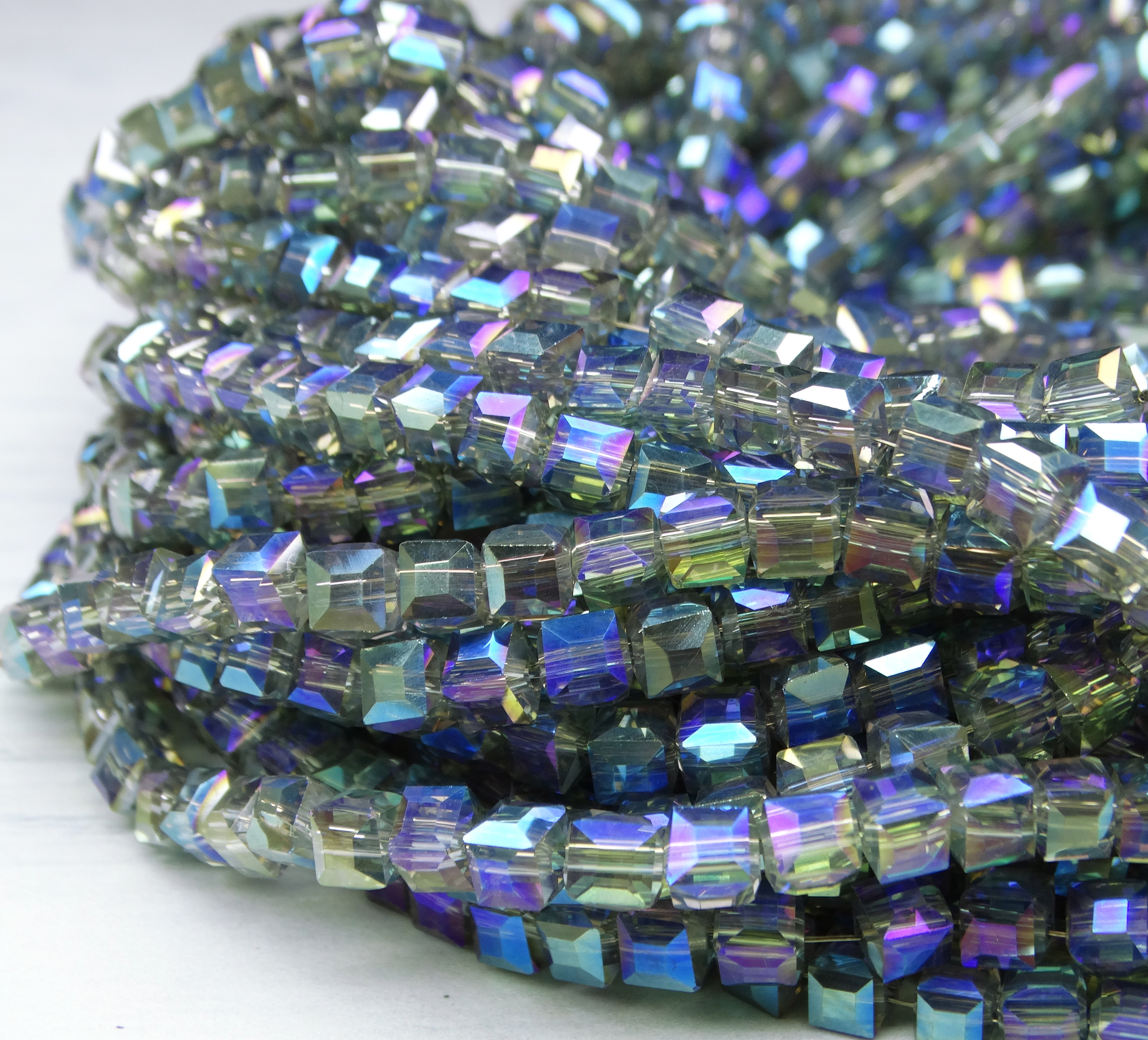 БВ029ДН4 Хрустальные бусины квадратные, цвет: серый с цв. AB прозрачный, 4 мм, кол-во: 44-45 шт.