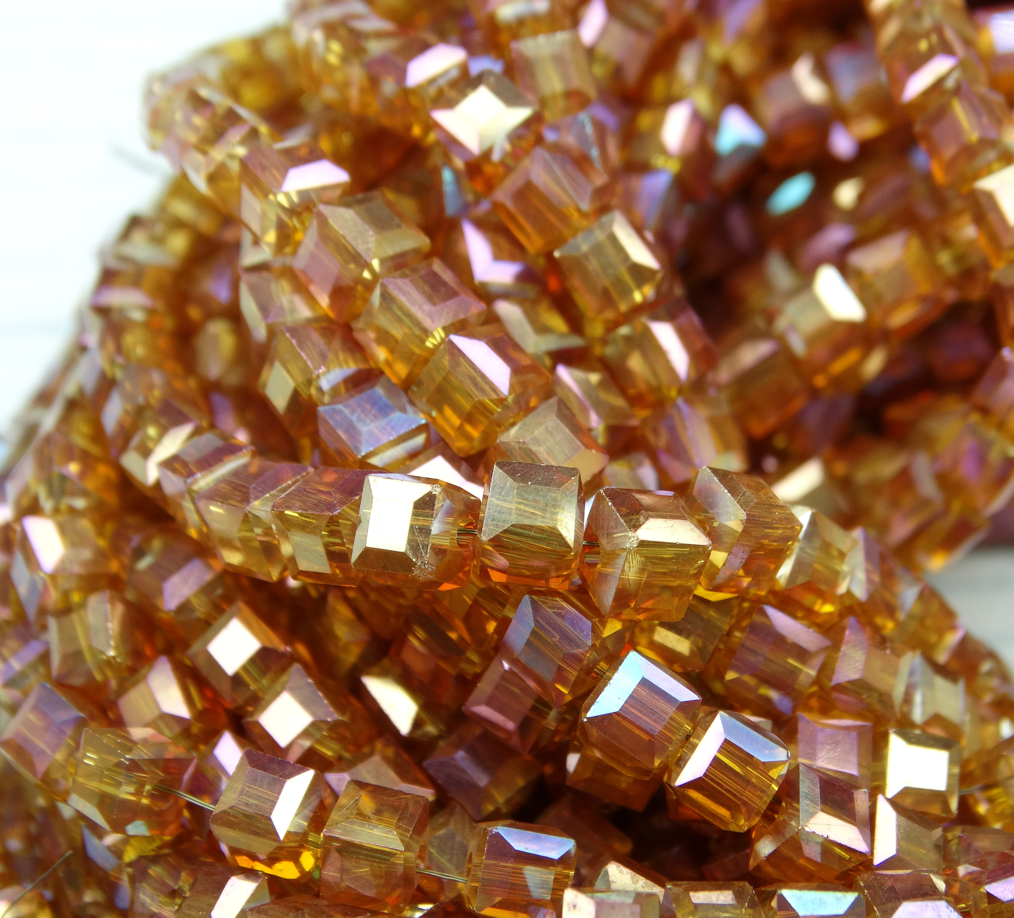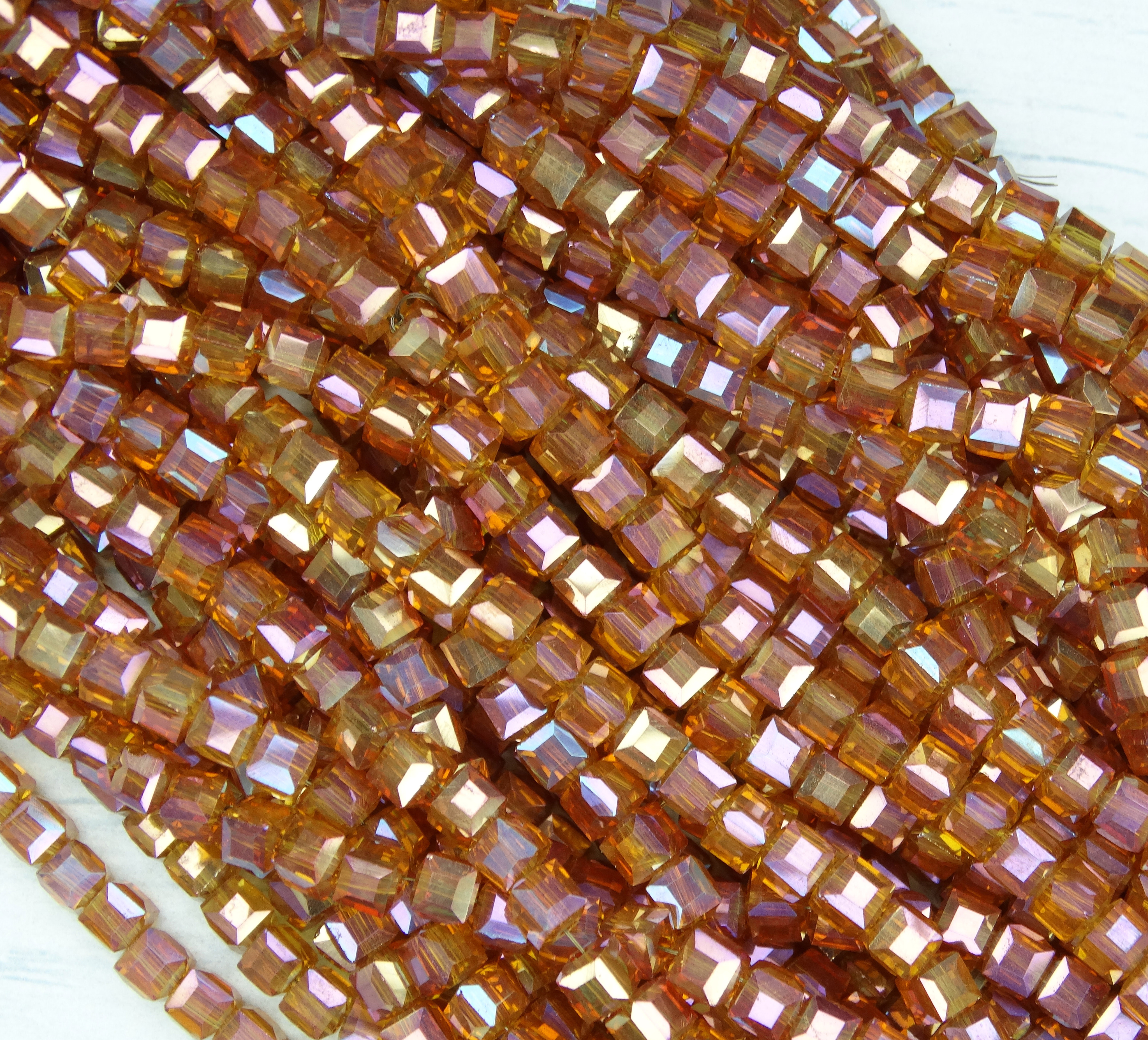 БВ048ДН3 Хрустальные бусины квадратные, цвет: коралловый с цв. AB, 3 мм, кол-во: 63-65 шт.