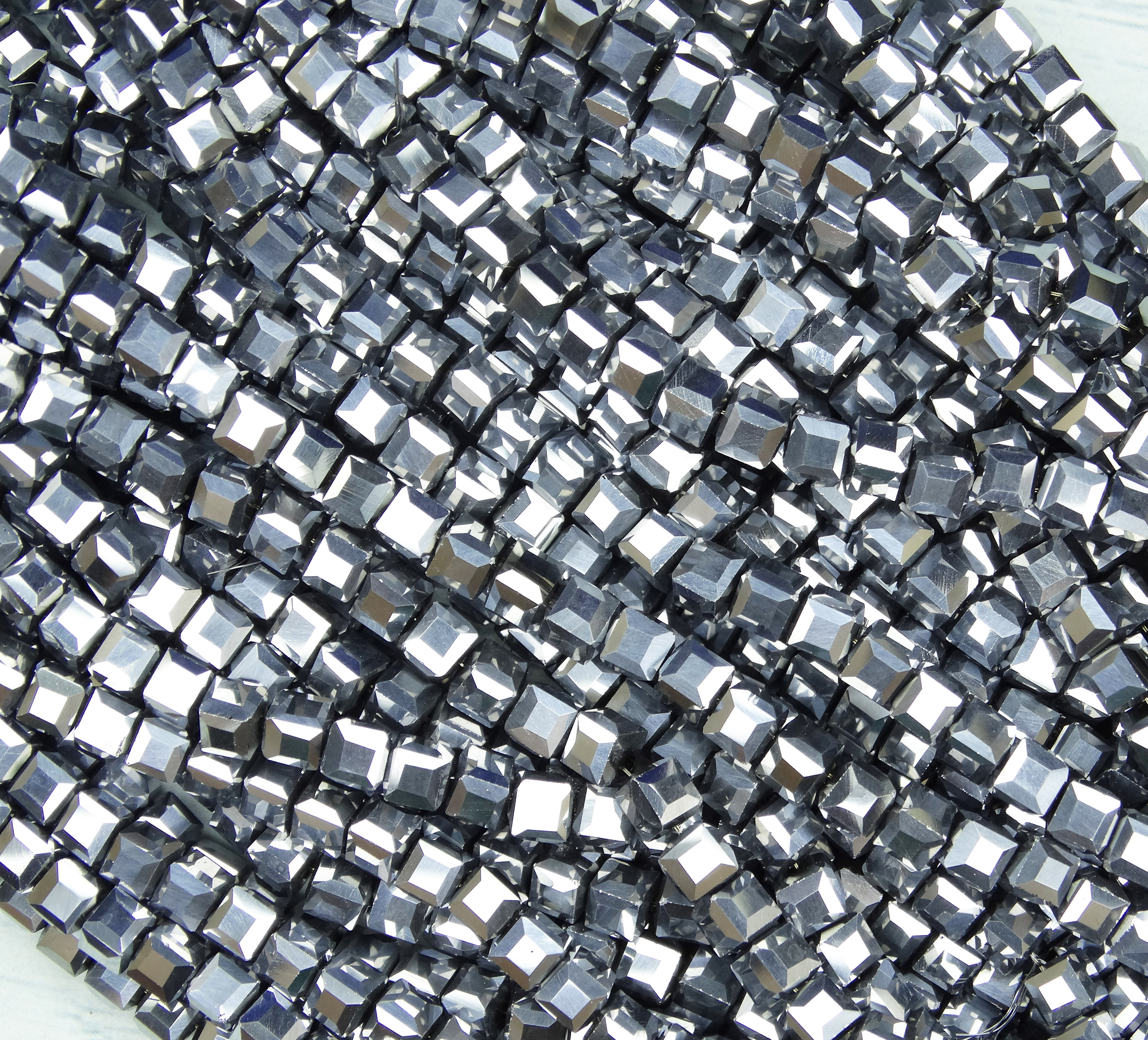 БВЛ001НН3 Хрустальные бусины квадратные, цвет: серебро металлик, размер 3 мм, кол-во: 63-65 шт.