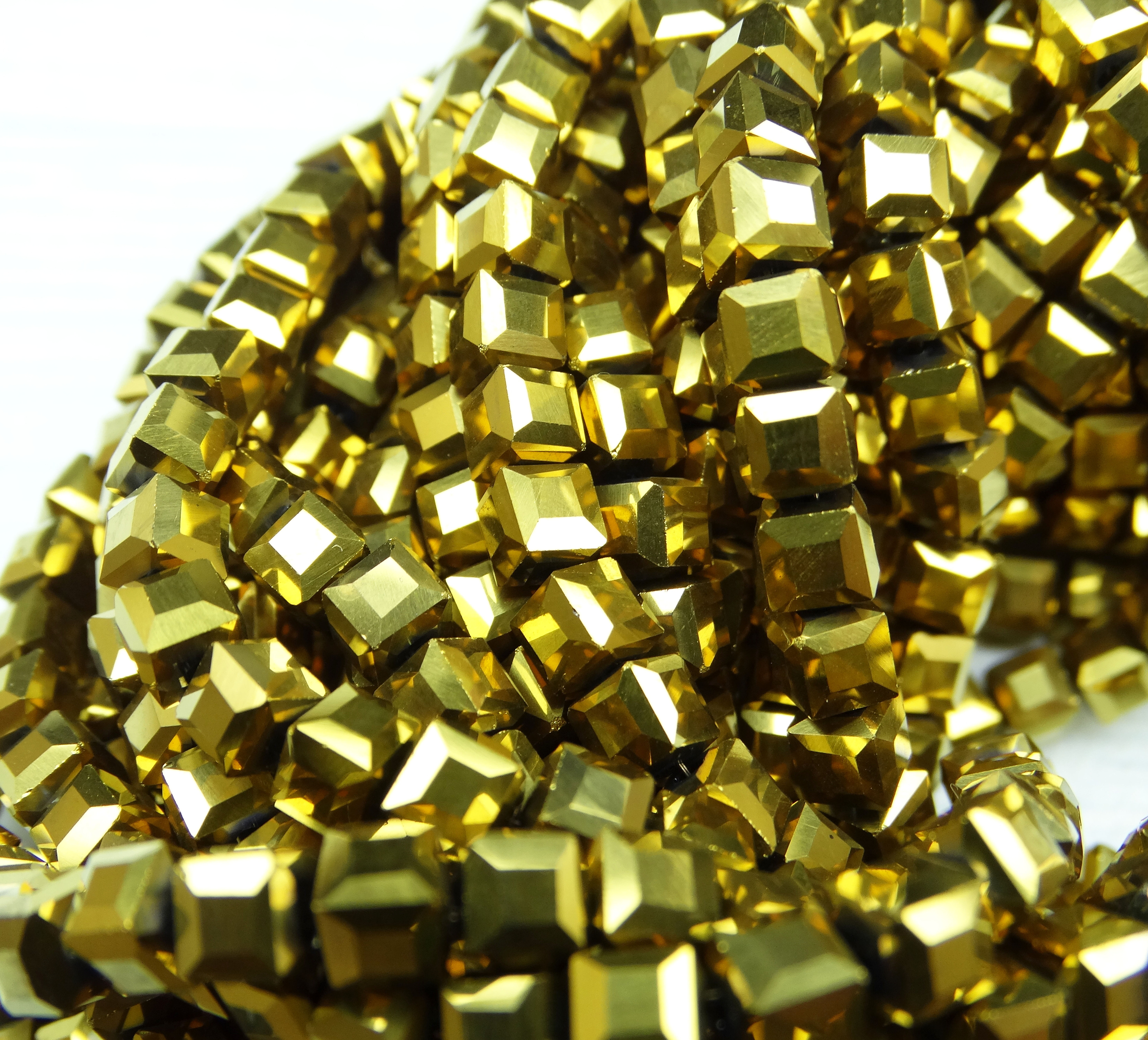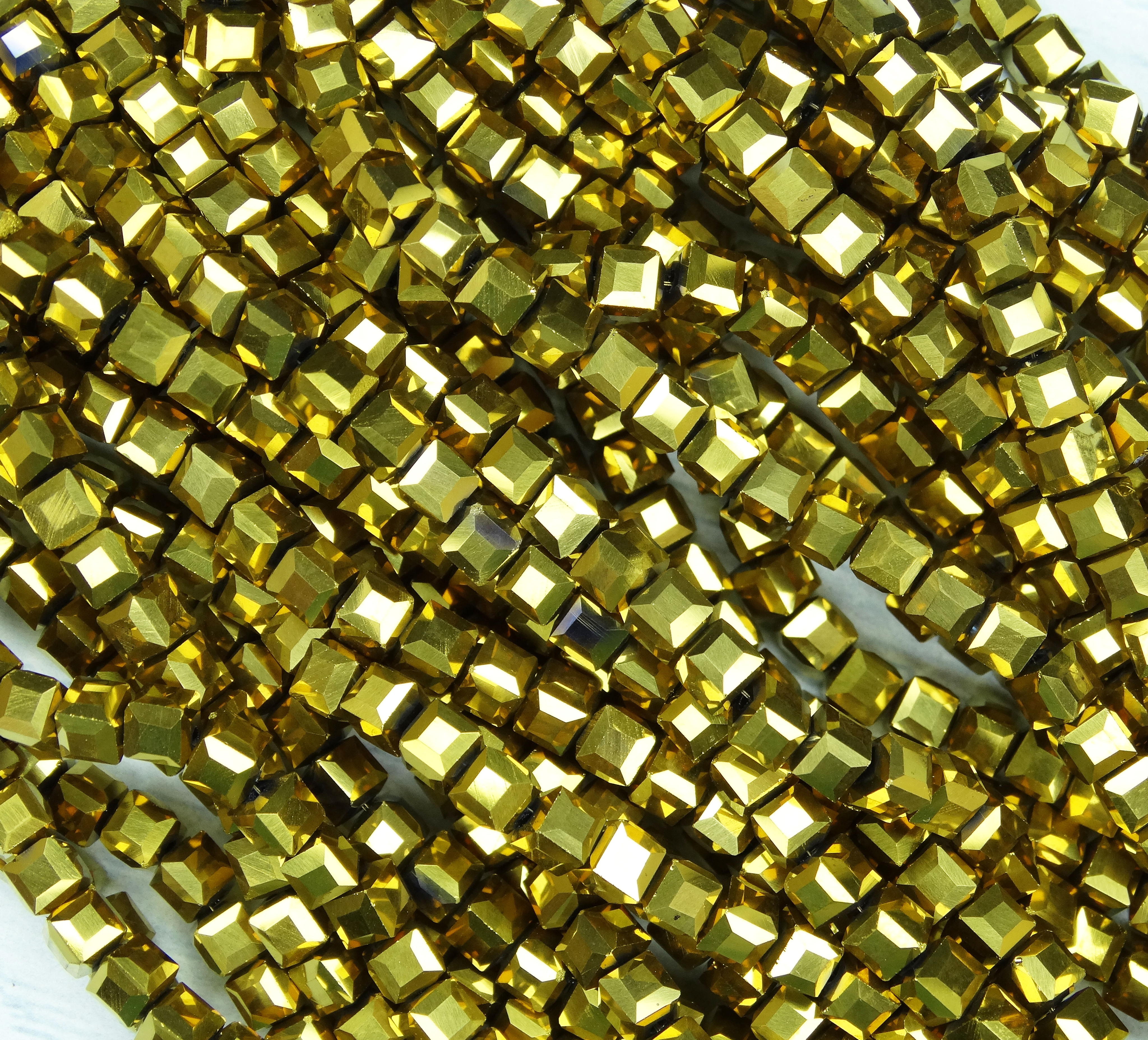 БВЛ002НН3 Хрустальные бусины квадратные, цвет: золото металлик, размер 3 мм, кол-во: 63-65 шт.