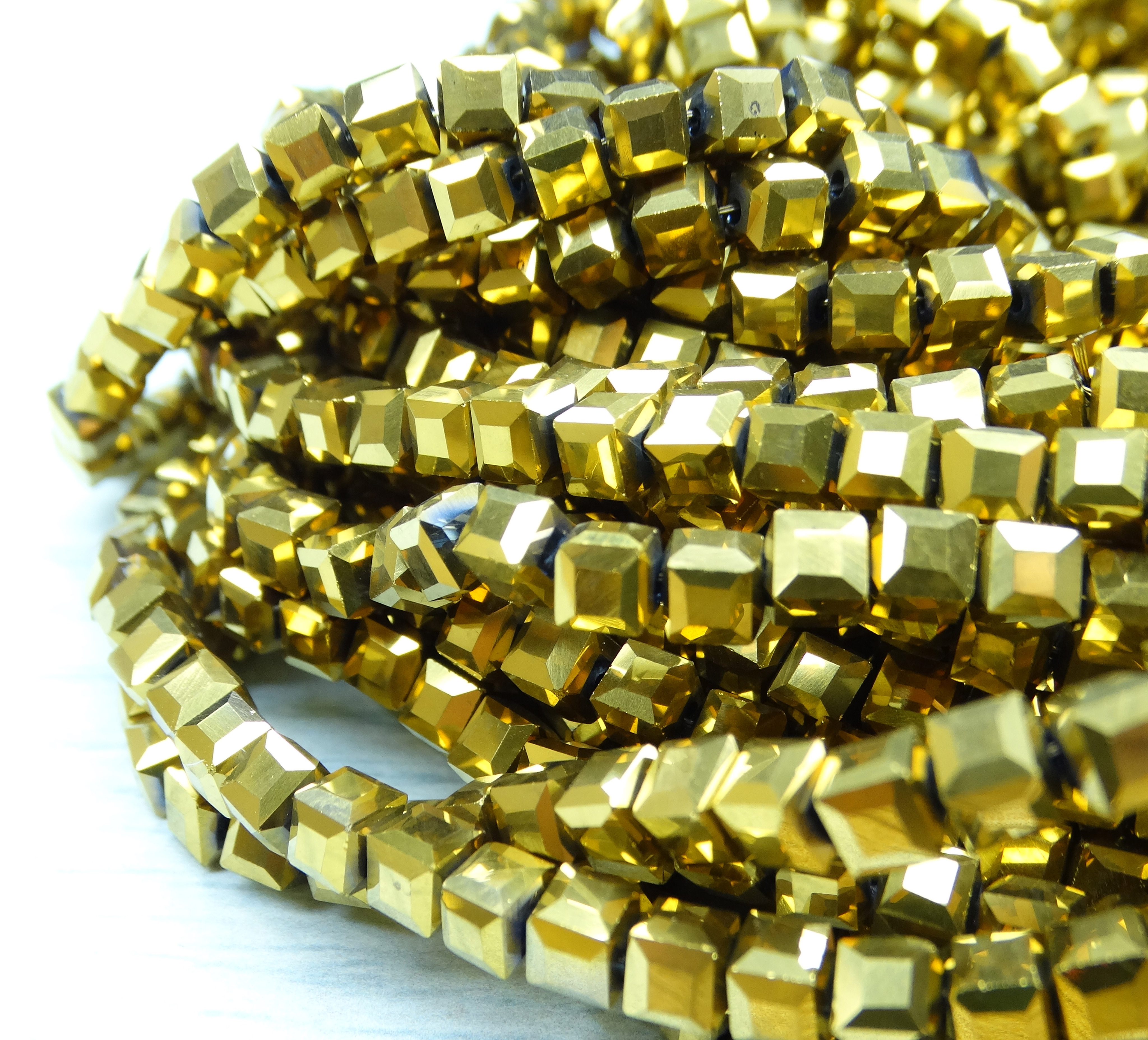 БВЛ002НН4 Хрустальные бусины квадратные, цвет: золото металлик, размер 4 мм, кол-во: 44-45 шт.