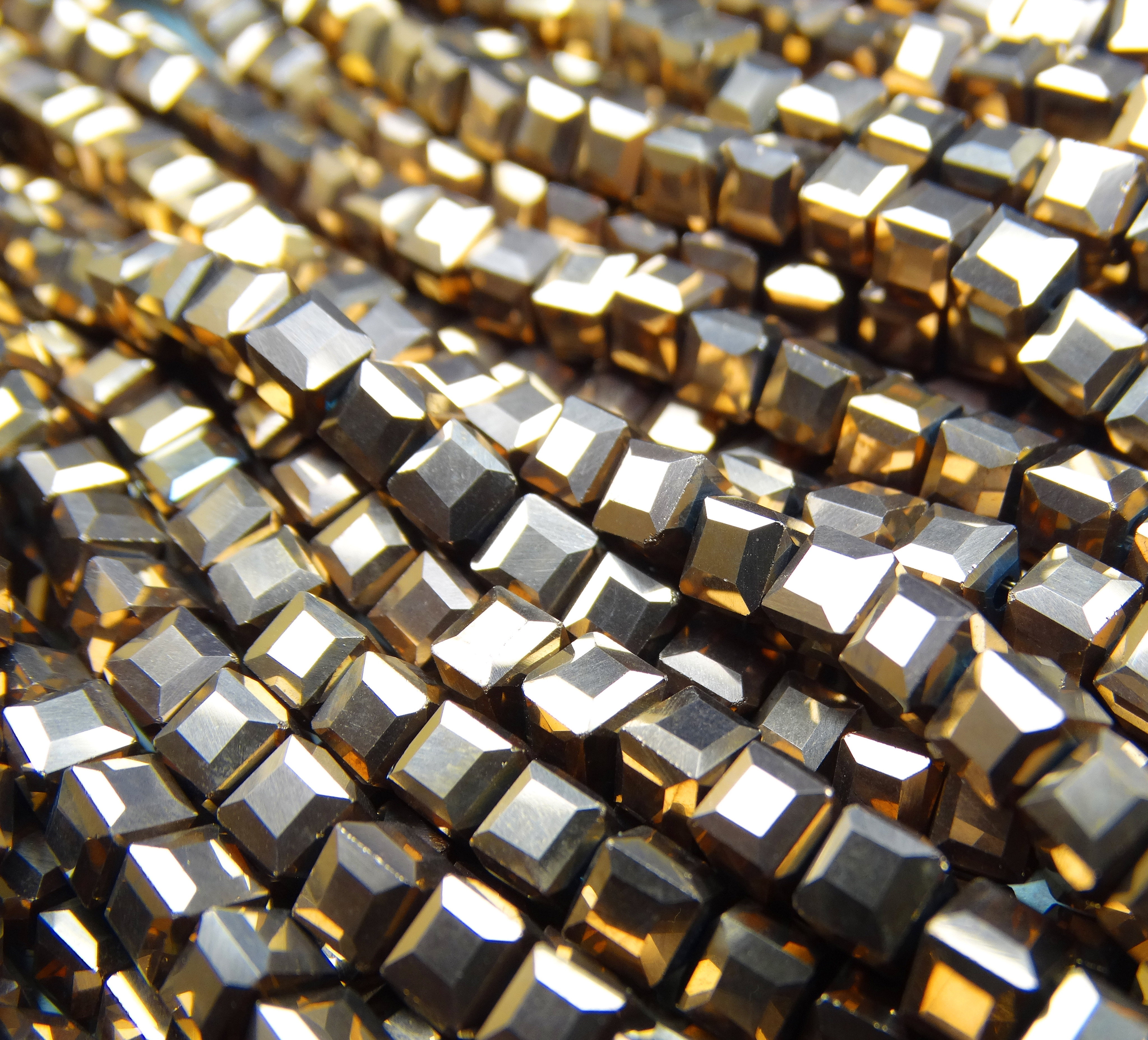 БВЛ003НН3 Хрустальные бусины квадратные, коричневое золото металлик, размер 3 мм, кол-во: 63-65 шт.