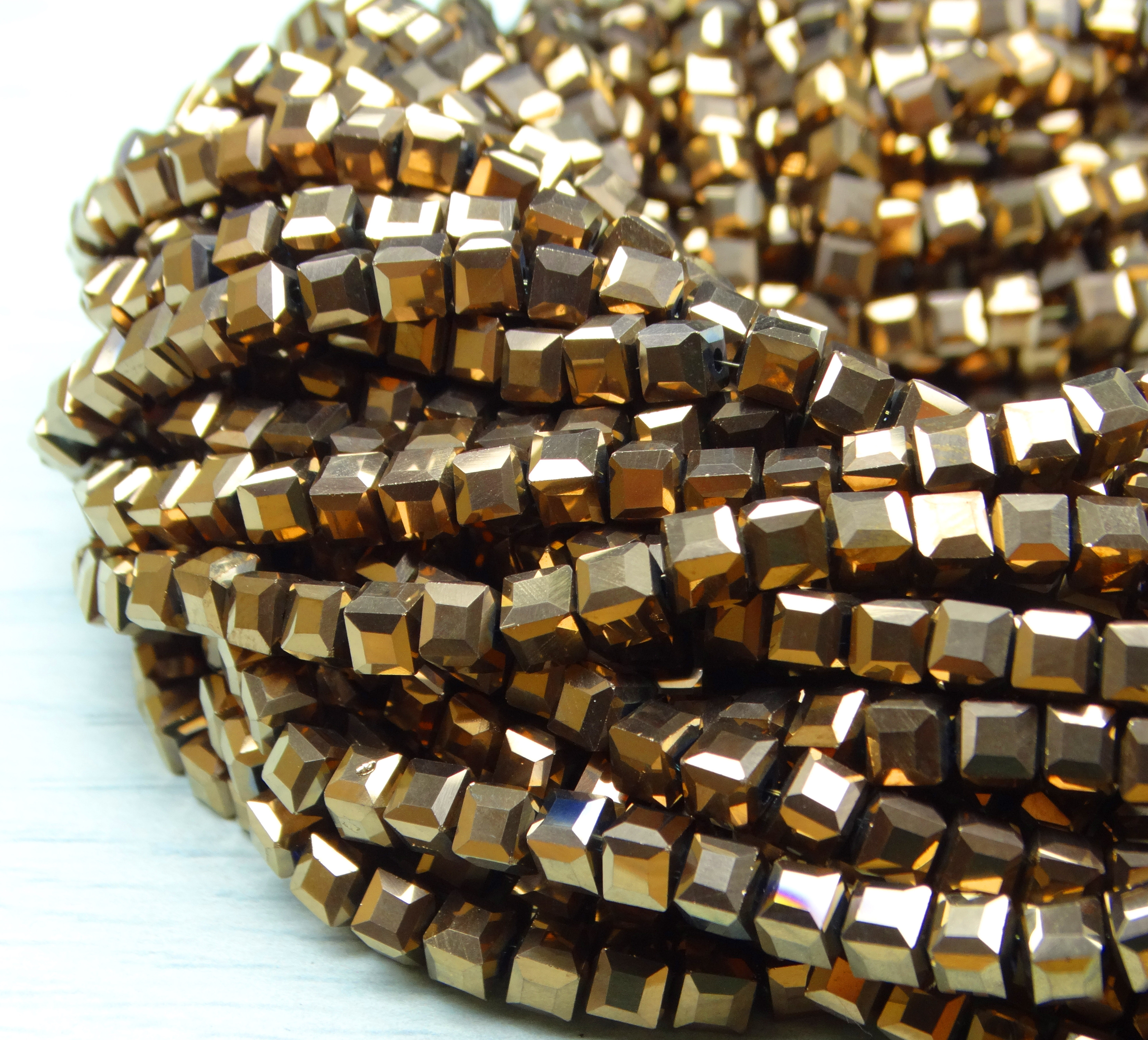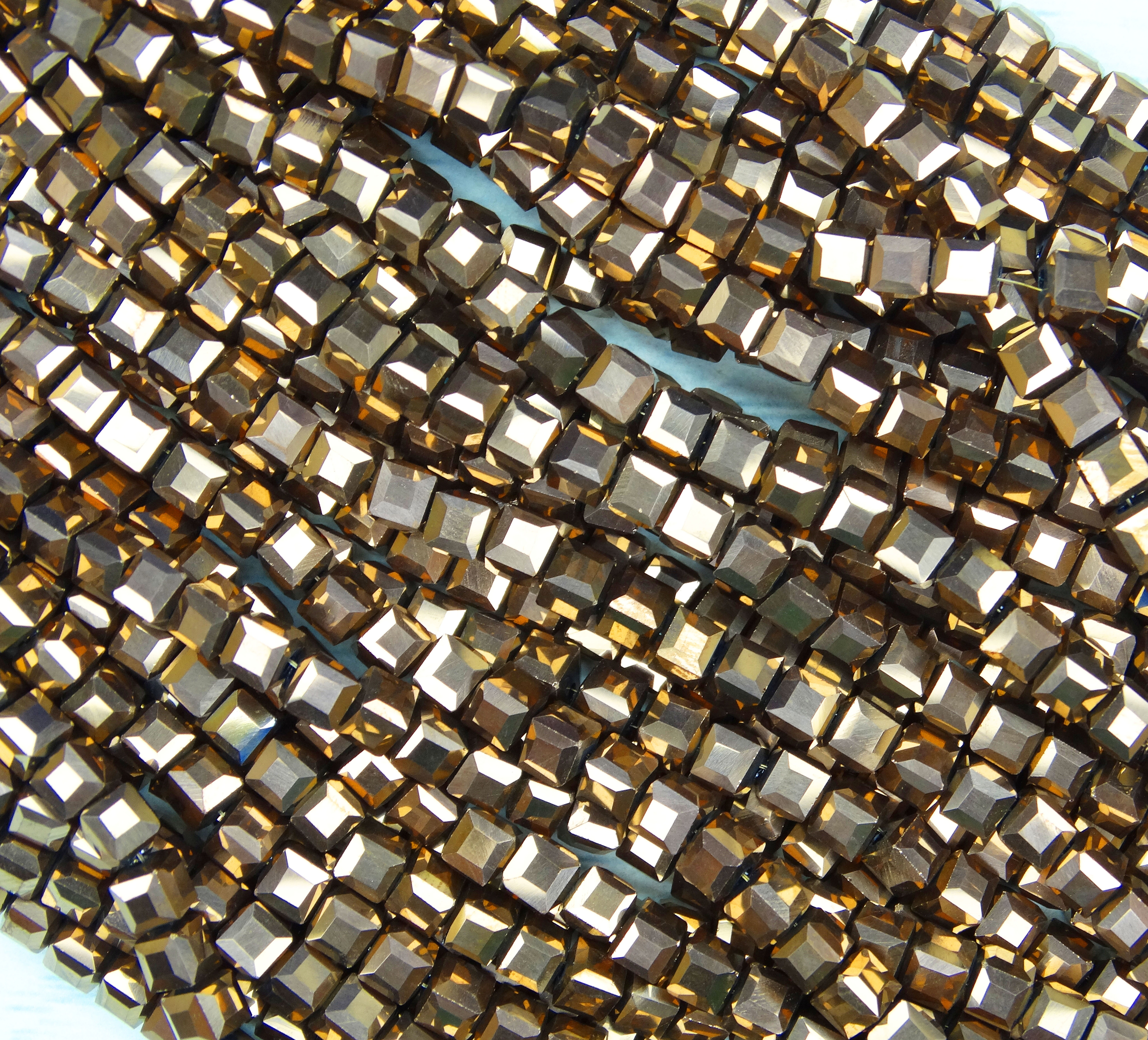 БВЛ003НН4 Хрустальные бусины квадратные, коричневое золото металлик, размер 4 мм, кол-во: 44-45 шт.
