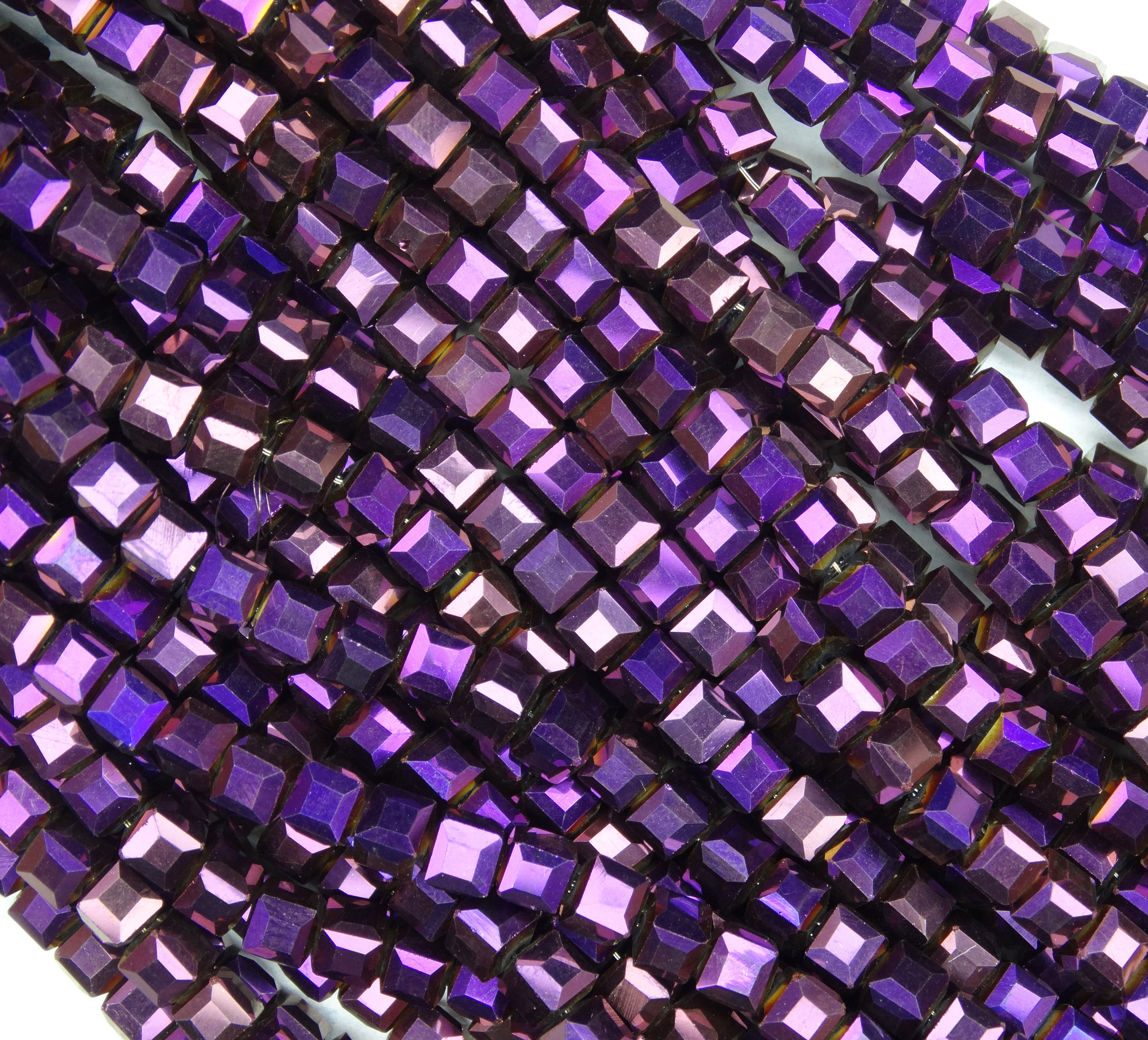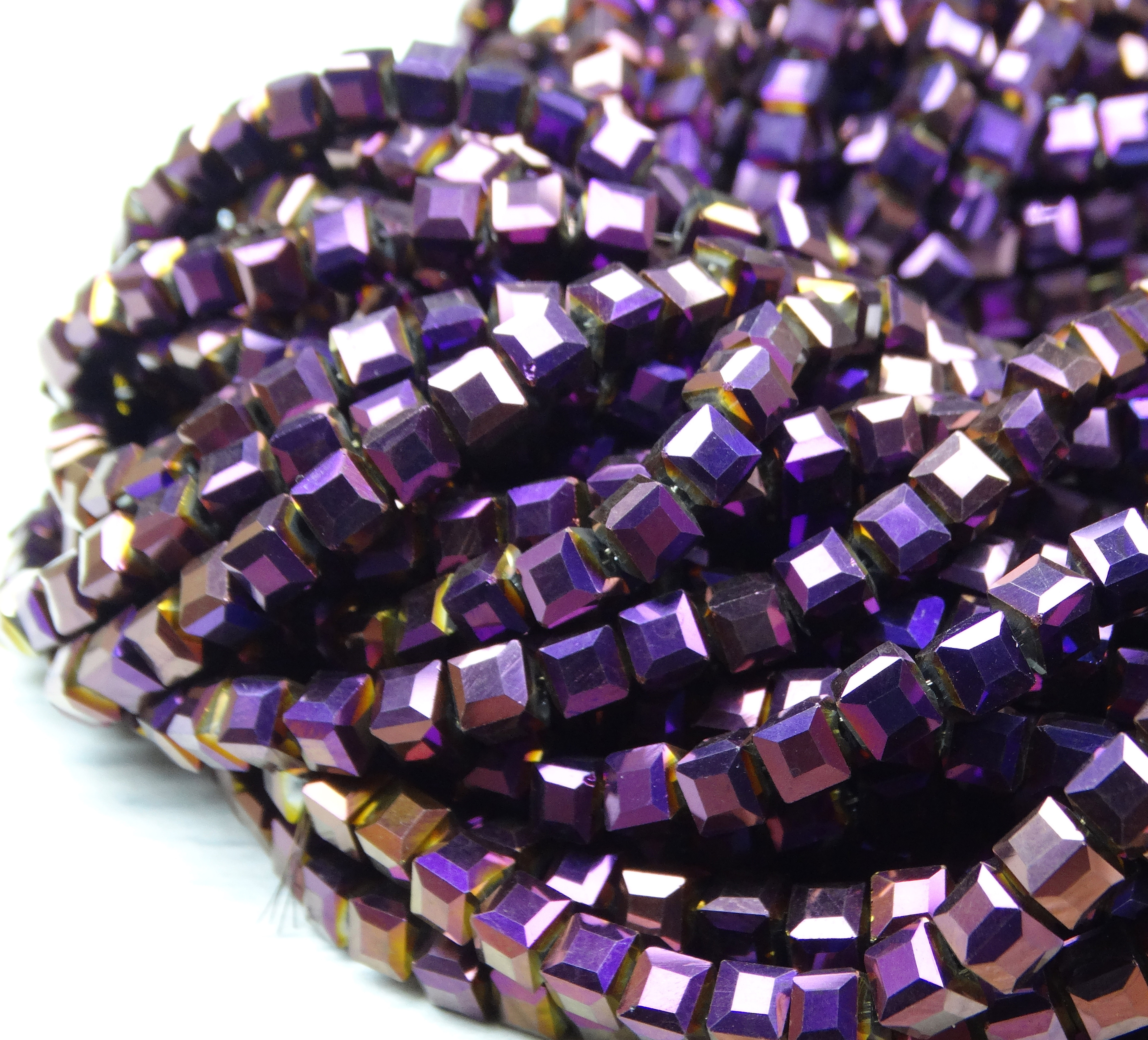 БВЛ005НН4 Хрустальные бусины квадратные, фиолетовый металлик, размер 4 мм, кол-во: 44-45 шт.