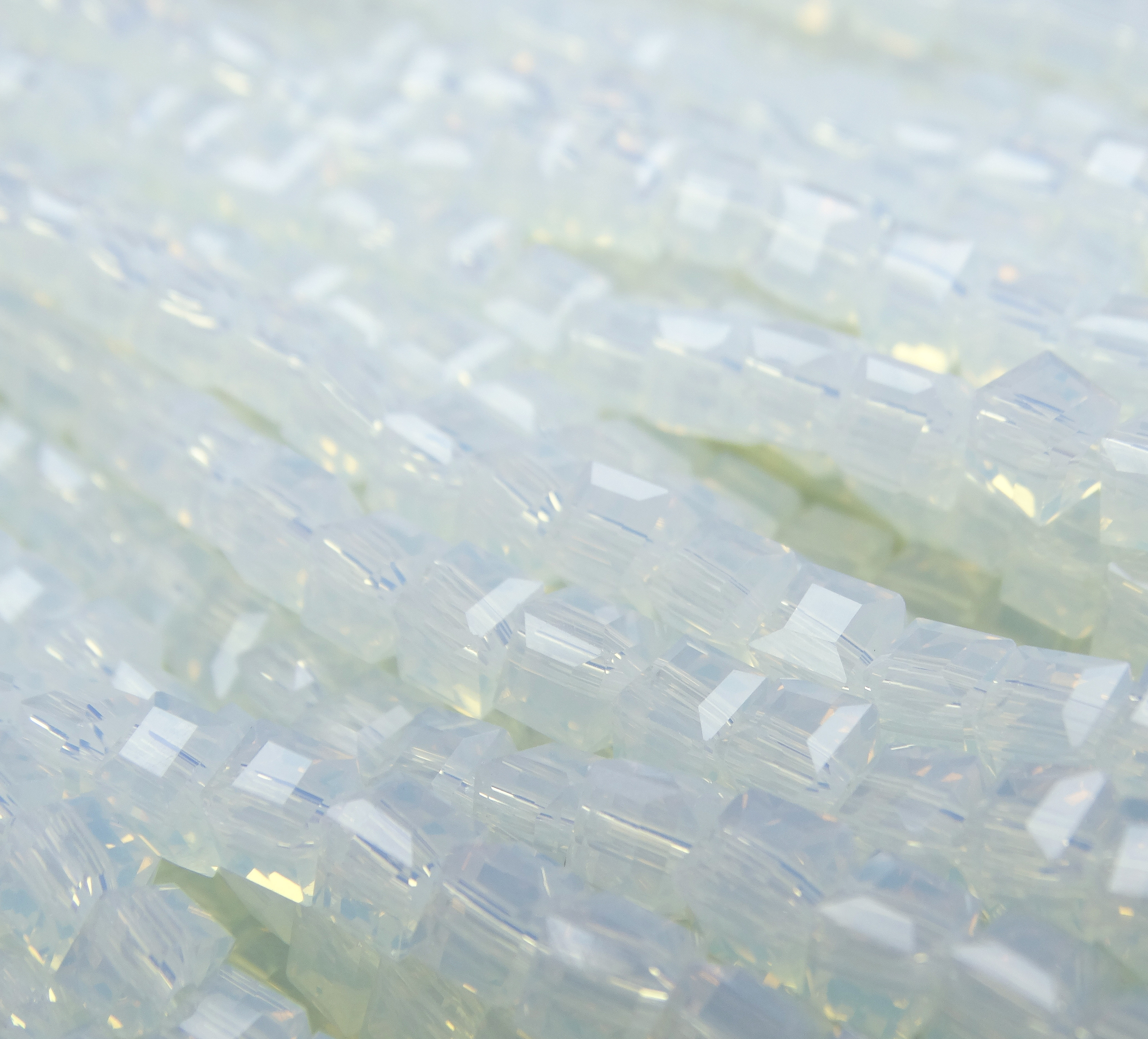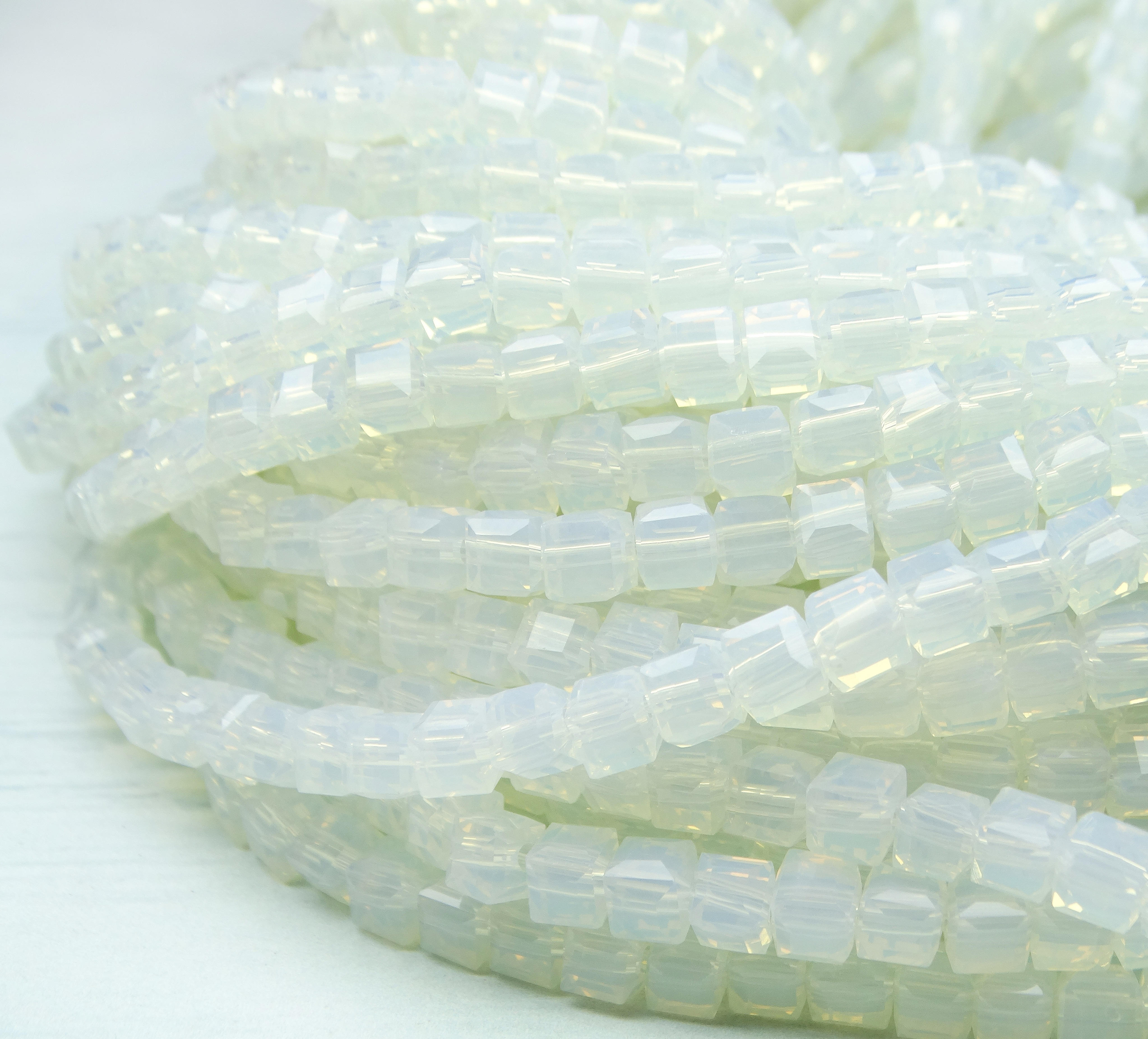 БВМ002НН4 Хрустальные бусины квадратные, белый, имитирующий опал, 4 мм, кол-во: 44-45 шт.