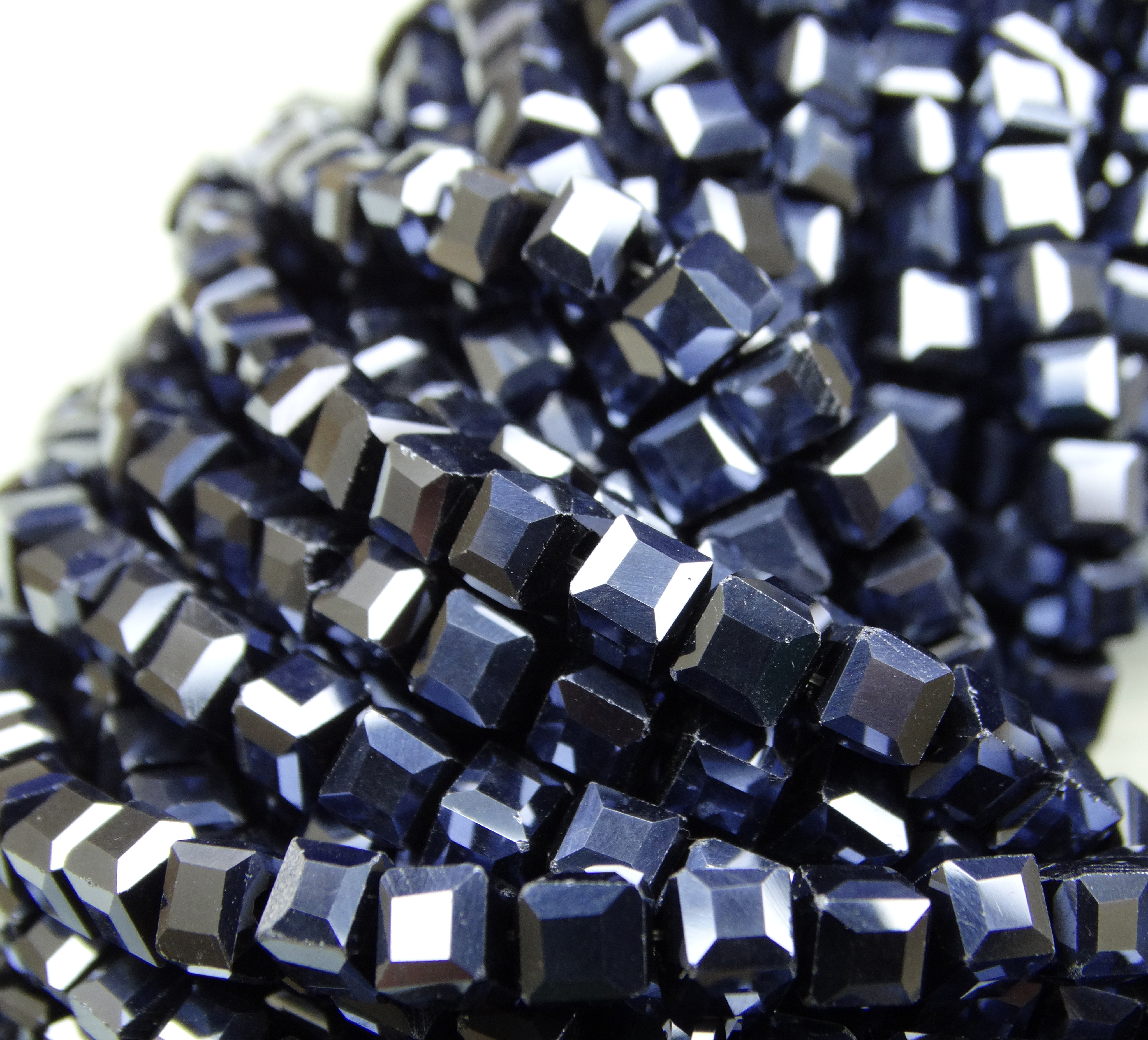 БВН008ДС3 Хрустальные бусины квадратные, цвет: черный AB непрозрачный, 3 мм, кол-во: 63-65 шт.