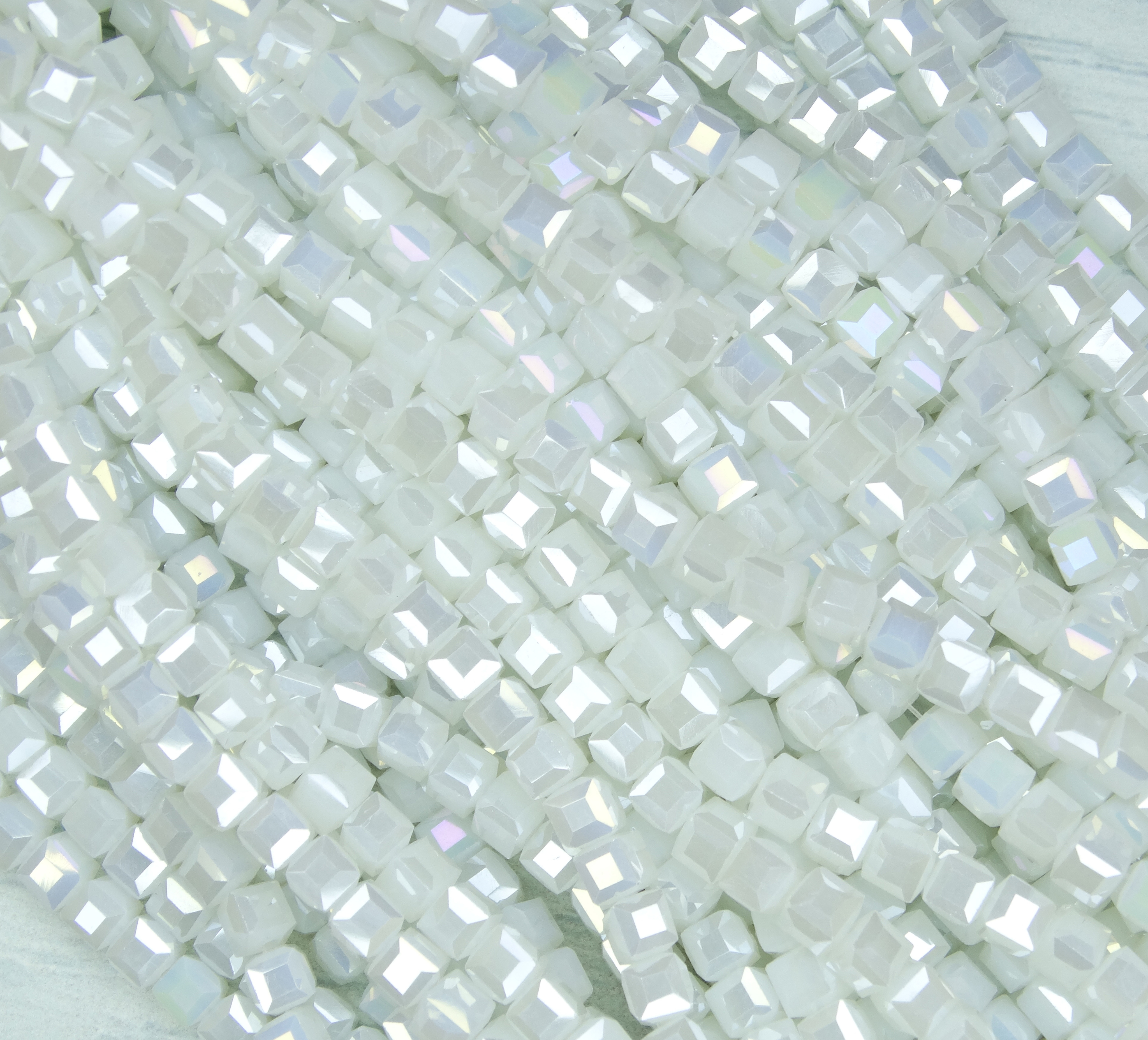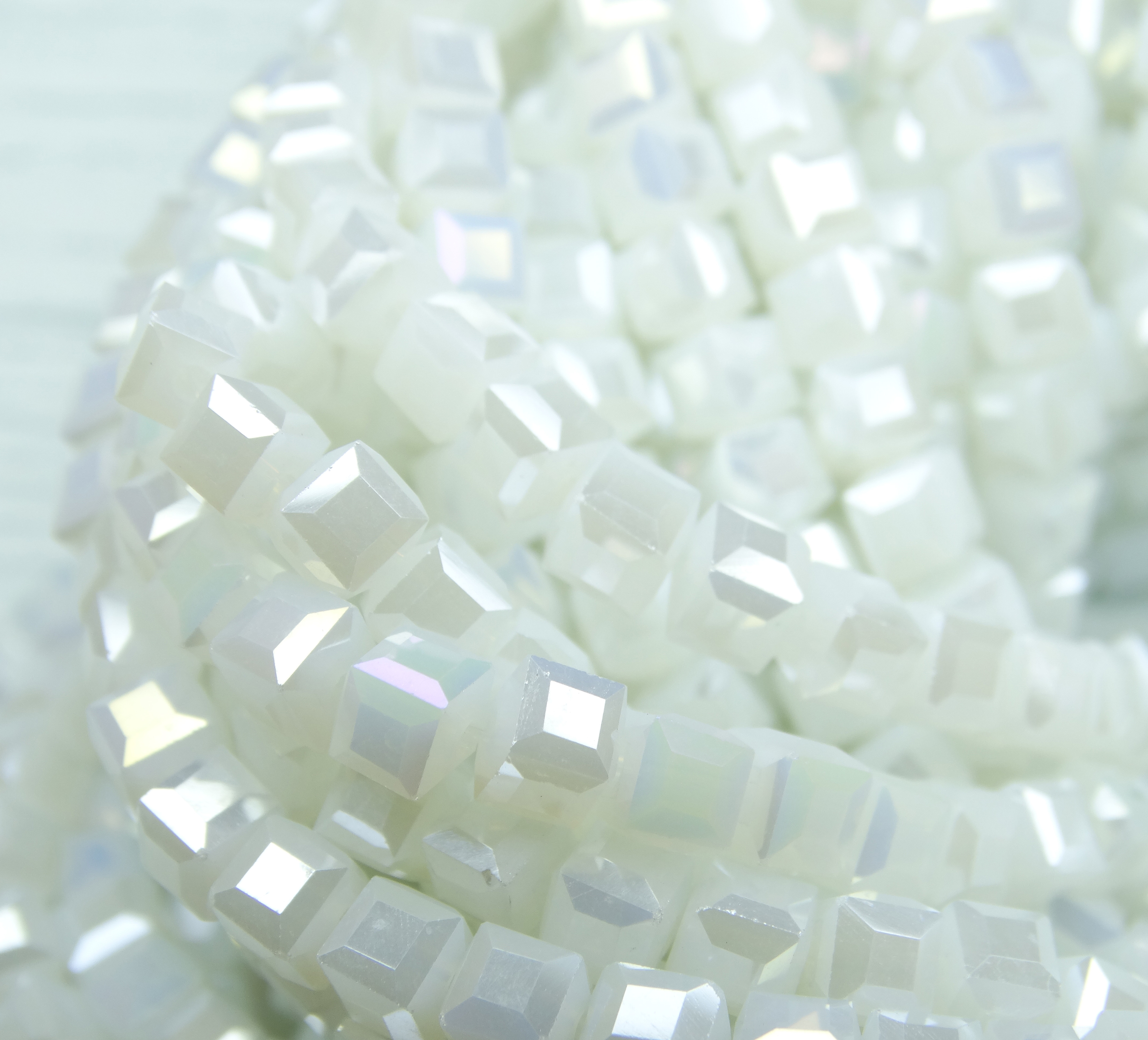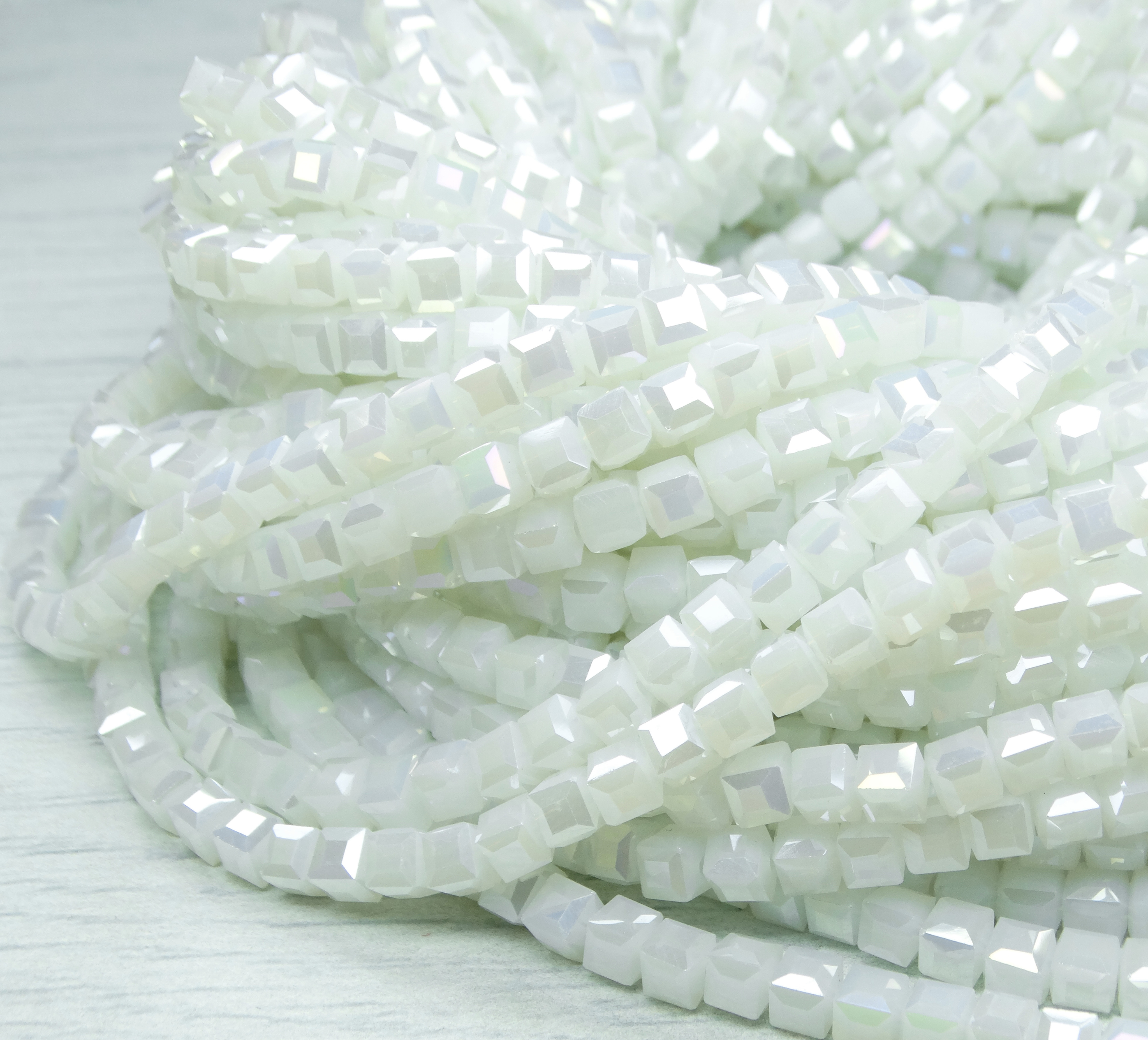 БВН009ДС3 Хрустальные бусины квадратные, цвет: белый AB непрозрачный, 3 мм, кол-во: 63-65 шт.