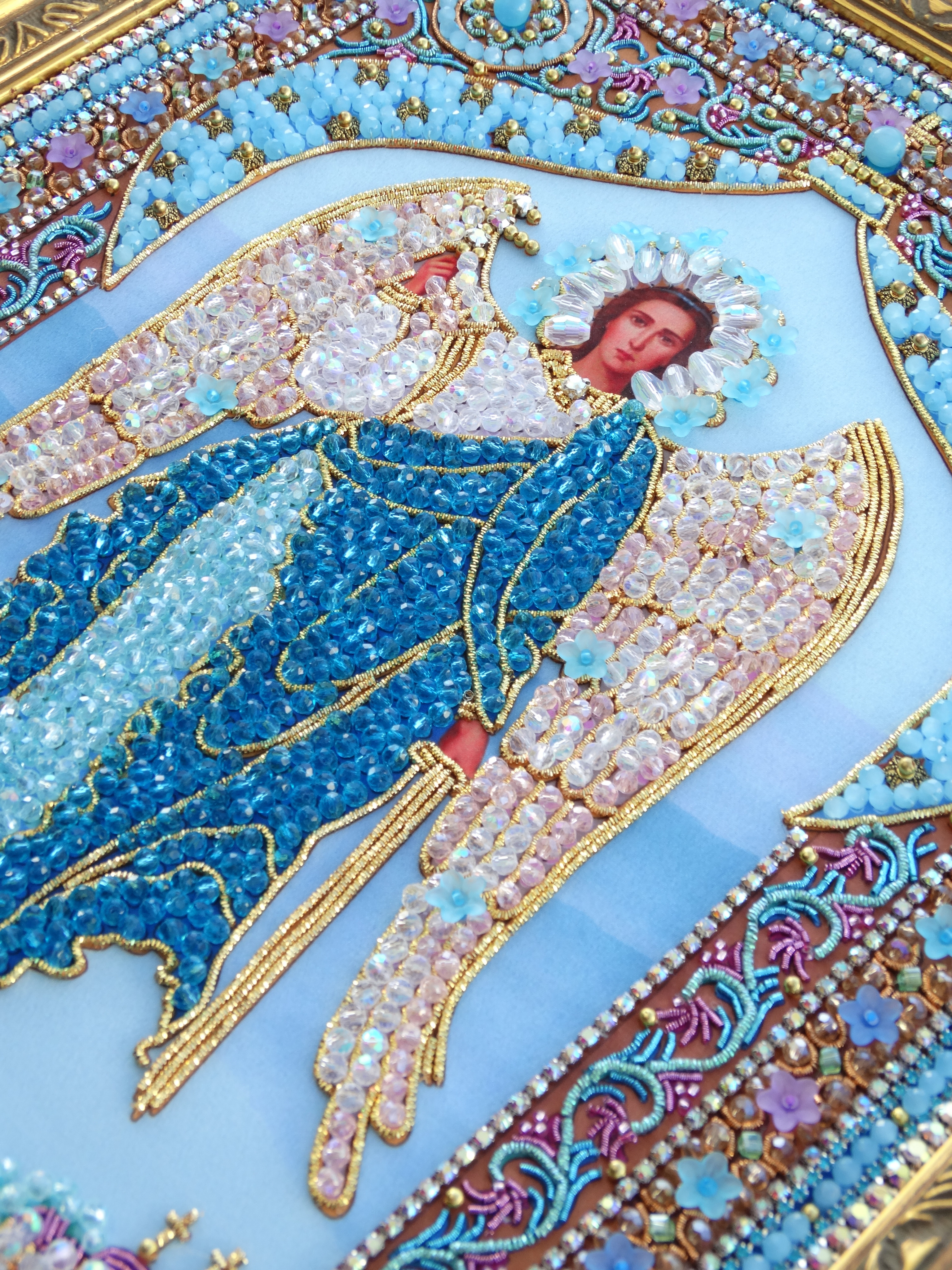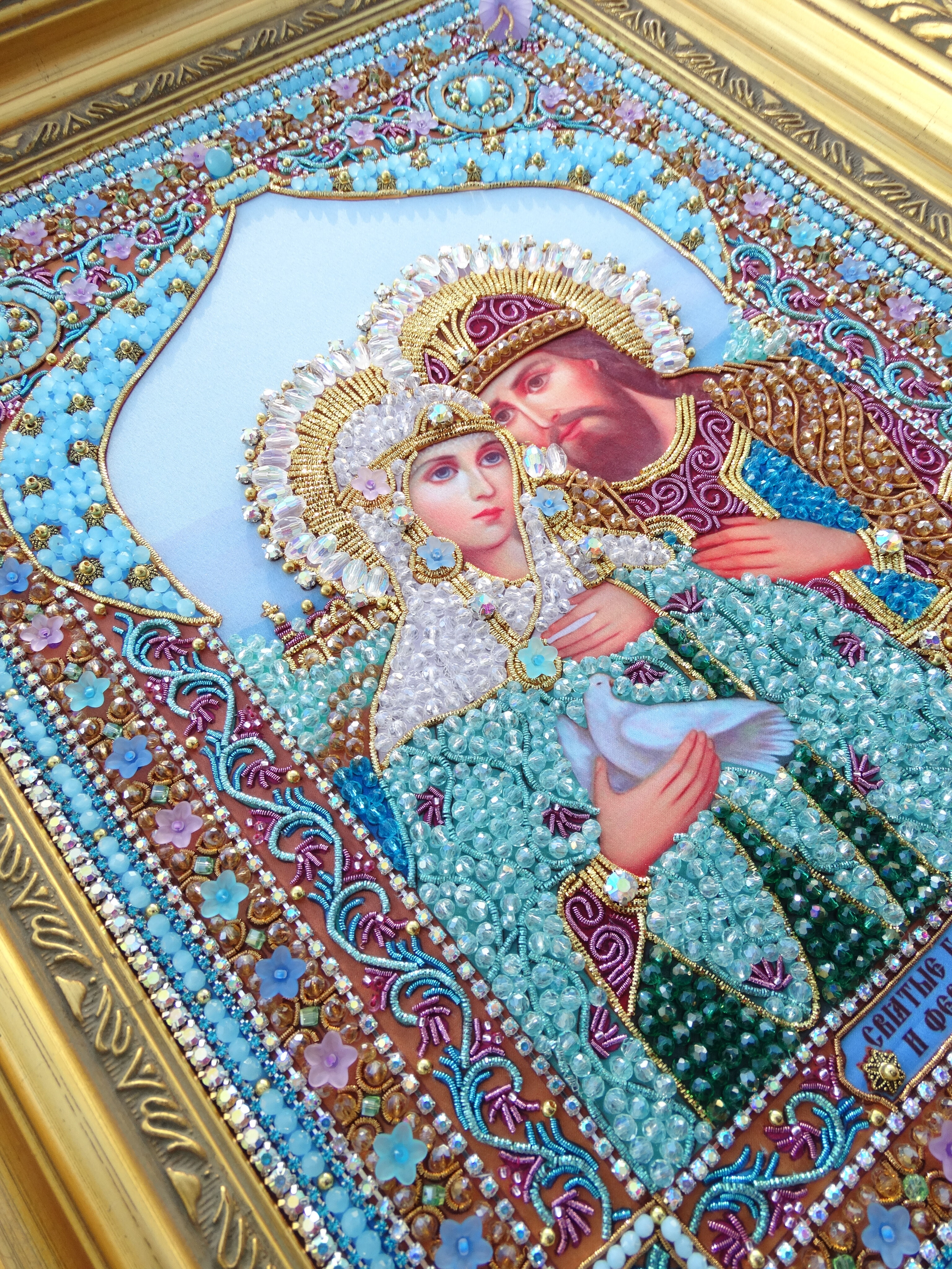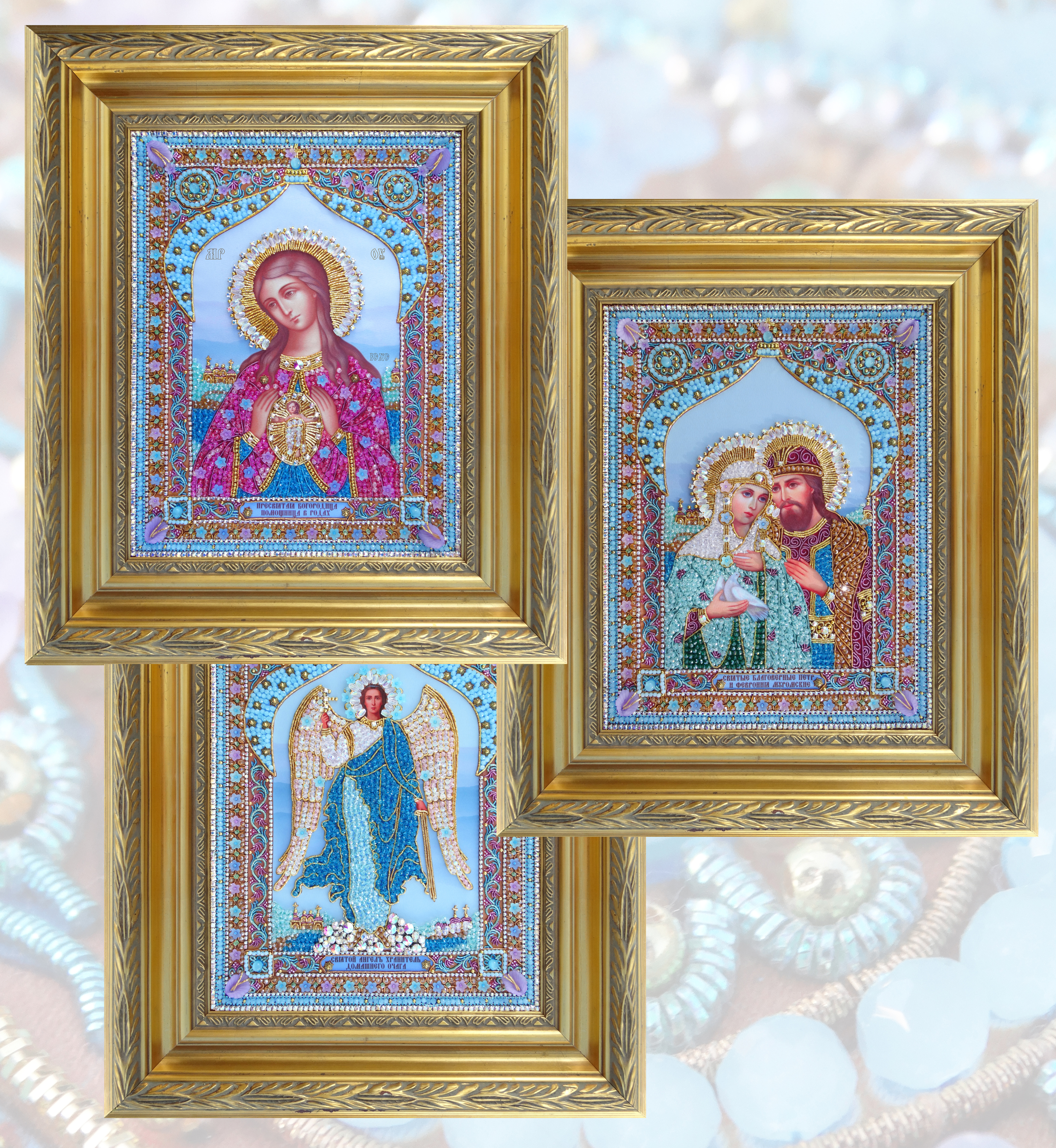 Семейная серия - уникальный проект нашей студии вышивки. Идея серии - собрать в единой концепции домашнего иконостаса иконы, символизирующие ценность семейного благополучия. Триптих включает в себя 3 иконы: Ангед Хранитель домашнего очага, Богородица Помощница в родах и Святые Петр и Феврония Муромские. Размер каждой готовой работы: 27,8 х 36 см.