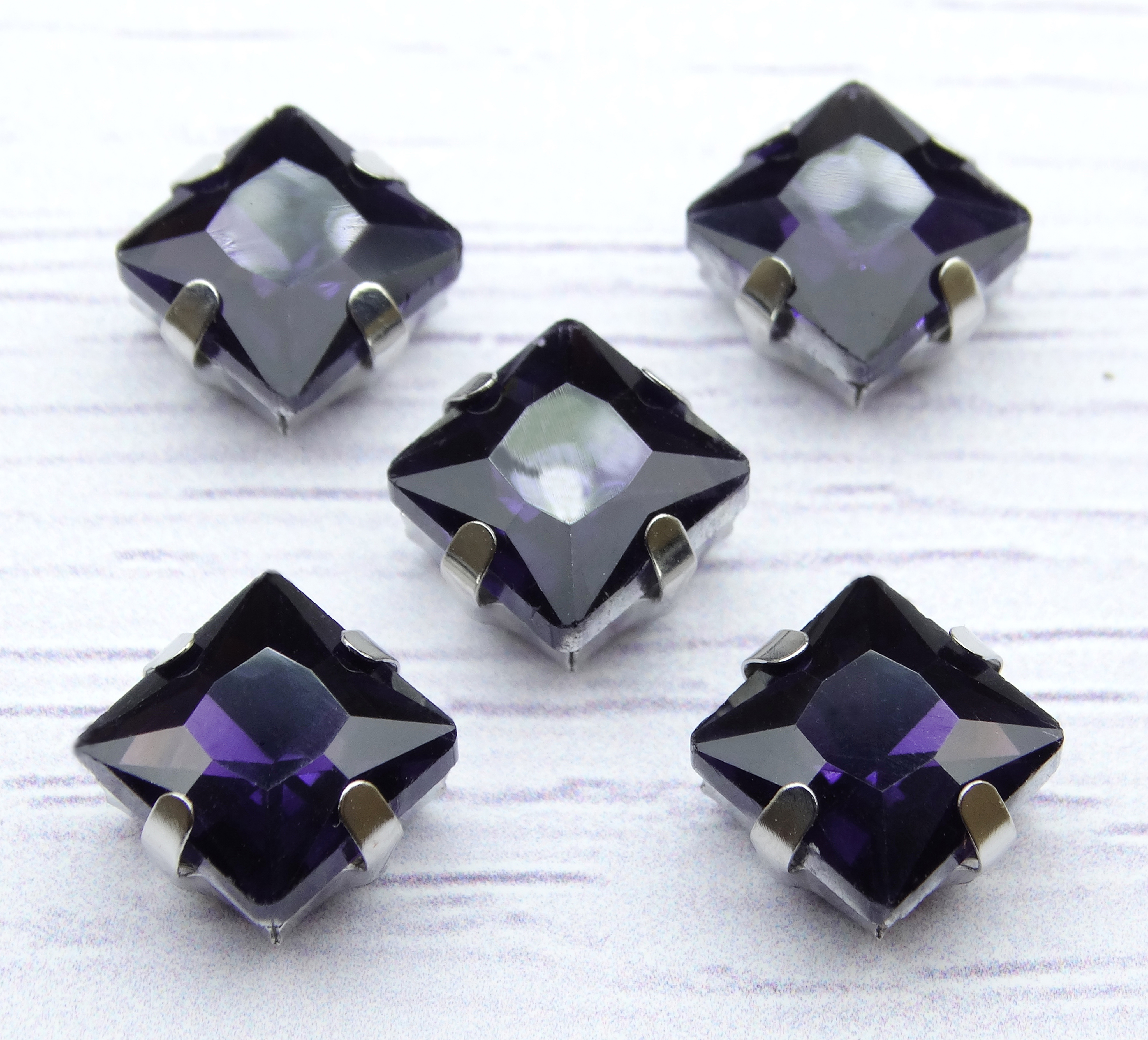 КЦ017НН8 Хрустальные стразы квадратной формы в цапах, цвет: фиолетовый, размер: 8 мм, 7 шт/упак.