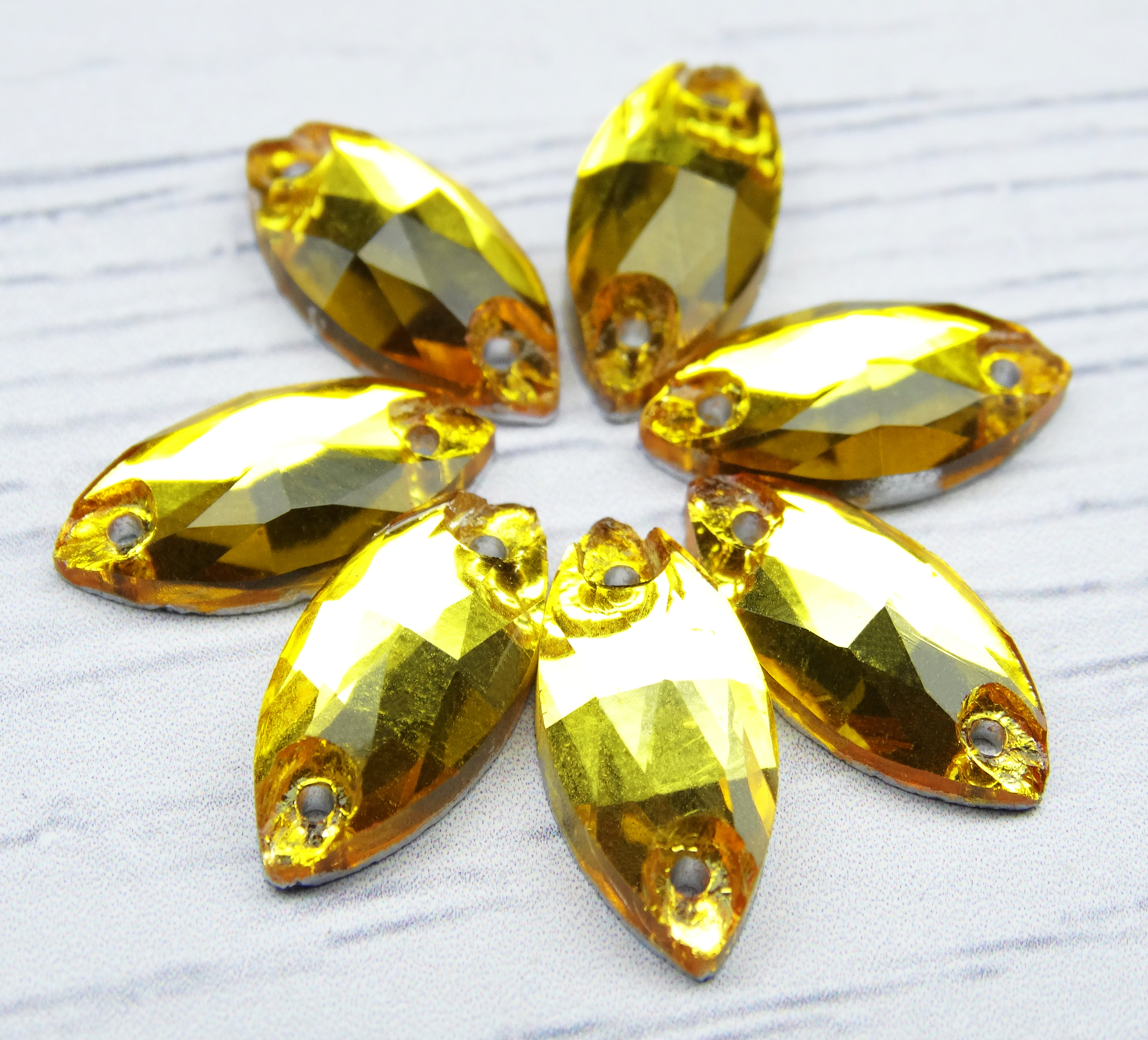 МИ002НН612 Хрустальные стразы пришивные "лодочка", цвет: желтый, размер: 6х12 мм, 15 шт.